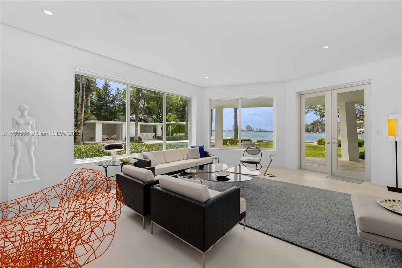 Step into this breathtaking waterfront sanctuary on prestigious North Bay Road. This 4-bedroom, 4.5-bath mid-century estate sits on an oversized 27,013 SF lot w/ 113’ of pristine bay frontage. A grand koi pond entrance leads to sunlit interiors, featuring L-shaped living room, bar, private office, media room, & formal dining area. The fully renovated Bulthaup kitchen combines style & function w/ high-end appliances & a second prep kitchen. The primary suite mesmerizes w/ sweeping water views, dual walk-in closets & a luxurious spa bath. Outdoors complete w/ lush landscaping designed by Raymond Jungles, heated pool, dining & seating pavilions, private dock & a Kalamazoo built-in summer kitchen w/ pizza oven. This home blends privacy & serenity, moments from Miami Beach’s vibrant lifestyle.