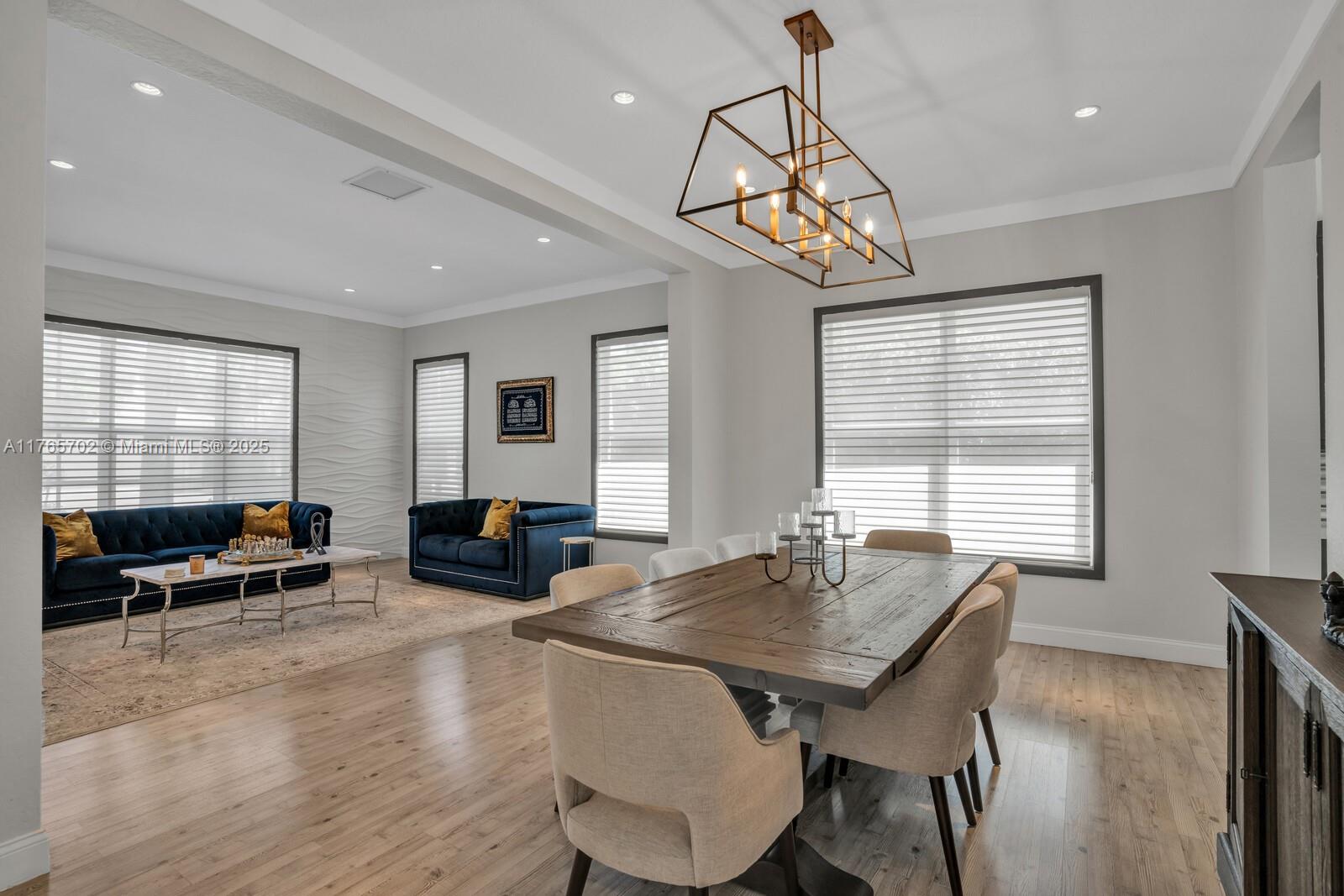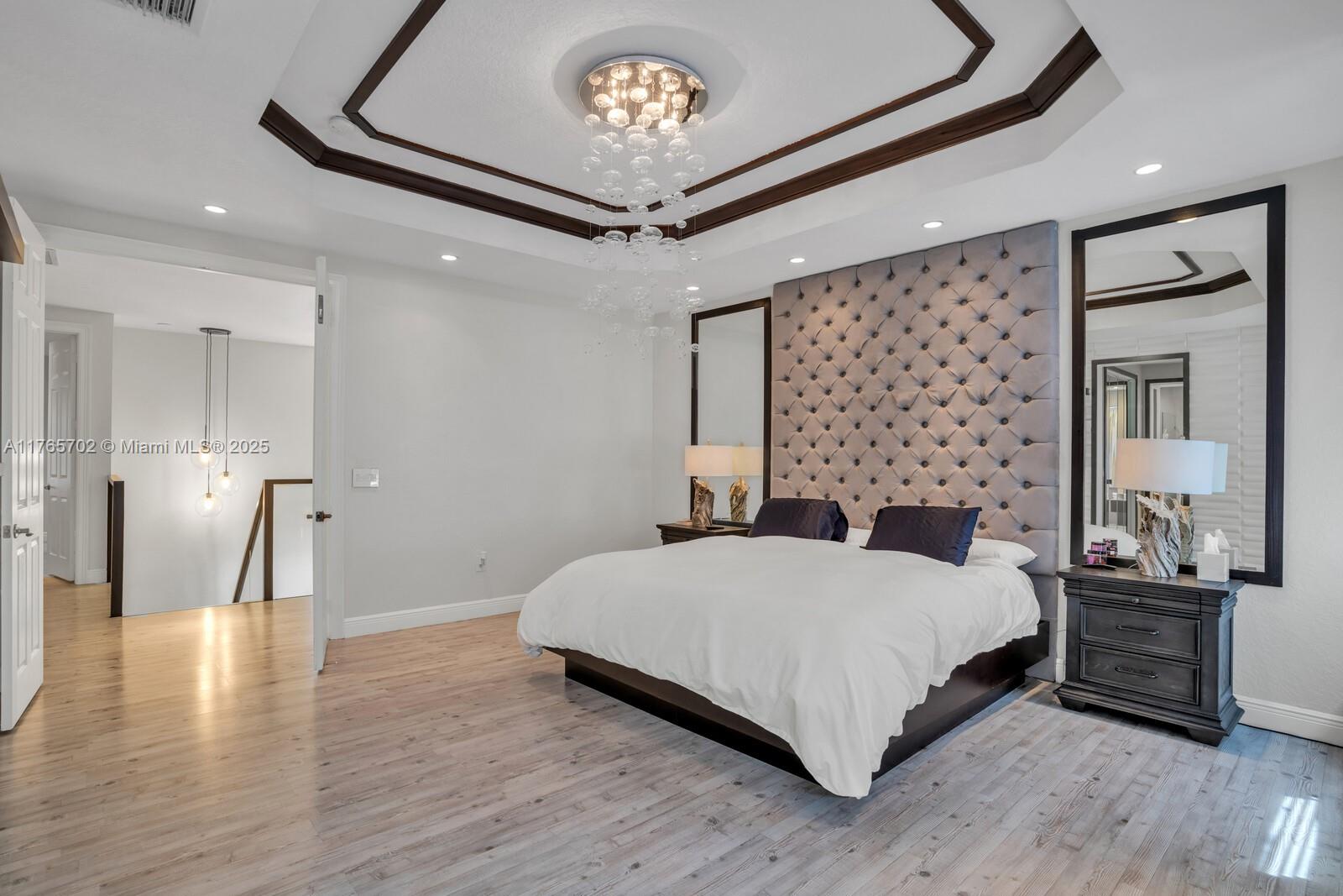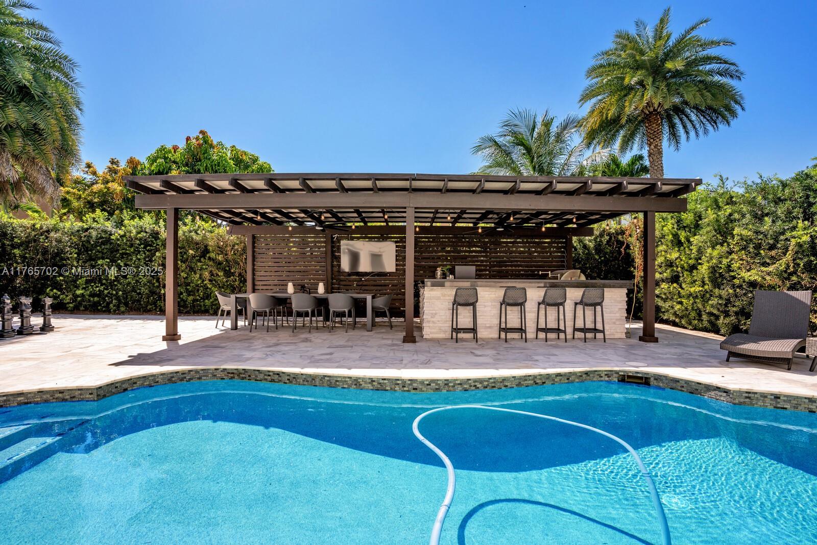 Welcome to this impressive Luxurious Modern Pool Home that has been exquisitely finished with a contemporary flare. This home boast 5bed/3baths/ 2 Car Garage with large open floor plan, an expansive flow through living and dining room space, upgraded kitchen with a large island Kitchen. Freshly painted inside and brand new custom flooring upgraded bathrooms. The outdoor oasis is designed for ultimate convenience and relaxation with its sparkling pool and pergola with luxurious outdoor BBQ island featuring a gorgeous countertop, recess lighting & fans, perfect for entertaining. Community features include an Olympic size pool, Clubhouse, Gym, three Tot-lot areas, and 24hr guarded visitor entrance.
