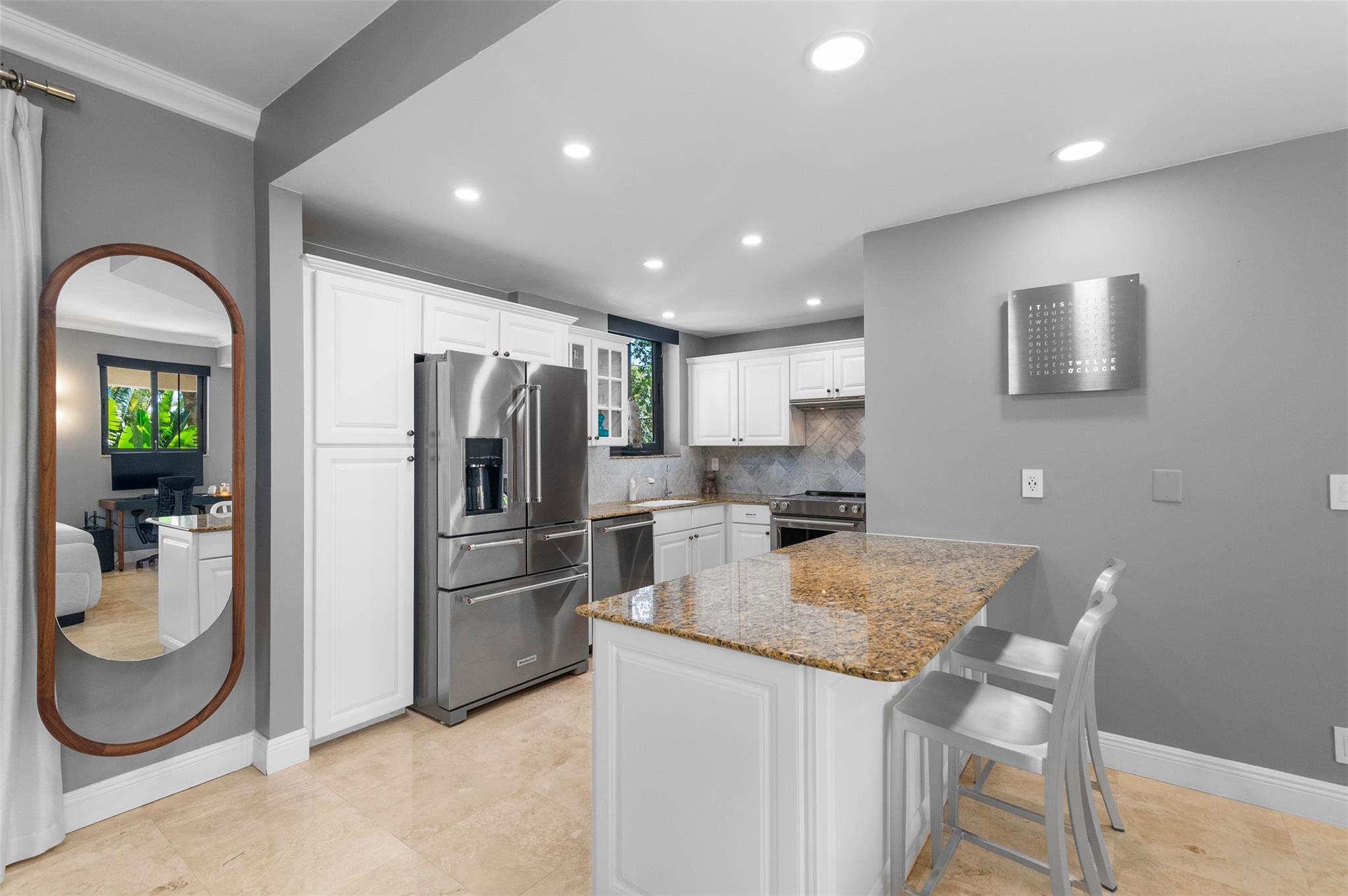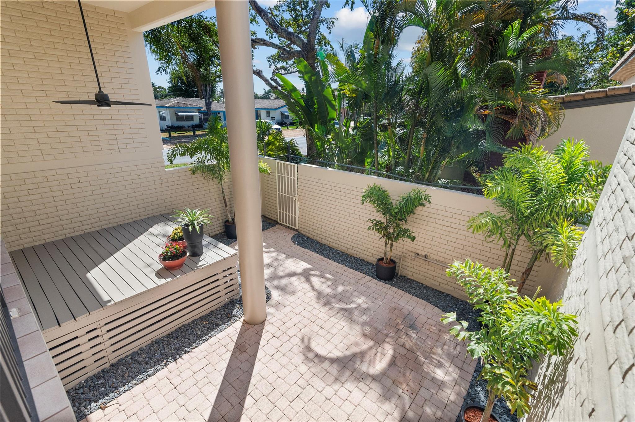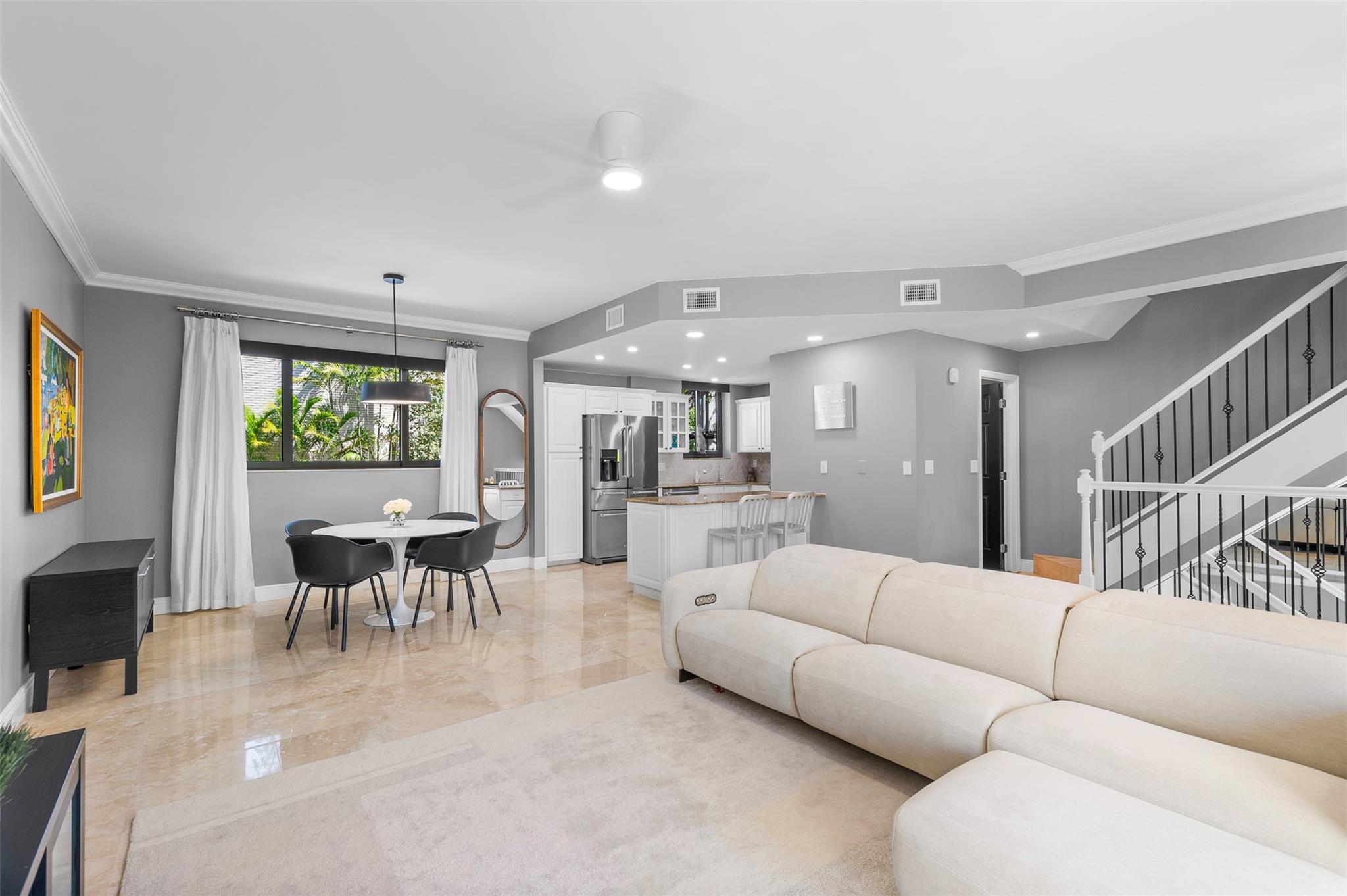 Welcome home to this amazing townhouse in the heart of Fort Lauderdale, Victoria Park Place. This stunning end unit features a fantastic open concept living area, gorgeous freshly polished travertine marble floors throughout, all impact windows and doors, motorized sunshades, great private outdoor space and tons of upgrades throughout the home. The garage features a level 2 electric charger, swisstrax flooring and storage cabinets. There is a whole house water filtration system and an r/o water dispenser, gas tankless H2O heater and all appliances and a/c system have been updated. Walk to Holiday Park, The Parker theater and Publix, a five minute drive to Wilton Manors, the beach, TJ's, Whole Foods, etc. Everything you could possibly want or need is within a few minutes' walk or drive!