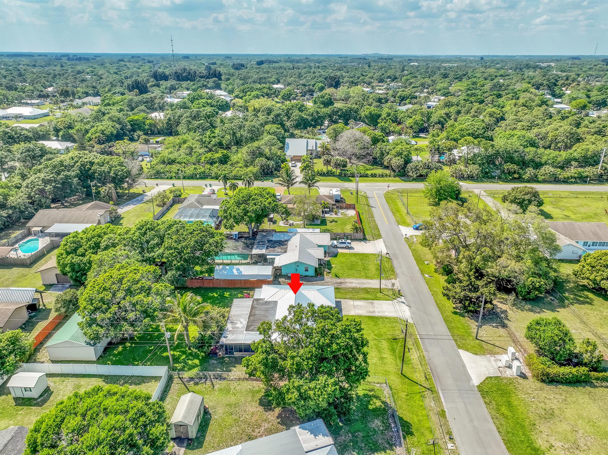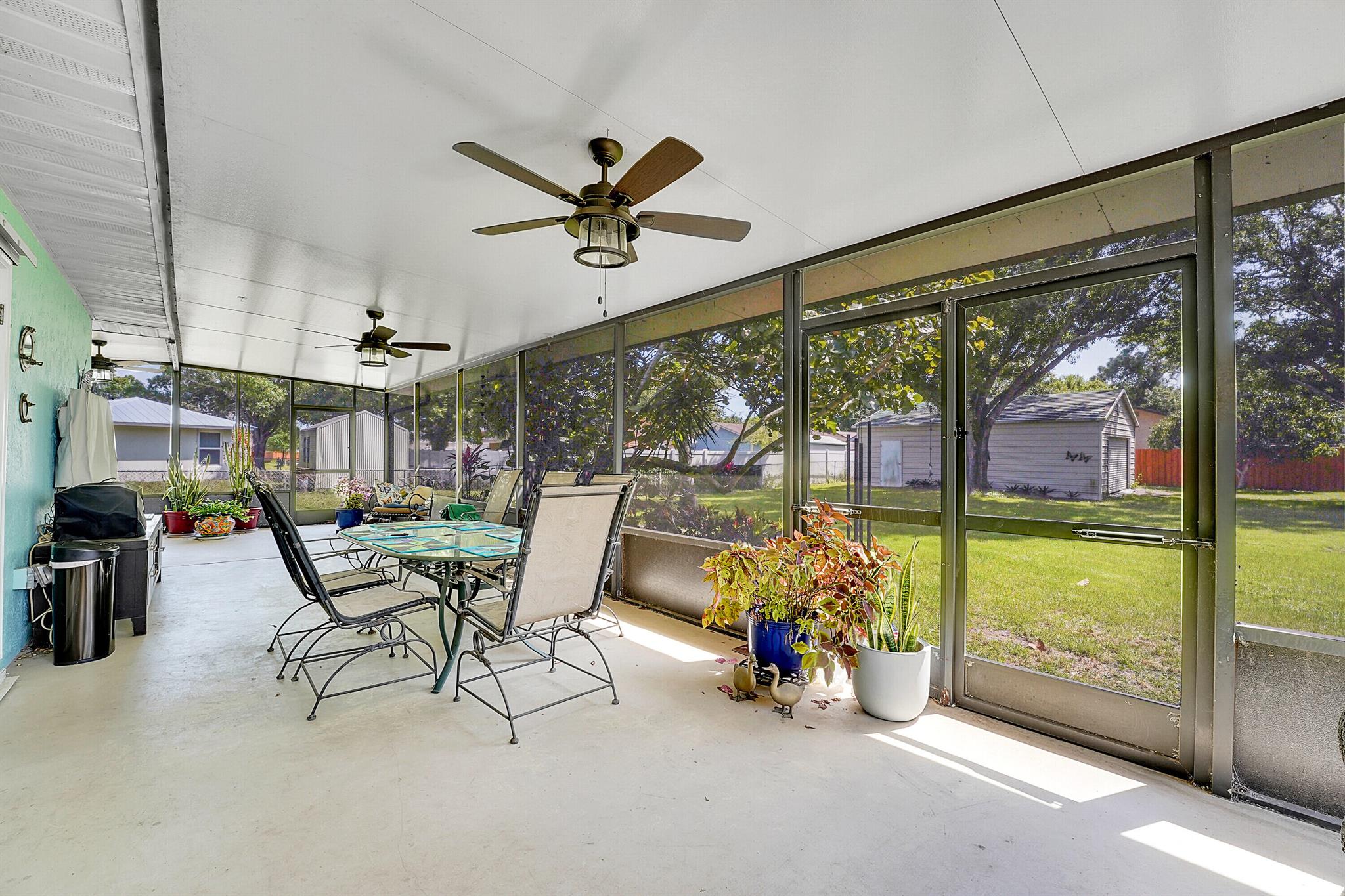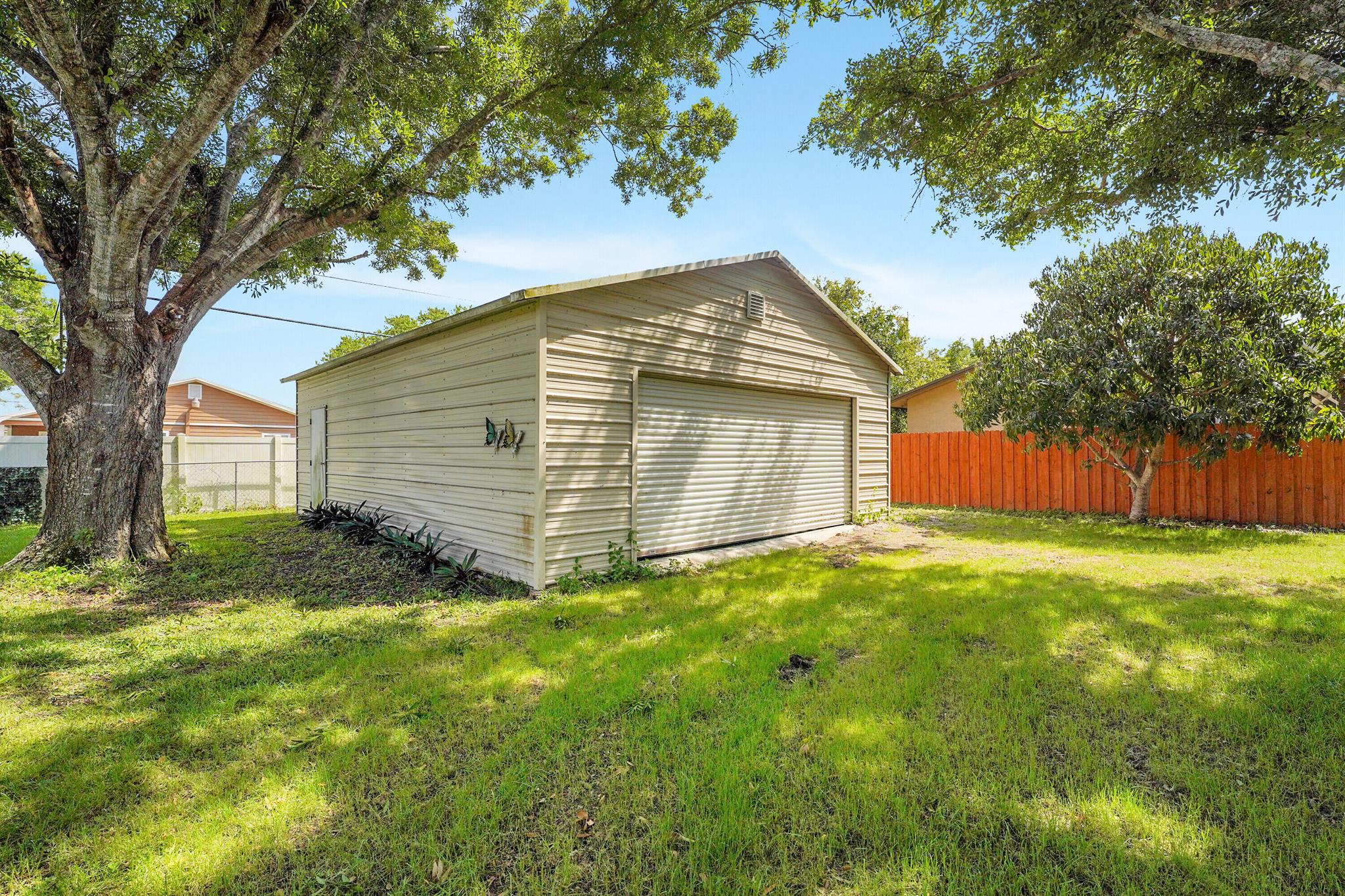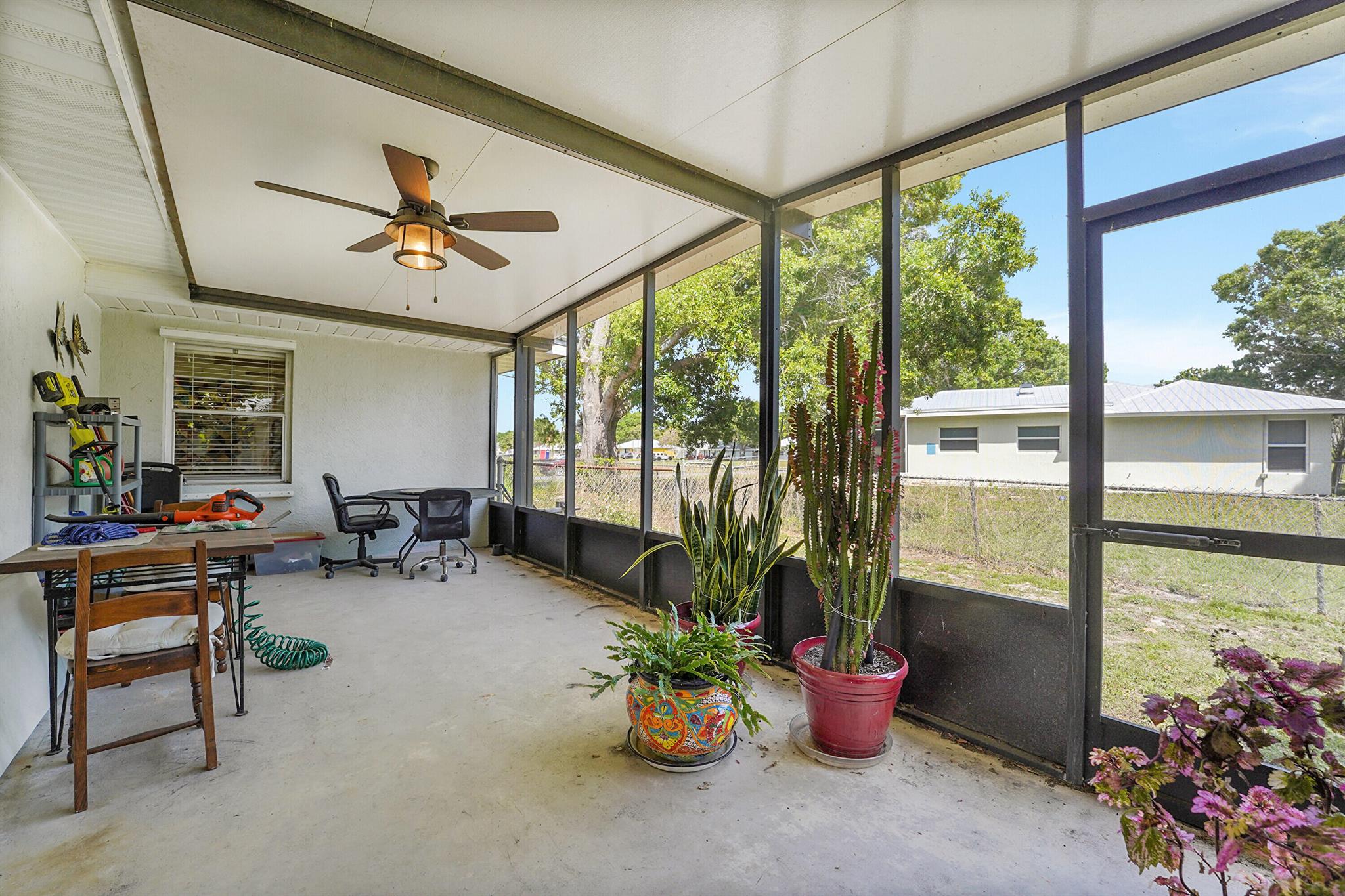 Charming 3-bedroom, 2-bath home on a private 0.39-acre lot with total backyard privacy. Enjoy the wrap-around screened patio, perfect for outdoor living, plus a spacious yard with room for a pool. A 20x30 detached metal workshop offers excellent storage or workspace. Recent updates include a new metal roof, AC, well pump, sprinkler system, and newer appliances. This move-in ready home is ideally located just 6 blocks from the Intercoastal, 10 minutes to downtown Fort Pierce, and 20 minutes to Jensen Beach along scenic Indian River Drive. Enjoy the highly active golf cart neighborhood with fun holiday events!