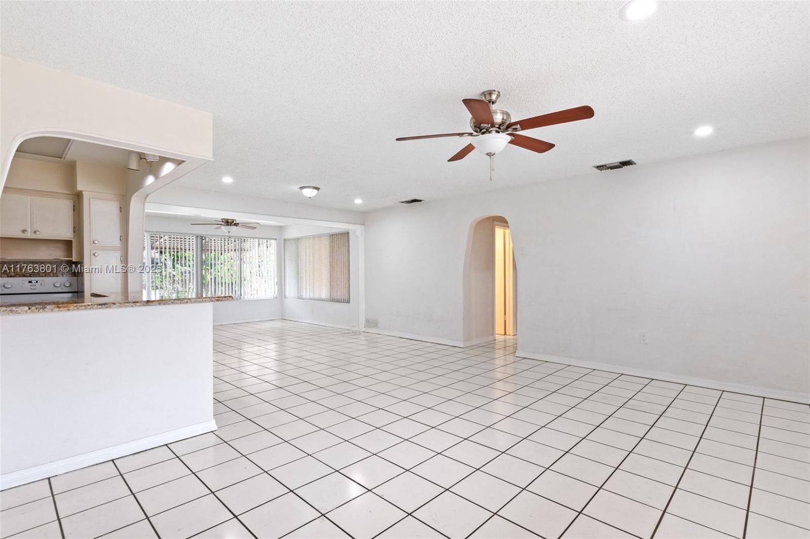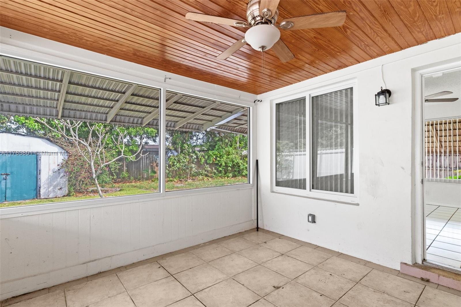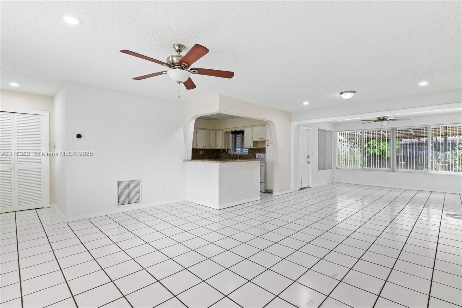 Nestled in a peaceful Pembroke Pines neighborhood, this charming 2-bedroom, 1-bathroom home offers comfort and tasteful upgrades. The open-concept layout enhances the airy ambiance, complemented by all-impact windows with stylish treatments. A newer roof, fresh paint, and matching ceiling fans elevate its appeal. The updated kitchen boasts elegant granite countertops, while ceramic tile flooring exude timeless charm. Enjoy a bright sunroom, a covered back porch ideal for entertaining, and a fully fenced backyard for privacy. A spacious utility room features a high-capacity washer/dryer, and the newer central HVAC system ensures year-round comfort. With hurricane panels, a stamped concrete driveway for multiple vehicles, and wonderful neighbors, this home is a true gem!