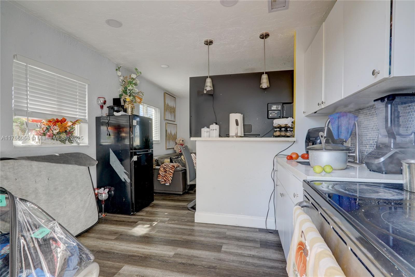 This cozy 2-bedroom, 1-bathroom home offers a perfect blend of comfort and modern updates. Nestled in a quiet neighborhood, this home features a private backyard—ideal for relaxation and outdoor gatherings. Inside, everything has been thoughtfully updated, including a newly renovated kitchen and bathroom. The home boasts laminate flooring throughout, creating a sleek and low-maintenance interior. Additionally, the home is equipped with impact windows, ensuring both safety and energy efficiency. The roof is just 3 years old, and the electrical and plumbing systems have been completely updated, offering peace of mind for years to come. With fresh paint both inside and out, this home is move-in ready.