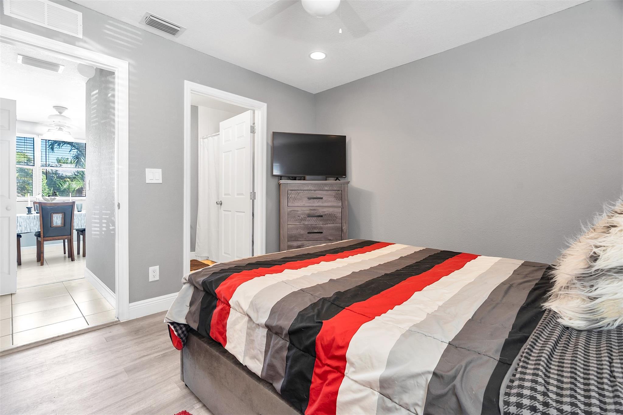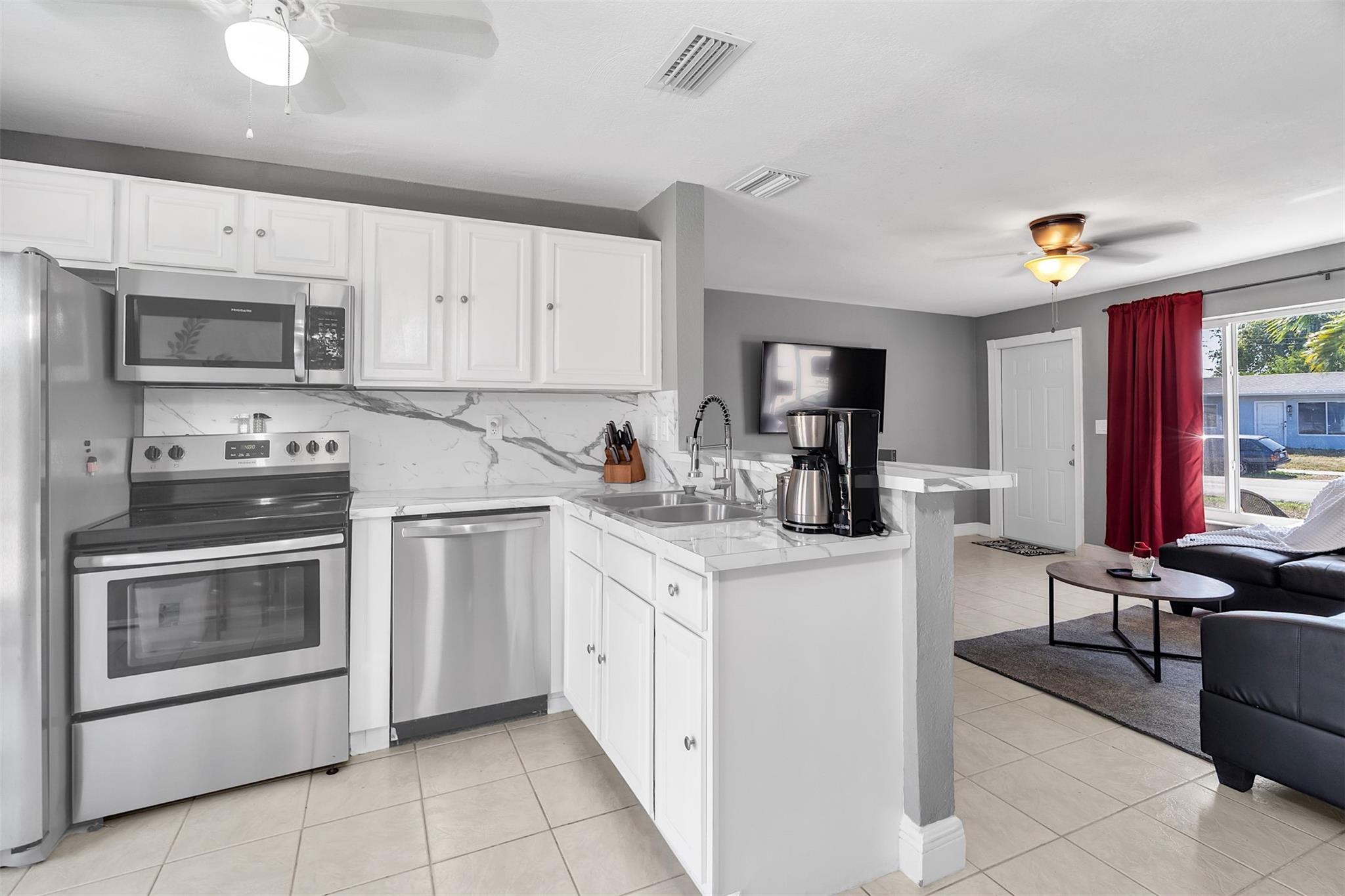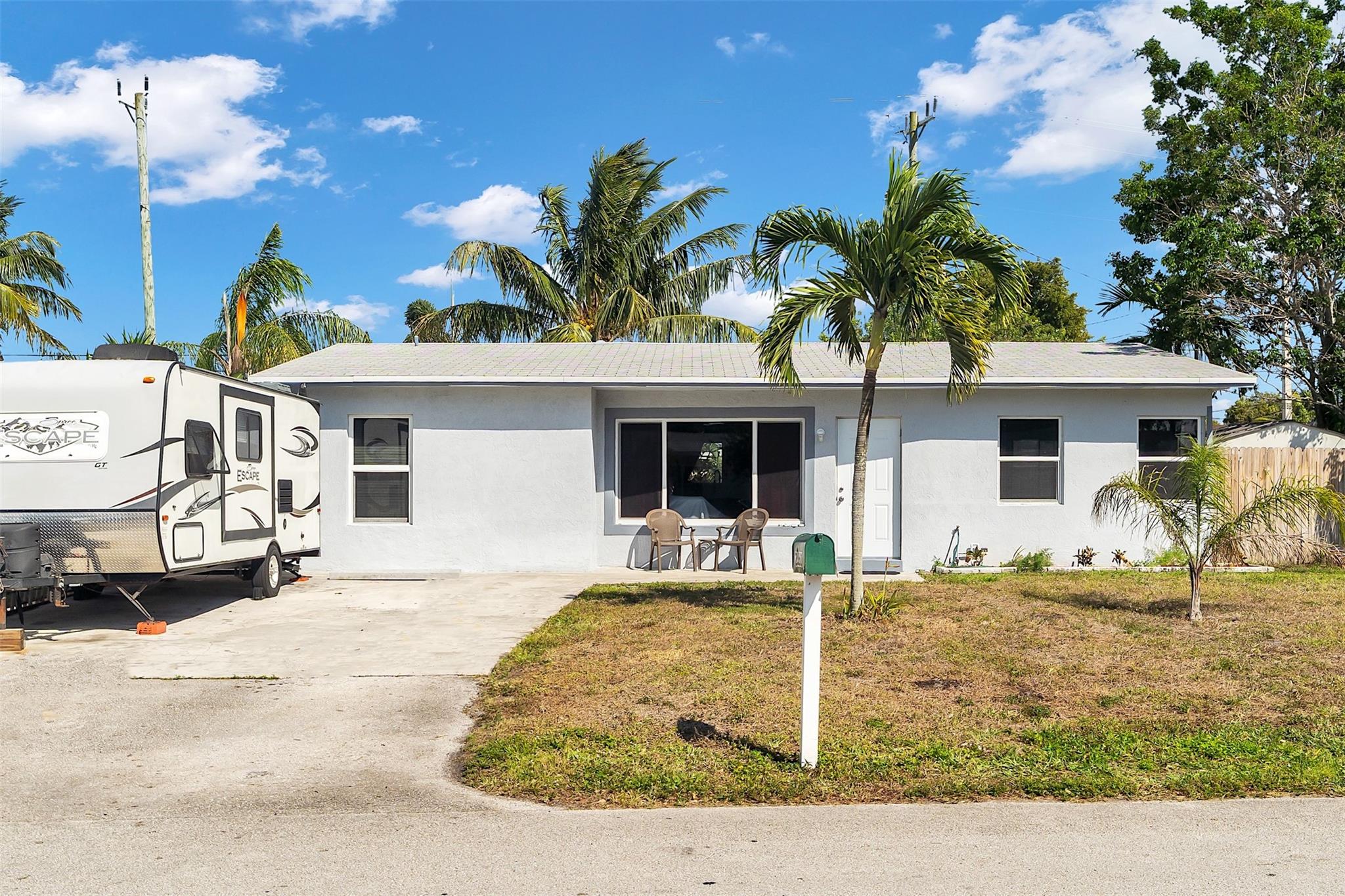MOVE-IN READY 3-bedroom, 2-bath home with key upgrades! Freshly painted inside and out, this home features all brand new waterproof laminate flooring flows seamlessly throughout the large bedrooms and living areas. Updated kitchen boasts refaced cabinetry, stainless steel appliances, and new microwave. Spacious master bedroom with ensuite bath. Impact windows on the front and sides, a 2018 roof and a 2021 A/C system, ensure comfort and peace of mind. Electrical and breakers were also updated in 2024. Step outside to a private oasis with an in-ground pool and new pump, complemented by a custom cabana/entertainment area. A 4-zone solar-powered sprinkler system maintains the lush landscaping. Conveniently located, this property is near a public boat ramp.