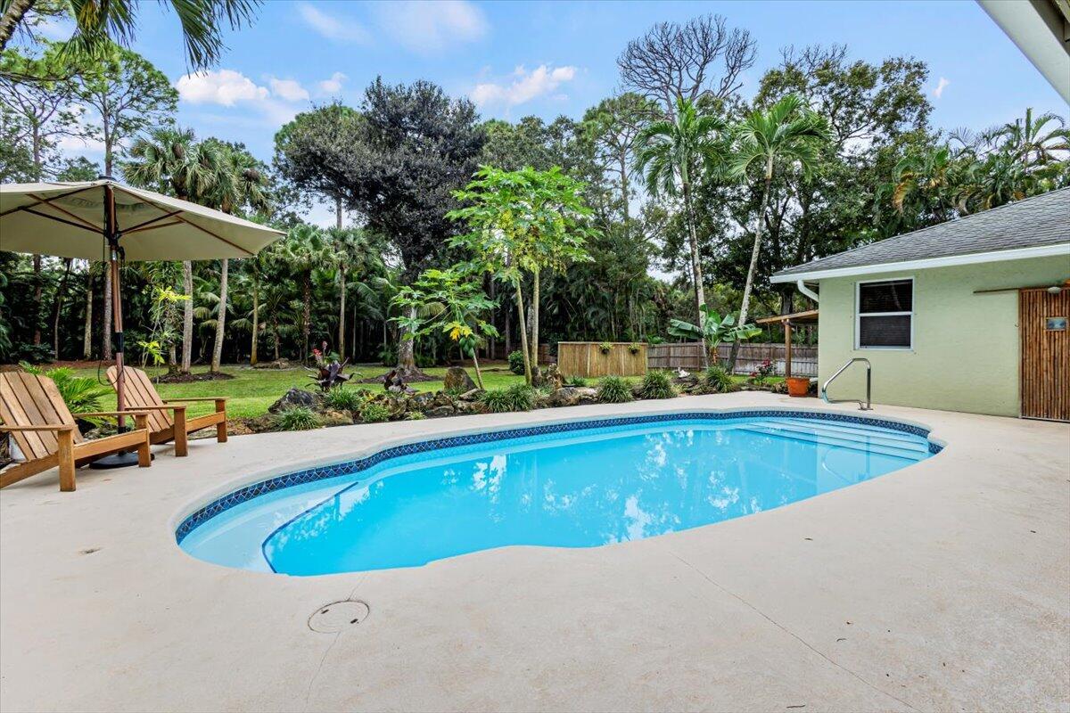 This 4-bedroom 2.5-bath home with a pool and a large patio is the perfect sanctuary. Very private, well-maintained home at the end of a cul-de-sac. Fenced, gated with mature trees, and no HOA. The property has a new HVAC system, a large 2.5 car garage, and is situated on one acre. All amenities, including Palm Beach International Airport, I-95 and the Florida Turnpike, and Okeeheelee are within close proximity.