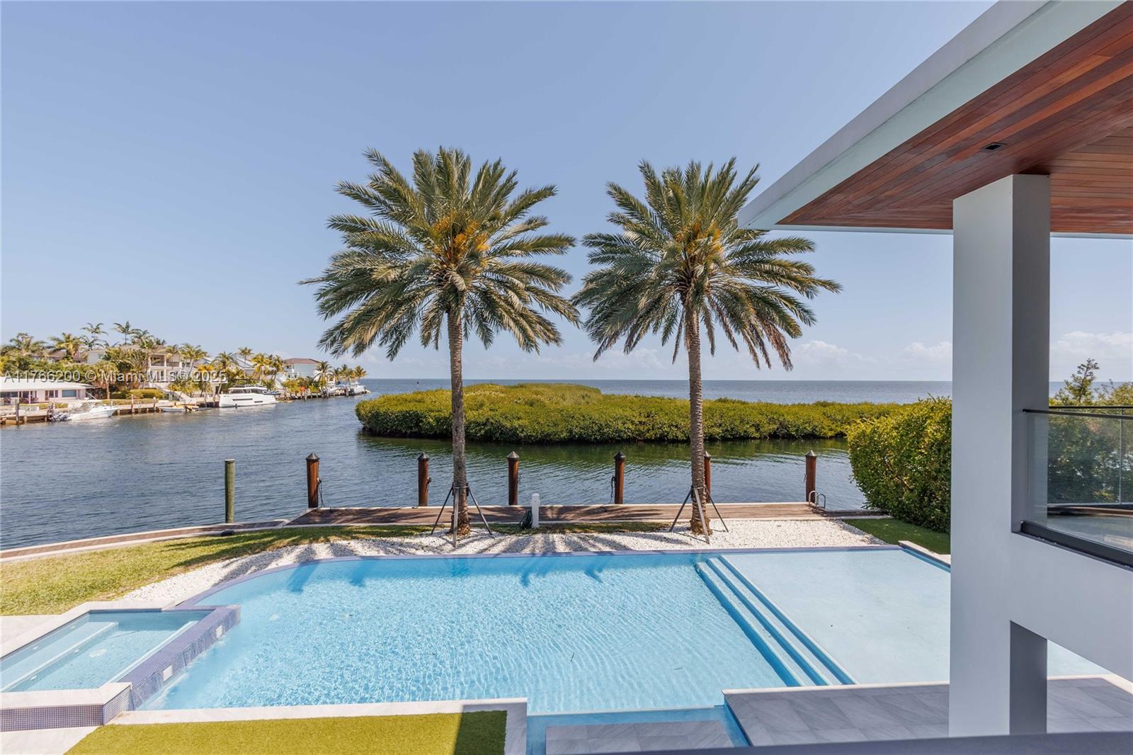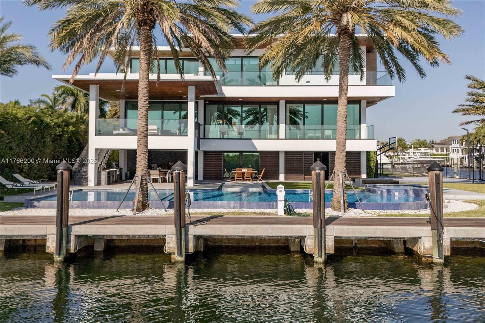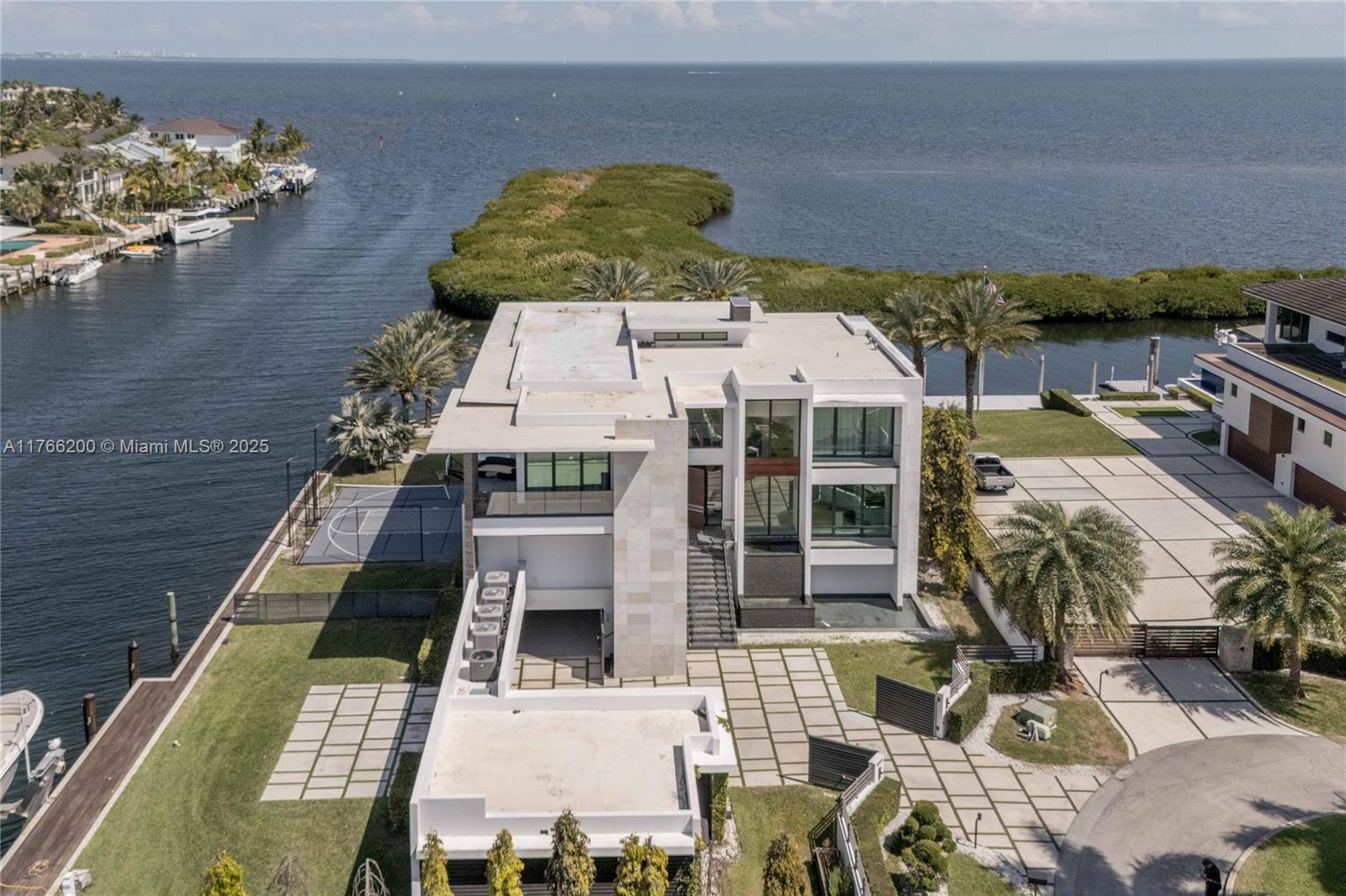 This is the most prestigious estate in all of Gables by the Sea. Built in 2018 and meticulously designed by Calil Architects, this extraordinary residence is a boater's paradise, featuring over 300 feet of seawall, two docks, and a boat lift. With ample space to accommodate both a 100-foot yacht and a 40-foot tender, this property offers the ultimate in luxury waterfront living. Nestled on a coveted corner lot, the home boasts breathtaking bay views from every room. Comprising seven bedrooms—five of which are on the second floor, each with its own private bathroom, walk-in closet, and covered terrace—this home provides unparalleled comfort and privacy. The pool, backyard, and BBQ area create an oasis-like retreat, perfect for both relaxation and sophisticated outdoor entertaining.