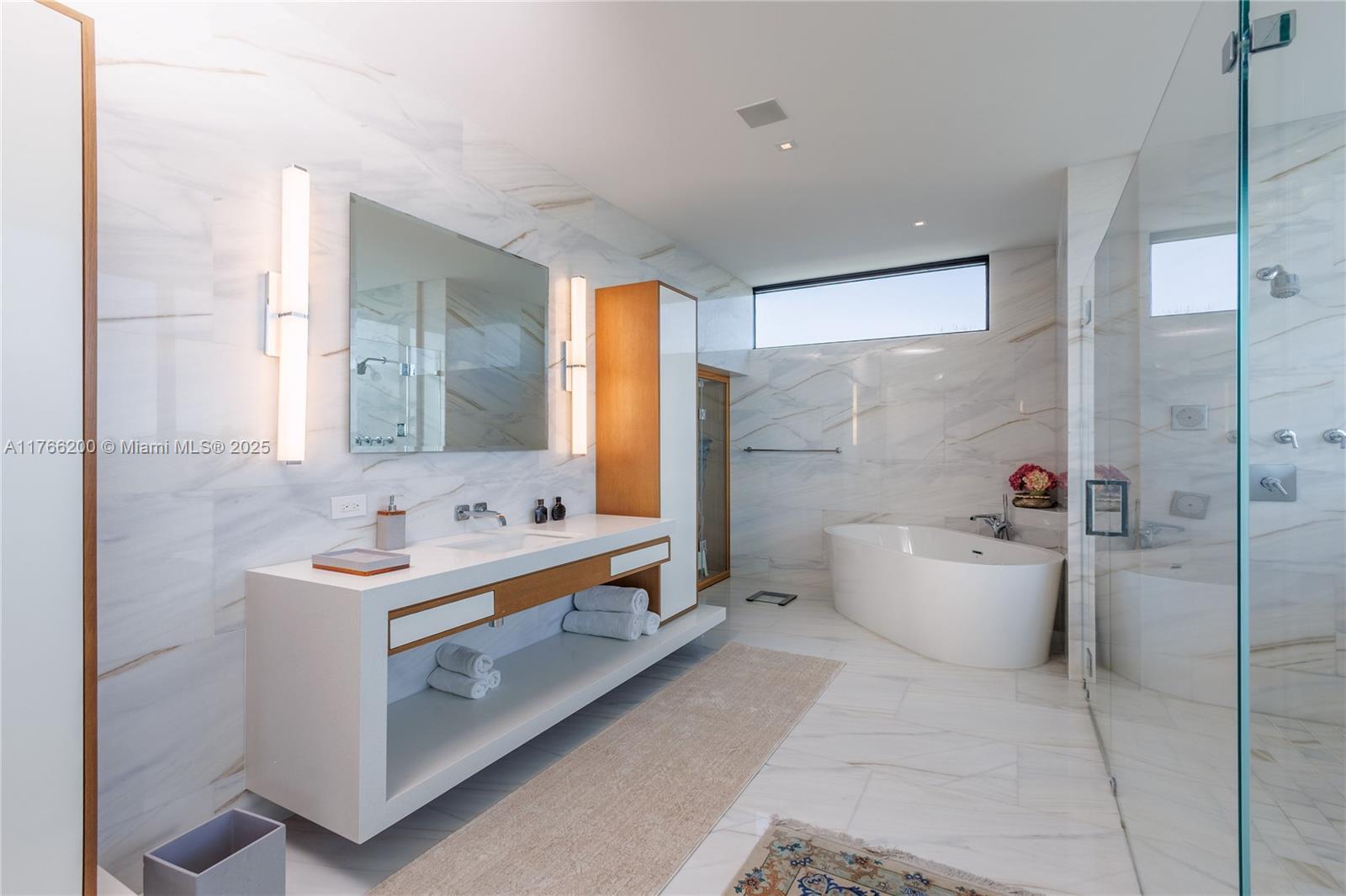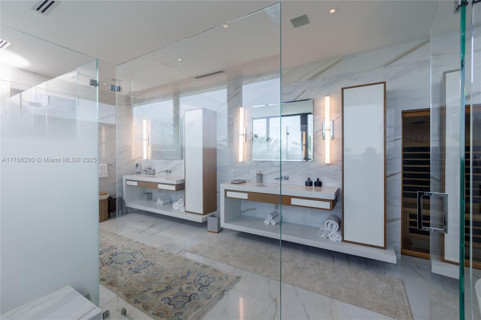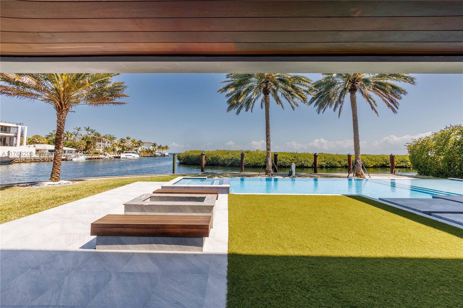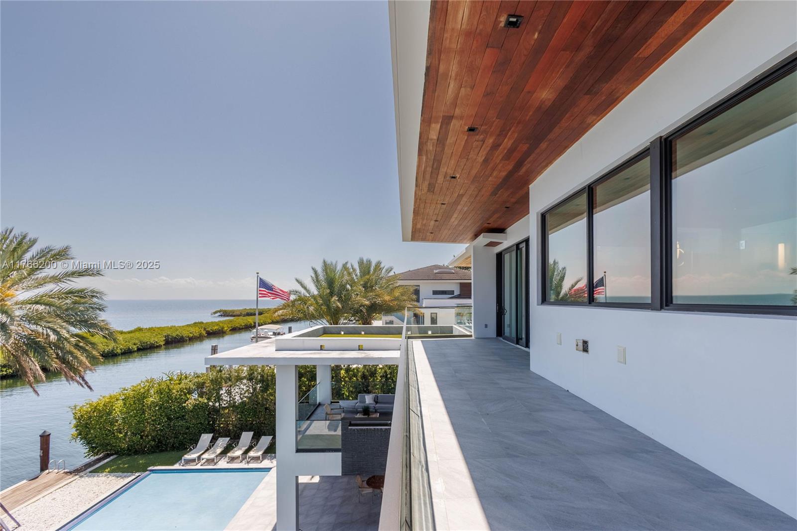 This is the most prestigious estate in all of Gables by the Sea. Built in 2018 and meticulously designed by Calil Architects, this extraordinary residence is a boater's paradise, featuring over 300 feet of seawall, two docks, and a boat lift. With ample space to accommodate both a 100-foot yacht and a 40-foot tender, this property offers the ultimate in luxury waterfront living. Nestled on a coveted corner lot, the home boasts breathtaking bay views from every room. Comprising seven bedrooms—five of which are on the second floor, each with its own private bathroom, walk-in closet, and covered terrace—this home provides unparalleled comfort and privacy. The pool, backyard, and BBQ area create an oasis-like retreat, perfect for both relaxation and sophisticated outdoor entertaining.