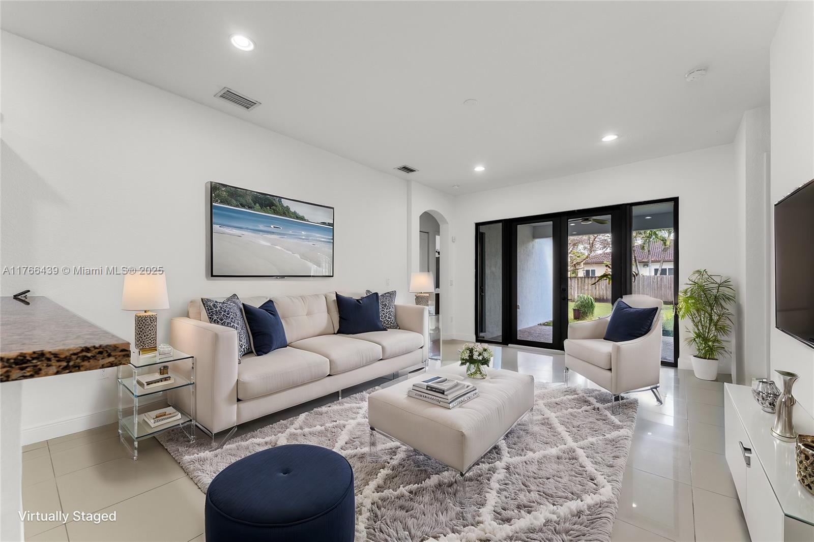 This beautifully updated 4-bedroom, 4-bathroom modern one-story home, built in 2015, blends tranquility with convenience. Perfect for families, it boasts a spacious floor plan with soaring ceilings & elegant tile flooring throughout. Set on a generous 8,097 sq. ft. lot, there’s ample space to add a custom pool & enjoy the sunny South Florida weather. Abundant natural light fills the home, creating a warm & welcoming atmosphere ideal for both entertaining & relaxing. Ideally located near top-rated schools such as Academir Preschool & Pinecrest Academy, along with premier shopping & dining options, this home offers an exceptional lifestyle. Freshly painted & move-in ready, it's the perfect opportunity for families seeking to join a vibrant community. By appointment only.