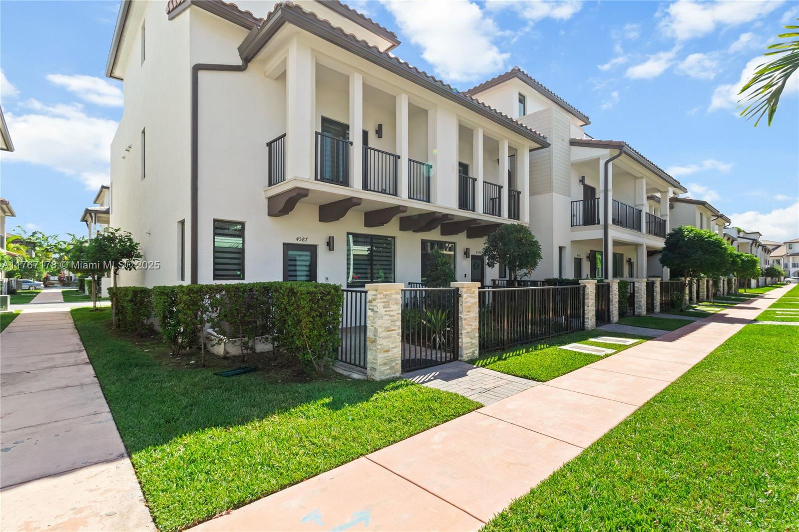 Beautiful 3 beds, 2.5 baths townhouse in the desired City of Doral. Modern kitchen: SS appliances, upscale cabinets, white quartz, pantry. Impact windows, custom blinds, blackouts in the bedrooms. Luxury vinyl flooring. Master bath with shower/glassdoor; second bath with tub. Laundry in the 2nd floor. Balcony in the master bed. Lovely entrance porch. Security camera plus Ring. Automatic two-car garage. Plenty of street parking. New clubhouse: 2-story fitness ctr, kids play area, pool, sun deck, basketball crt, running track, dog park, water splash playground, game room, pool table room, party room and more. Walking distance to bilingual schools (Spanish/Portuguese/French), parks, restaurants, bars, Publix, shops, Doral Art Ctr, UHealth and more. Great Price!