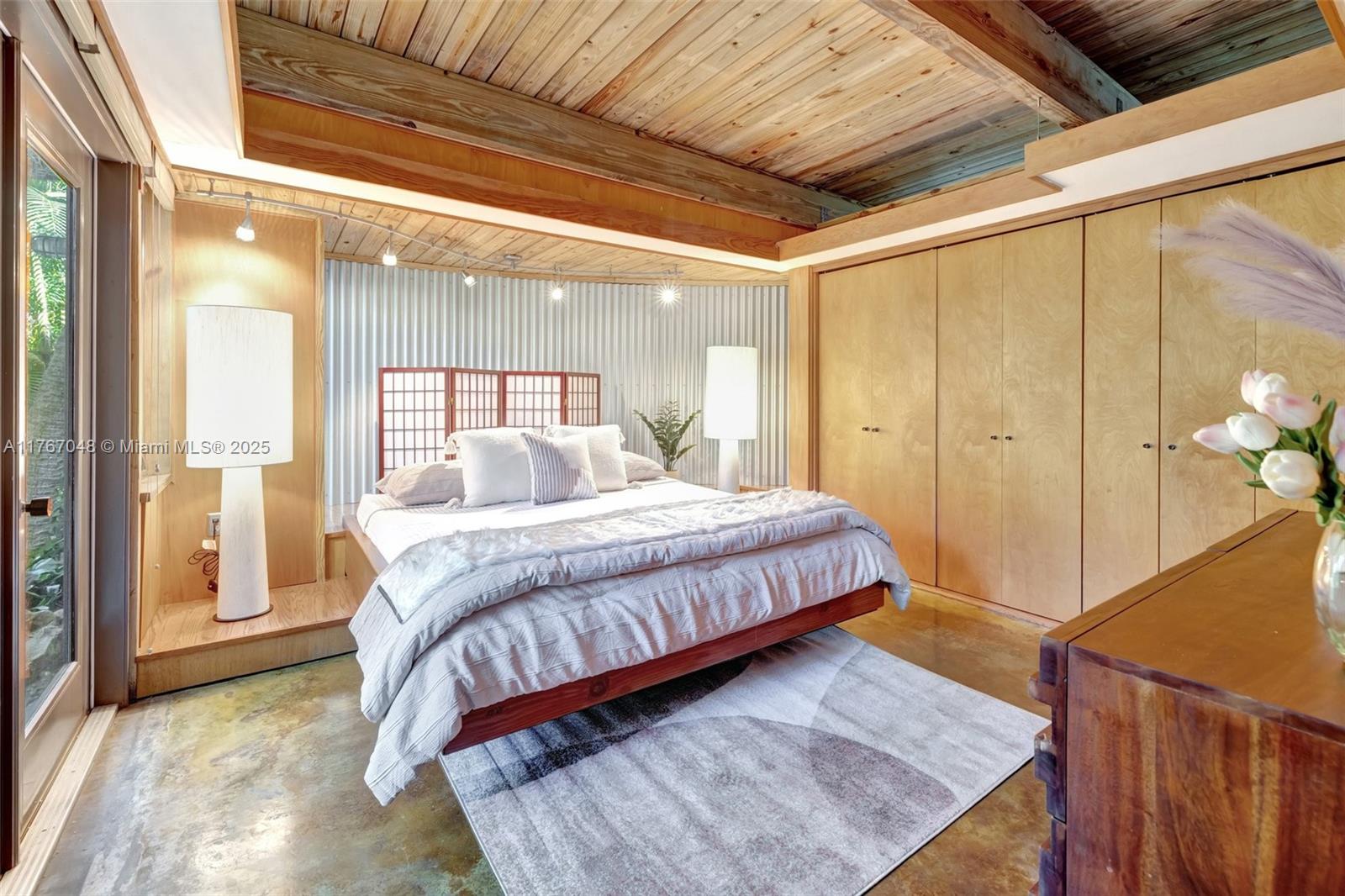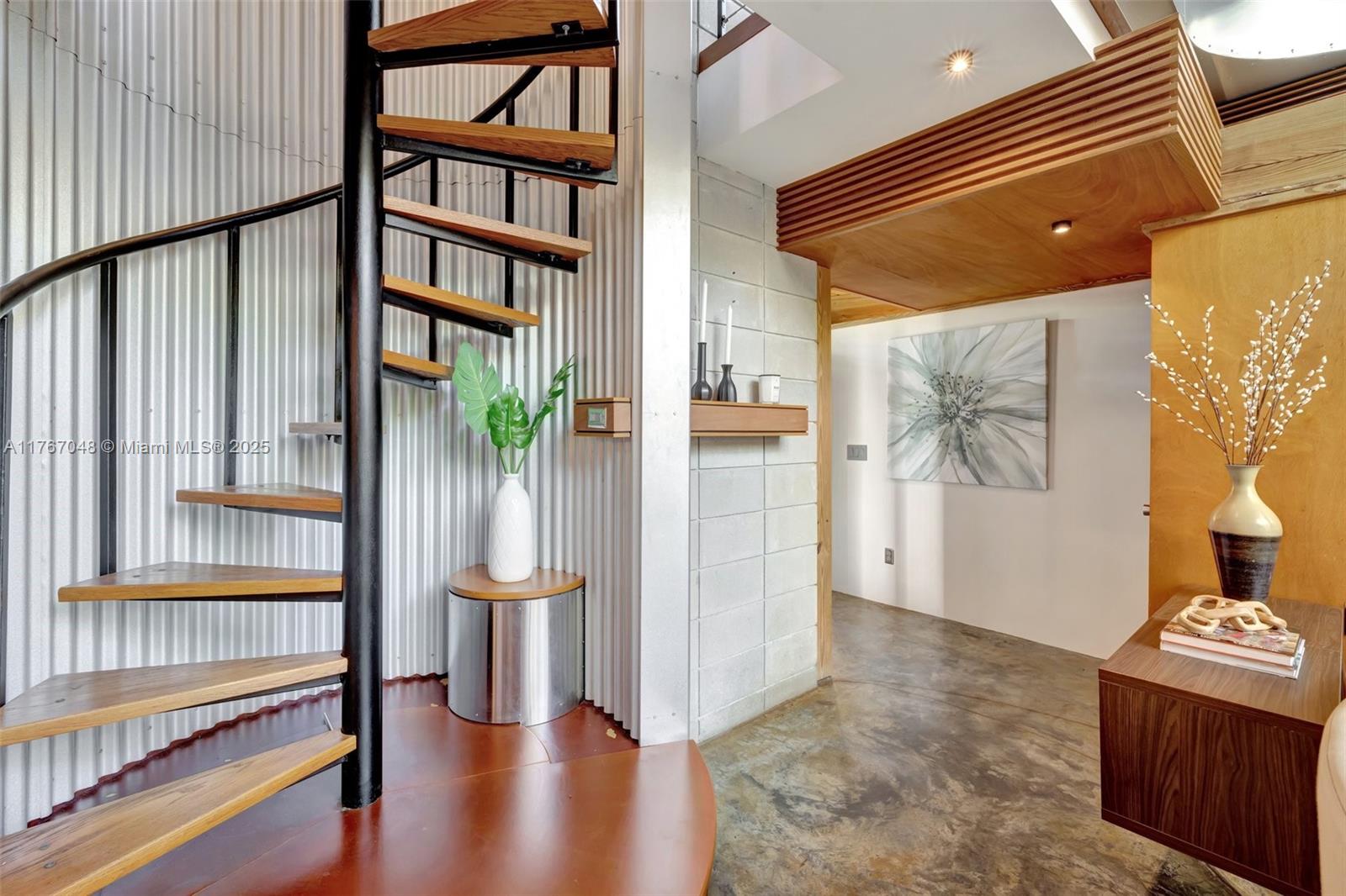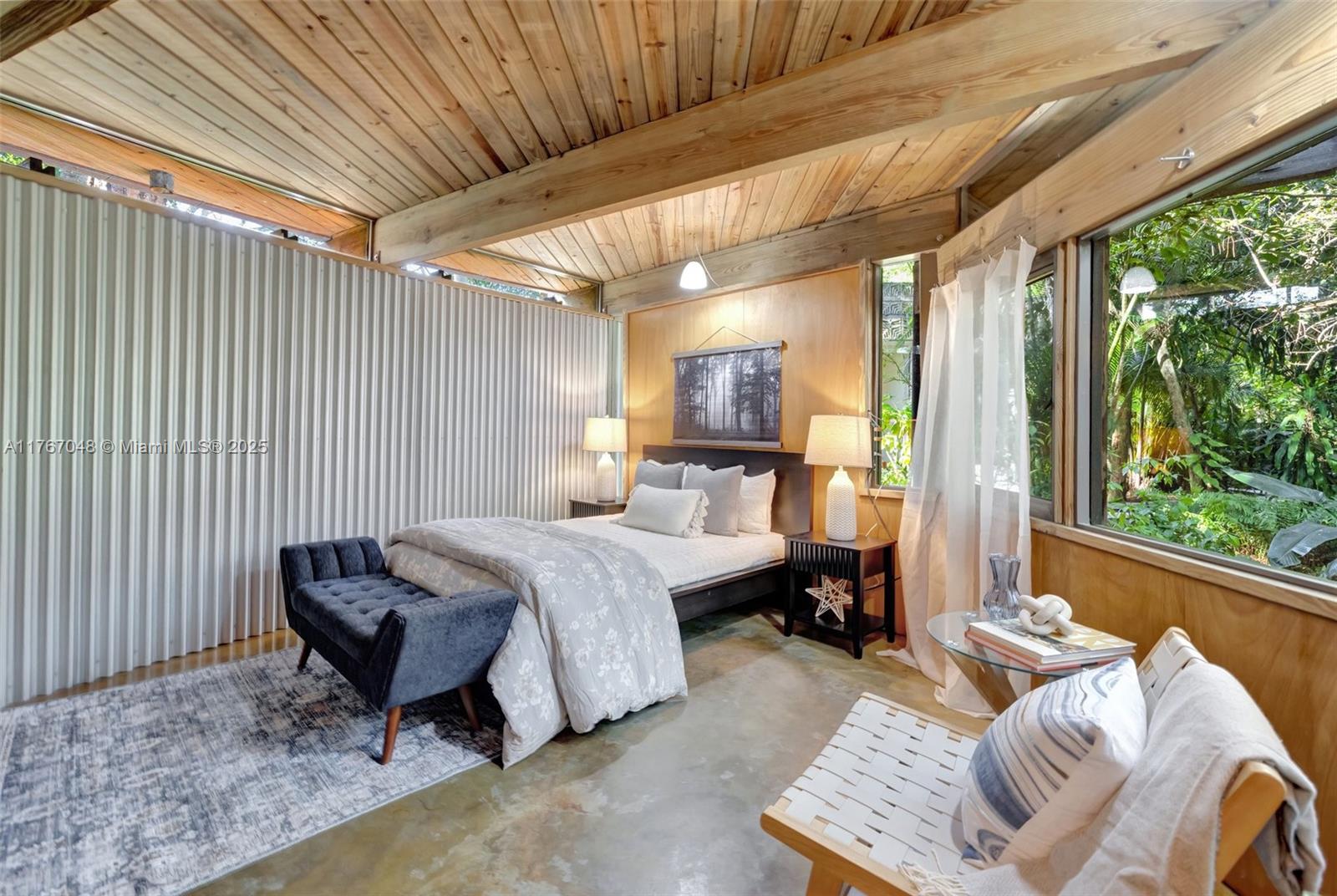 "The Fox Den," an architectural masterpiece by Scott DiStefano, blends contemporary design with organic materials in the Frank Lloyd Wright tradition. This 4-bedroom, 3.5-bath home sits on a 10,500 sq ft wooded lot in Riverland Woods. Features include exposed concrete, timber framing, copper fascia, and stainless steel elements throughout. The versatile floor plan offers a loft space and attached studio/office with separate entrance. Custom built-ins and strategic windows frame views of the landscaped grounds. Distinguished by galvalum cladding and corrugated metal, the home boasts concrete floors and appliances. Located minutes from downtown Fort Lauderdale, this internationally recognized residence represents organic contemporary architecture at its finest.