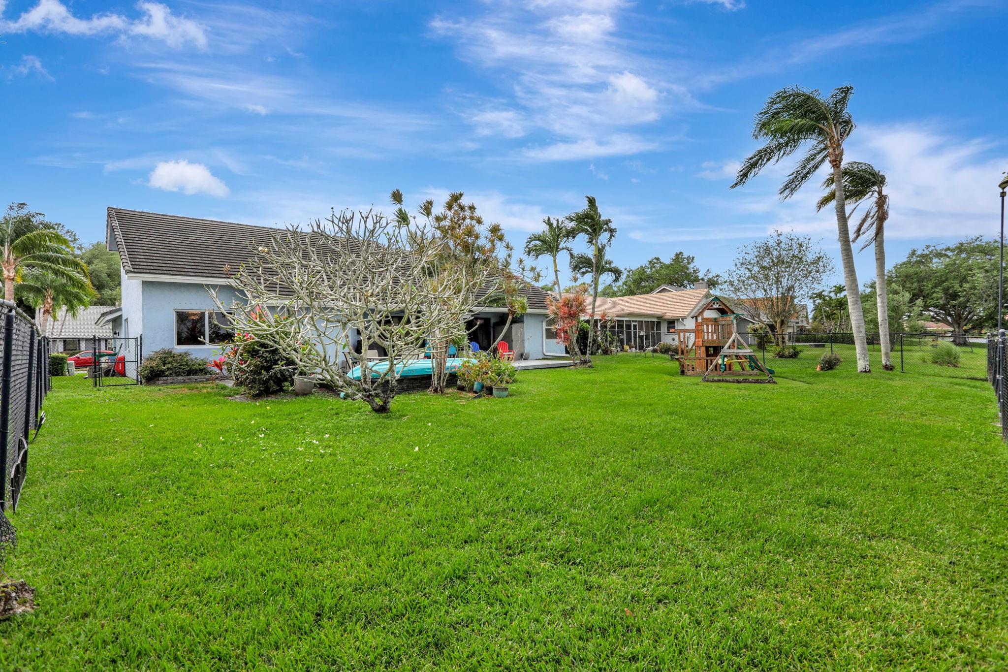 BEST LAKE LOT IN DESIRABLE OAK KNOLL ESTATES IN DAVIE!!! Upon entering this stunning 3/2 with 4th BR/office option & 2 car garage you will find soaring vaulted ceilings, open floor plan, abundance of natural light, kitchen w/SS appliances, remodeled 2nd bath & ample closet space. Backyard w/enormous Trex deck. Tons of patio space to watch the gorgeous sunsets, & plenty of green space. Extended brand new paver driveway, property is EV ready. Absolutely incredible lot! Close to shopping/top Davie schools/airport/restaurants. Another great perk is being a resident of the community is access to Pine Island Ridge CC amenities & they feature: golf, heated pool, gym, tennis, pickleball and restaurant. ROOF 2013, GARAGE DOOR 2022, AC 2025, SQUARE D PANEL, IMPACT WINDOWS, NO POLY PIPES.