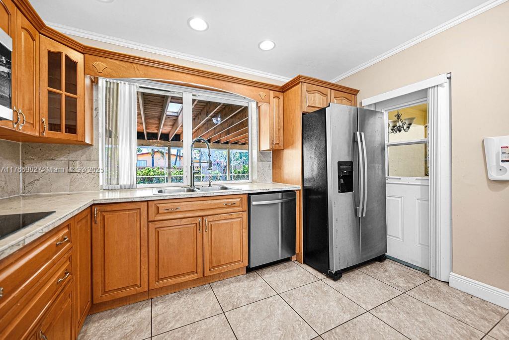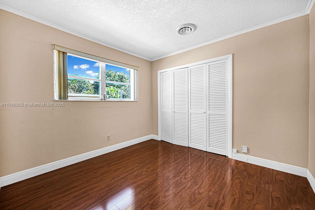 Charming 3 bedroom, 2 bathroom single-family home nestled in the heart of Hollywood Hills. The home features beautiful wood flooring throughout, except for the kitchen which boasts stylish tile. The kitchen has been updated with sleek stainless-steel appliances. The primary bathroom has also been renovated for a modern touch. A spacious, covered back patio is perfect for entertaining or relaxing in the sun. The large backyard offers plenty of space nearly 9,000 sqft. Ideally located in Hollywood, with quick access to I-95, the Turnpike, and 595. Within walking distance to a house of worship and just 15 minutes from Fort Lauderdale International Airport. No HOA fees. Only 10 minutes from Hard Rock Casino. The barrel tile roof was replaced in 2003, and the AC system was updated in 2014.