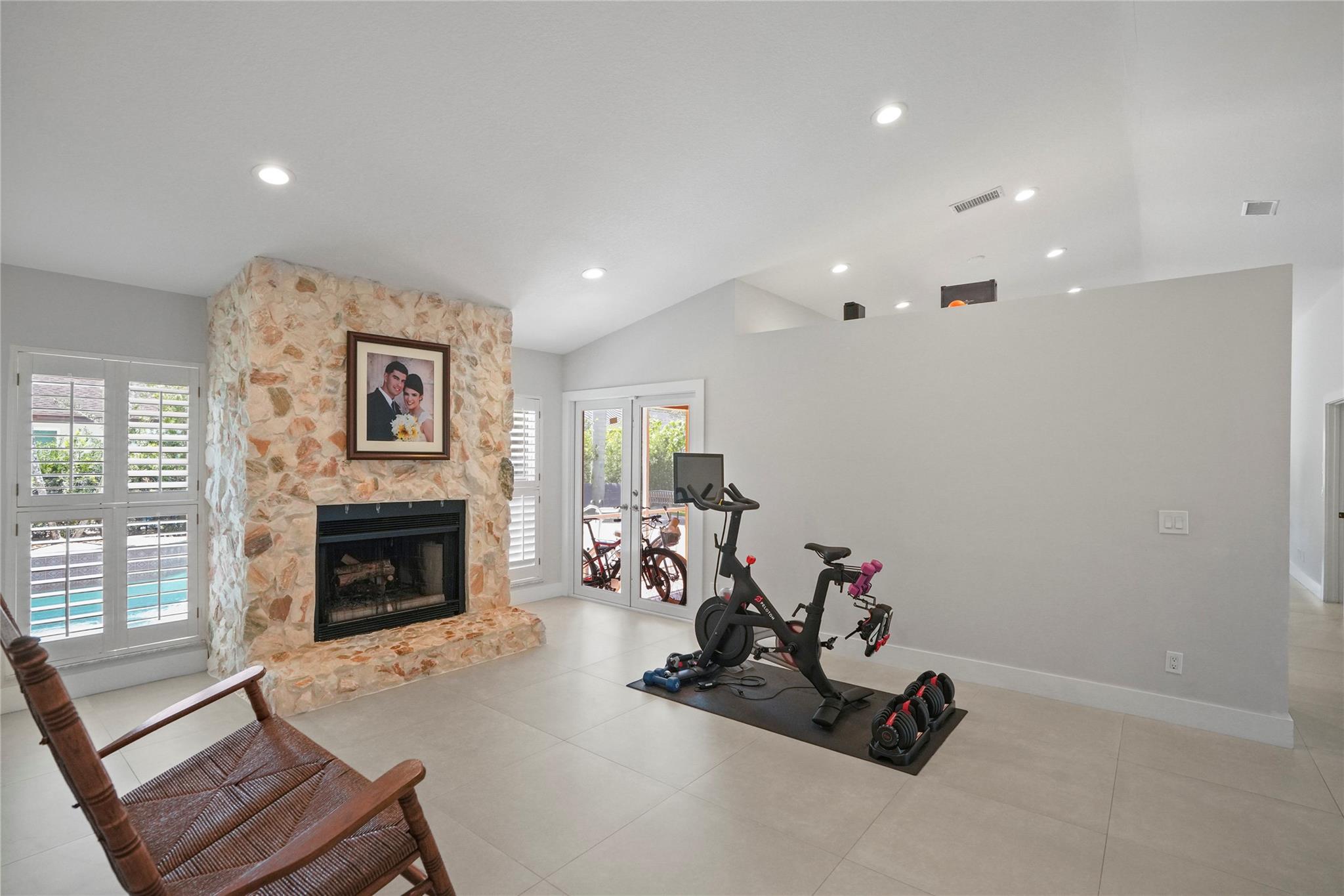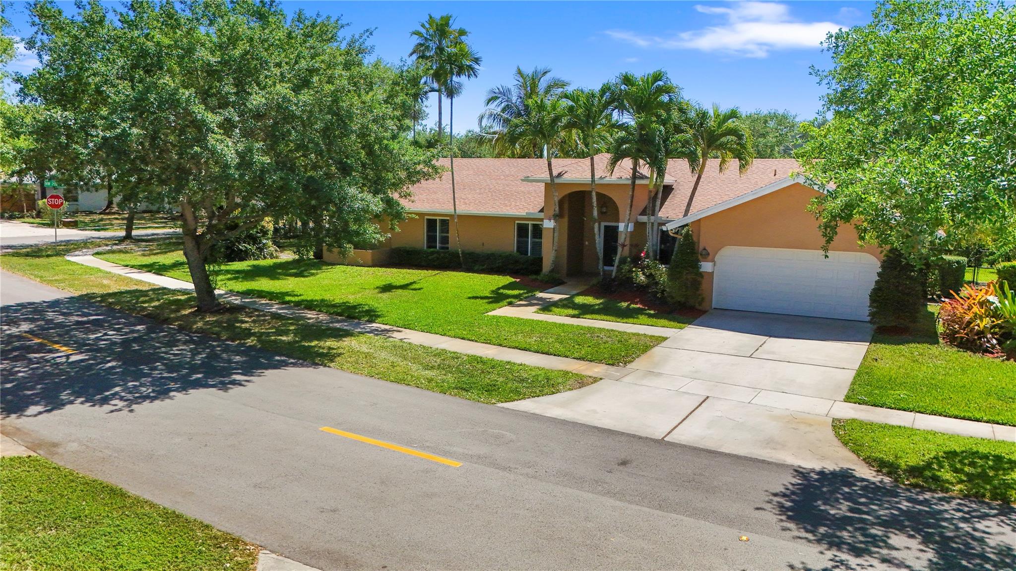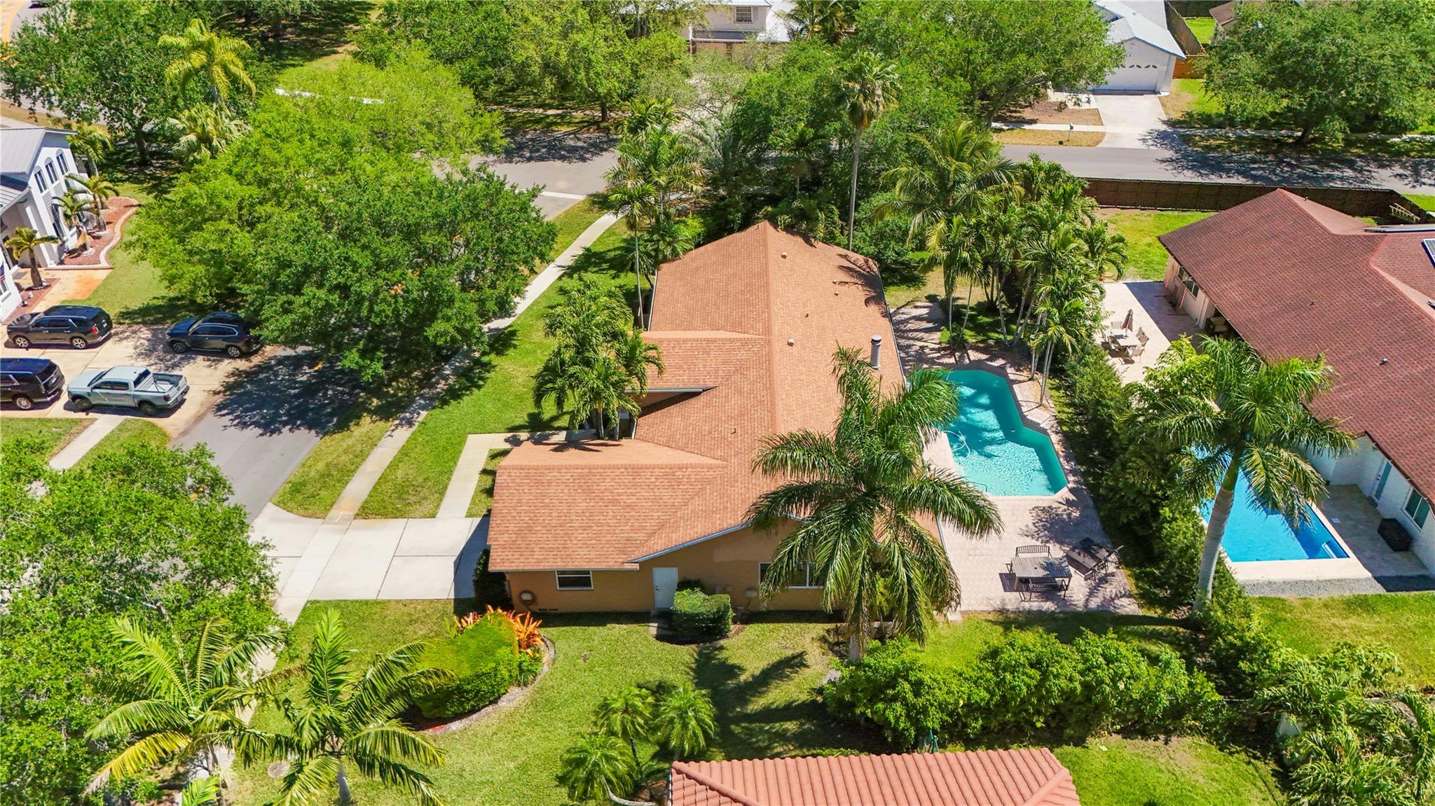 This modern style 3-bed, 2-bath ranch in Pasadena Estates sits on an oversized 1/3+ acre corner lot. Enjoy an open layout with vaulted ceilings, large-format tile, and northern exposure. It features formal dining, a living room with a fireplace, and a family room. The new farmhouse kitchen boasts white shaker cabinets, a blue island with a cooktop, quartz countertops, and stainless steel appliances. The master suite offers a walk-in closet and new bath. Two spacious bedrooms share an updated cabana bath. Outside, a screened patio overlooks a tropical pool, paver sun deck, and large fenced yard. Additional features include a large laundry room, impact windows/doors, new AC, newer fencing, and a 2015 roof. Top-rated schools are nearby