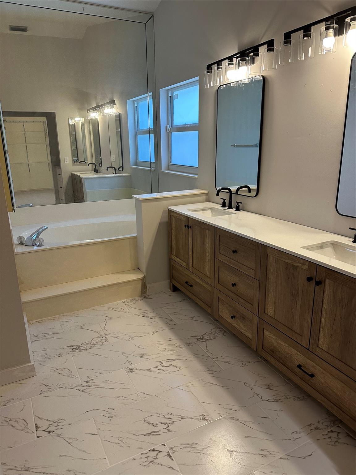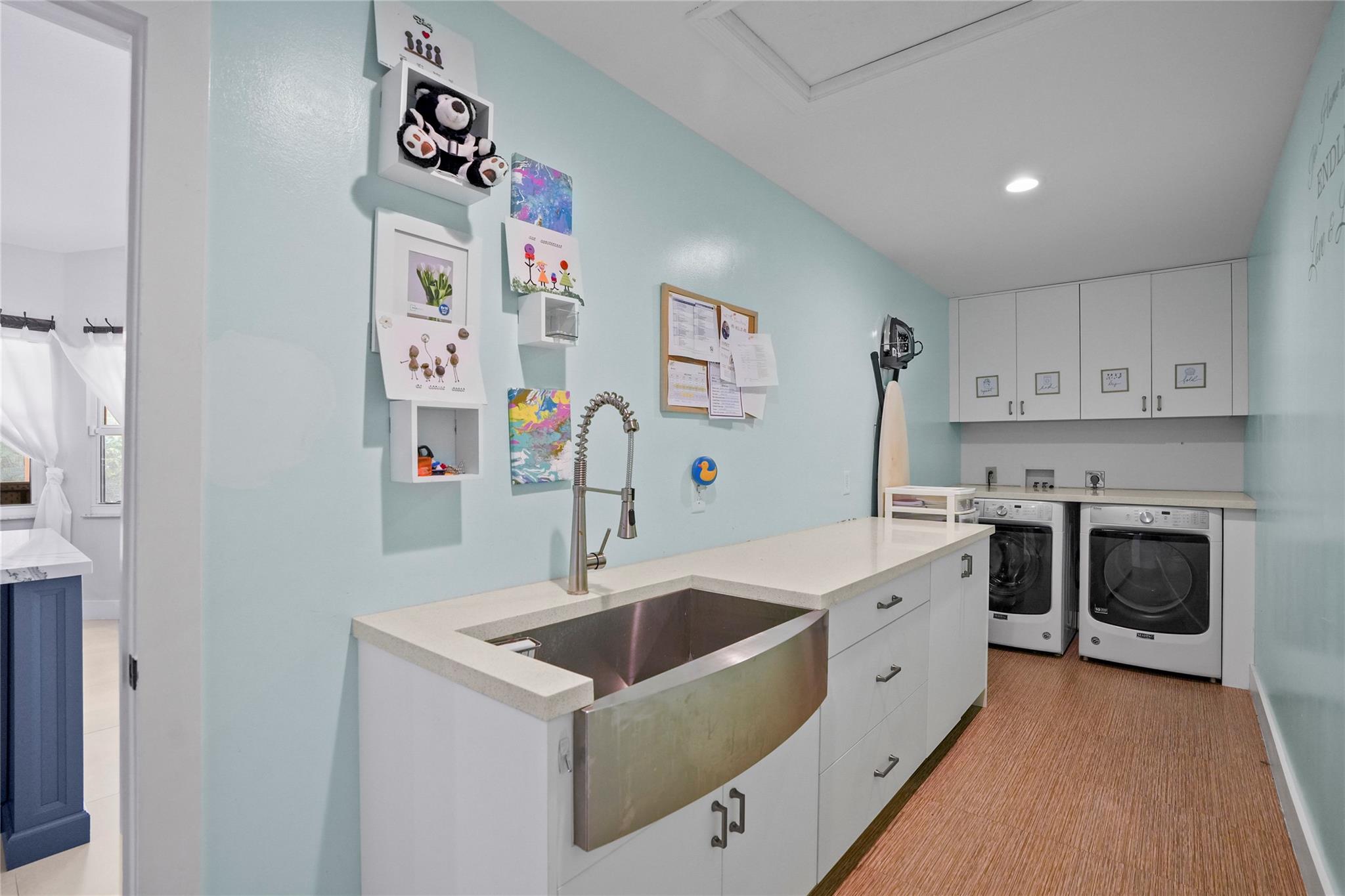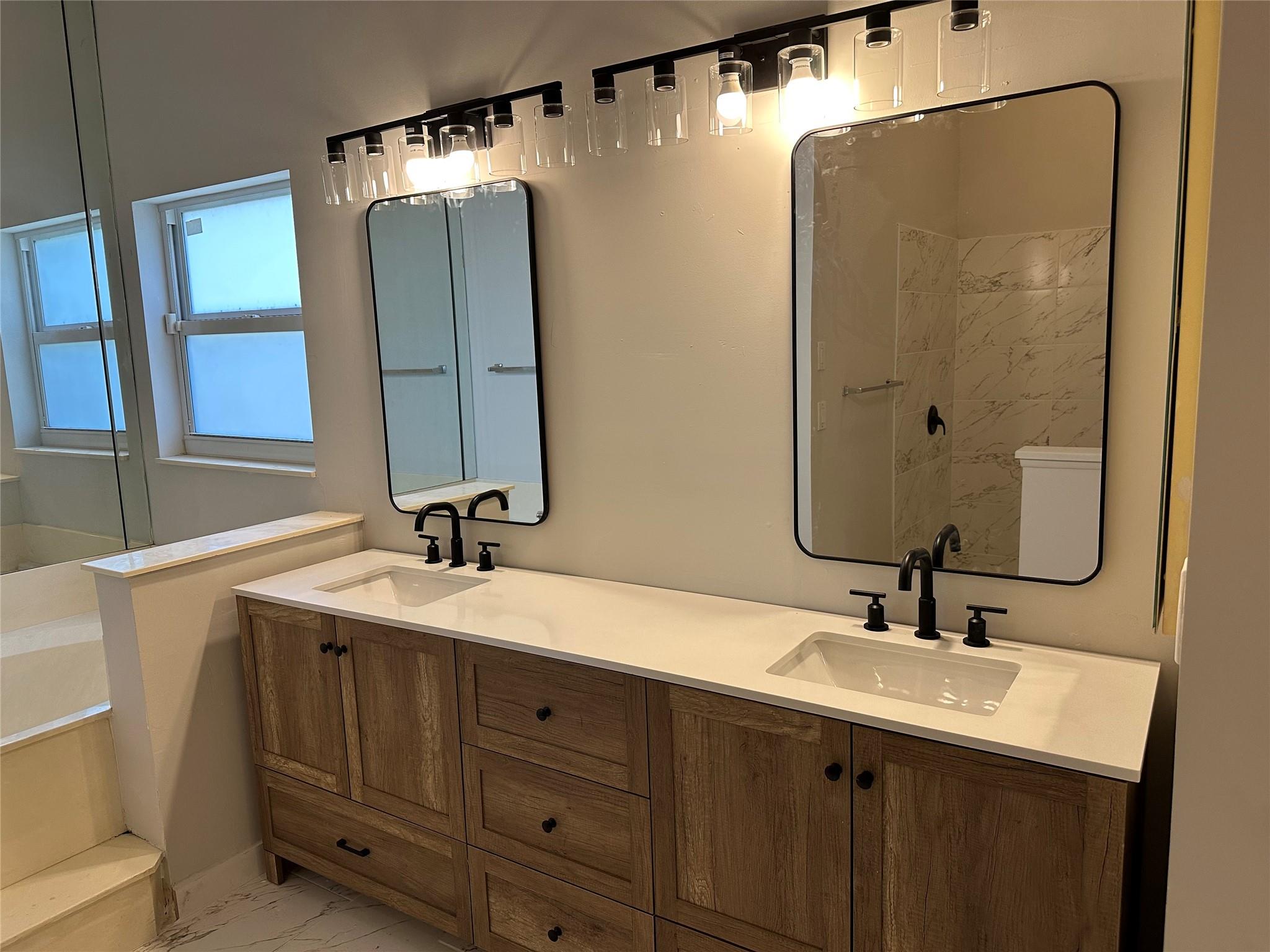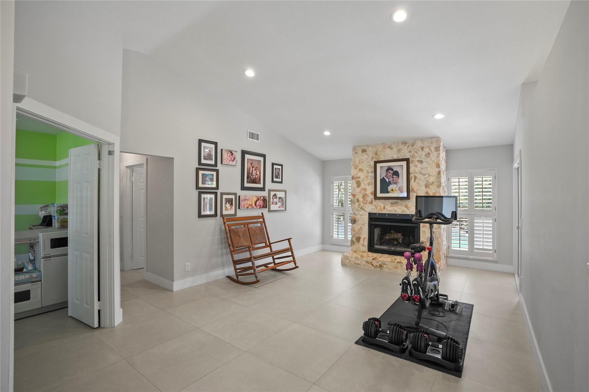 This modern style 3-bed, 2-bath ranch in Pasadena Estates sits on an oversized 1/3+ acre corner lot. Enjoy an open layout with vaulted ceilings, large-format tile, and northern exposure. It features formal dining, a living room with a fireplace, and a family room. The new farmhouse kitchen boasts white shaker cabinets, a blue island with a cooktop, quartz countertops, and stainless steel appliances. The master suite offers a walk-in closet and new bath. Two spacious bedrooms share an updated cabana bath. Outside, a screened patio overlooks a tropical pool, paver sun deck, and large fenced yard. Additional features include a large laundry room, impact windows/doors, new AC, newer fencing, and a 2015 roof. Top-rated schools are nearby