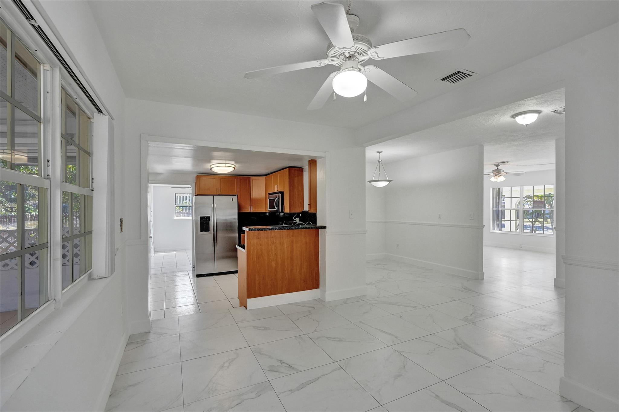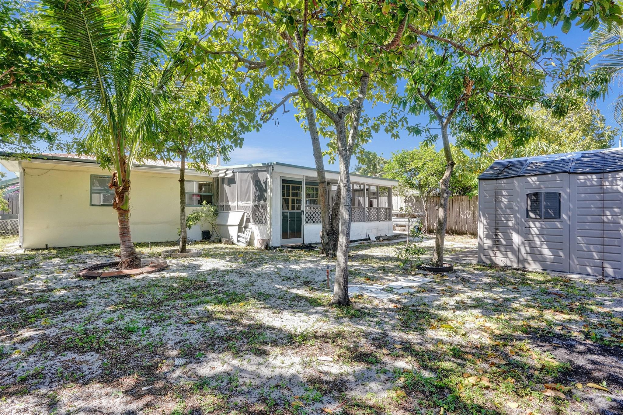 Welcome to this 3 bed, 1 bath gem in the heart of the growing Oakland Park! This well-maintained single-family home has been freshly painted and features new flooring in the main living areas, as well as a beautiful barrel tile roof. Enjoy Florida living with an oversized screened-in patio that is ideal for entertaining or relaxing, and is equipped with an outdoor sink. The large backyard is perfect for kids or pets to run, and features multiple fruit trees, with enough space to add a pool or build your own modern oasis. Walk-in laundry room with plenty of additional storage. Located minutes from Fort Lauderdale, Wilton Manors, and the beaches, this home is close to dining, shopping, and entertainment. Don't miss out!