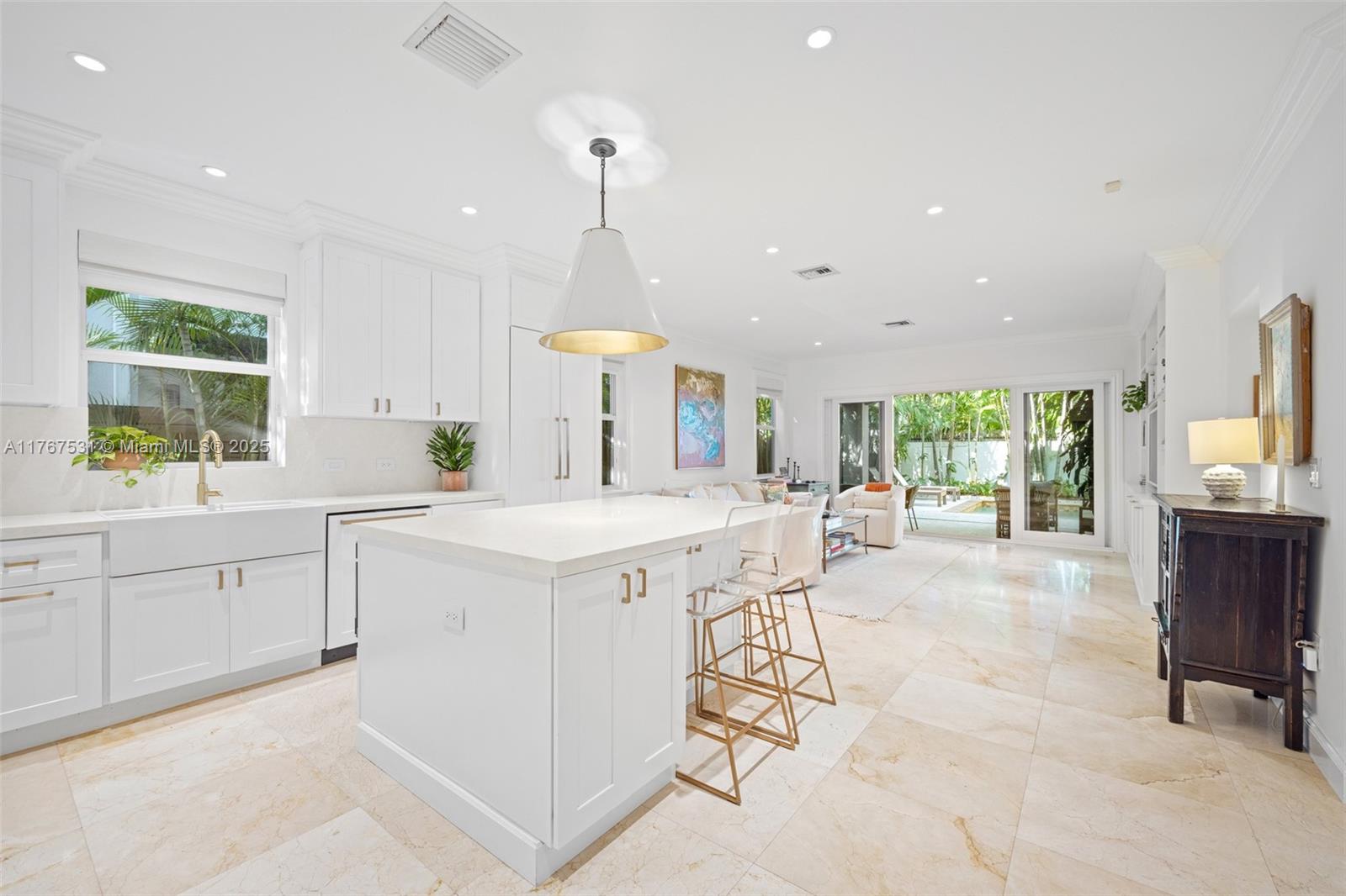 Beautifully renovated, free-standing townhome that lives like a private single-family home in the heart of Center Grove. This move-in-ready 3BR/2.5BA residence offers 2,900 SF of refined living space with volume ceilings, custom millwork, and marble/wood floors. The chef’s kitchen features custom cabinetry, marble counters, an induction range, and double wall ovens—open to a spacious family room. The expansive first-floor primary suite includes a large walk-in closet, seating area, and spa-like bath with soaking tub and separate shower. Enjoy a deep-covered terrace overlooking a pool and spa surrounded by lush tropical landscaping. Gated parking and 2-car garage. Walk to Coconut Grove’s shops, dining, parks, and marinas.