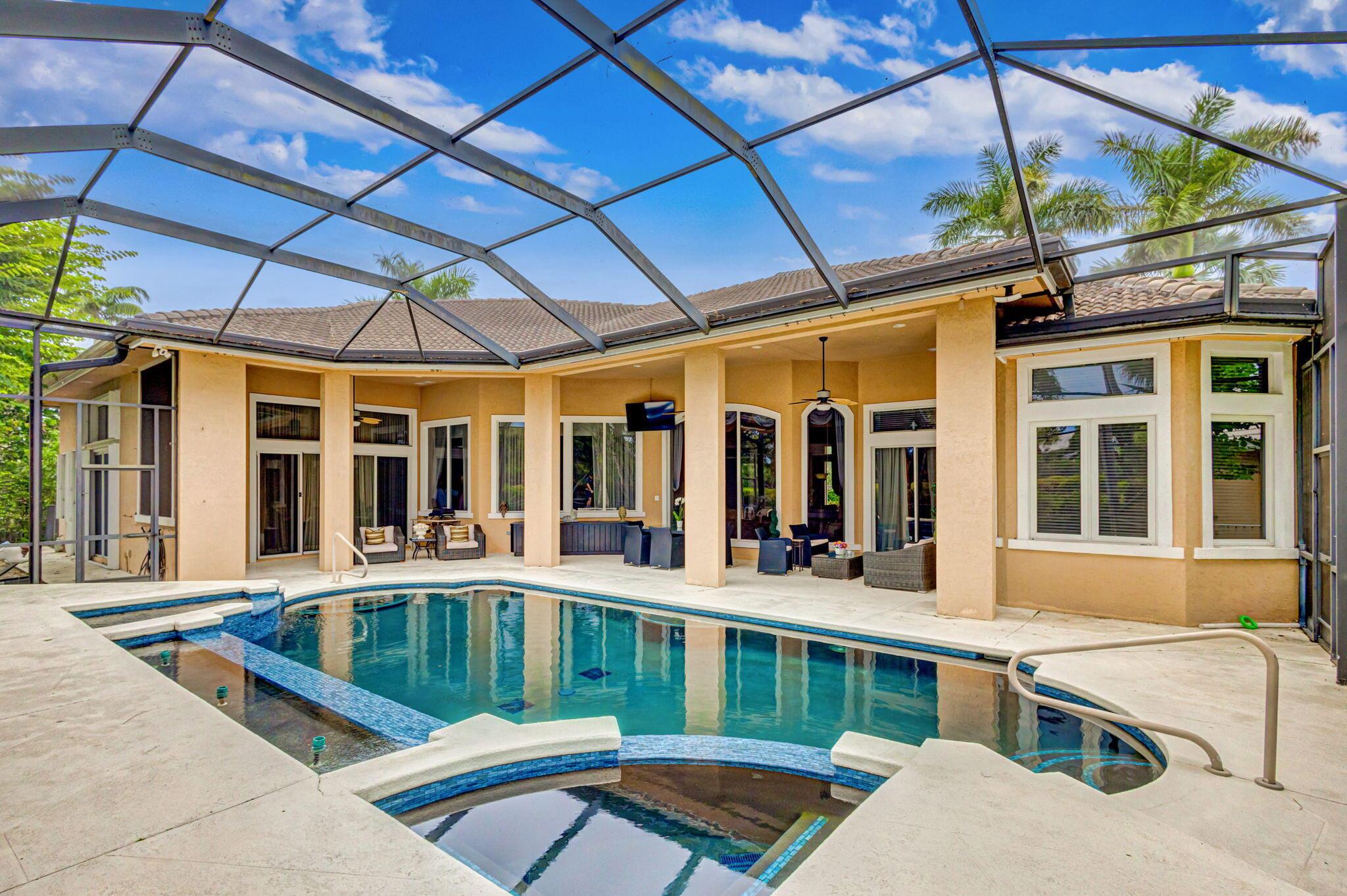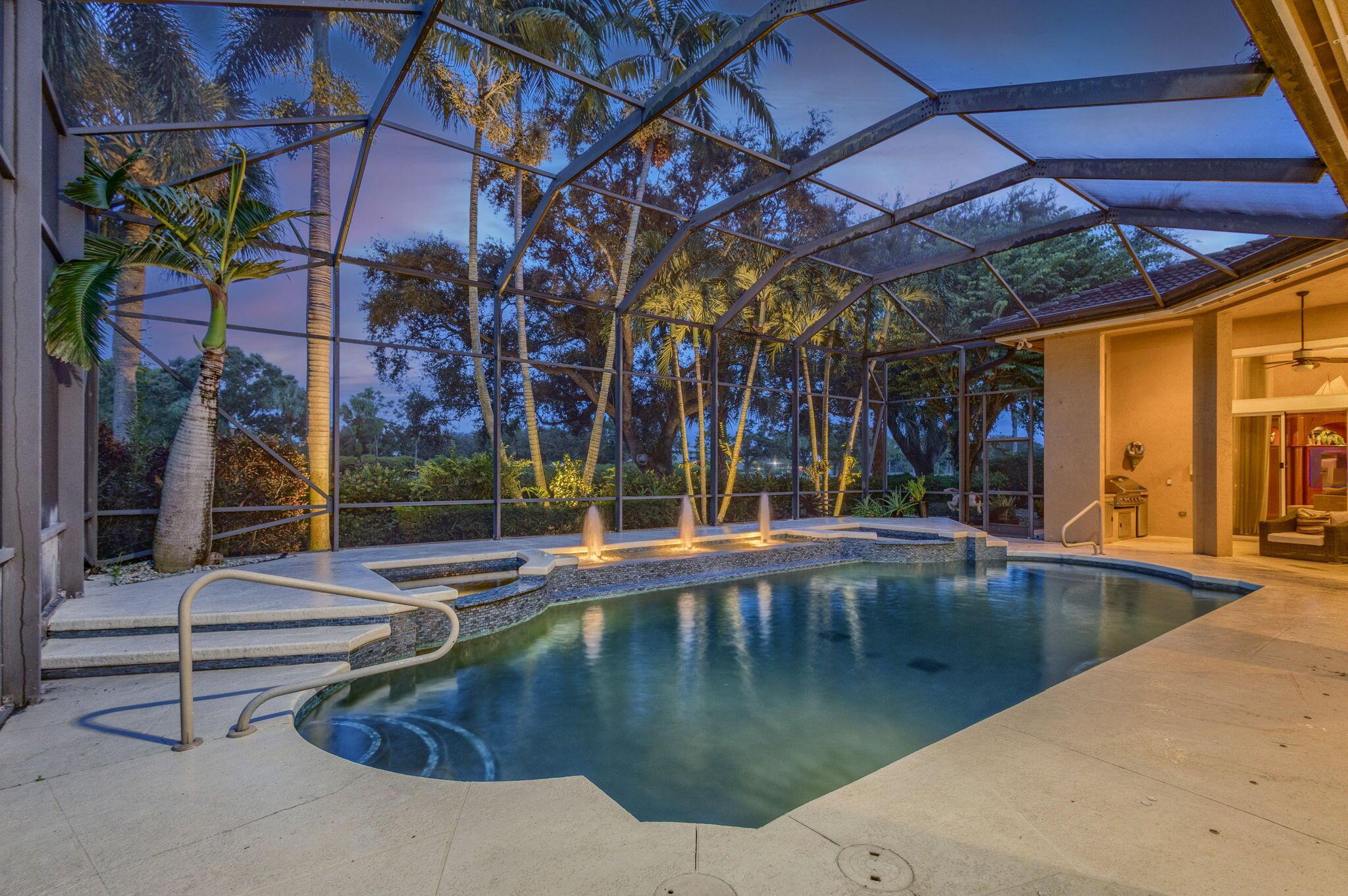Exceptional estate pool home privately nestled on the 17th hole of Bear Lakes Country Club Lakes Golf Course! This sprawling residence features 5 bedrooms plus office and den/loft, 5 full bathrooms and 2 half baths, 3 car garage with circular driveway, formal living and dining rooms, family room, and summer kitchen. With 5,500 SF of living area, this picturesque home is meticulously maintained and sits on an expansive .42 acre golf course lot surrounded by lush tropical landscaped grounds. Impressive upon entry, this majestic home is adorned with soaring ceilings, beautiful marble flooring, crown molding, elegant built-in fireplace, formal dining room, and grand office with custom built-ins and obscure ''secret'' room - perfect for wine room or storage of valuables.