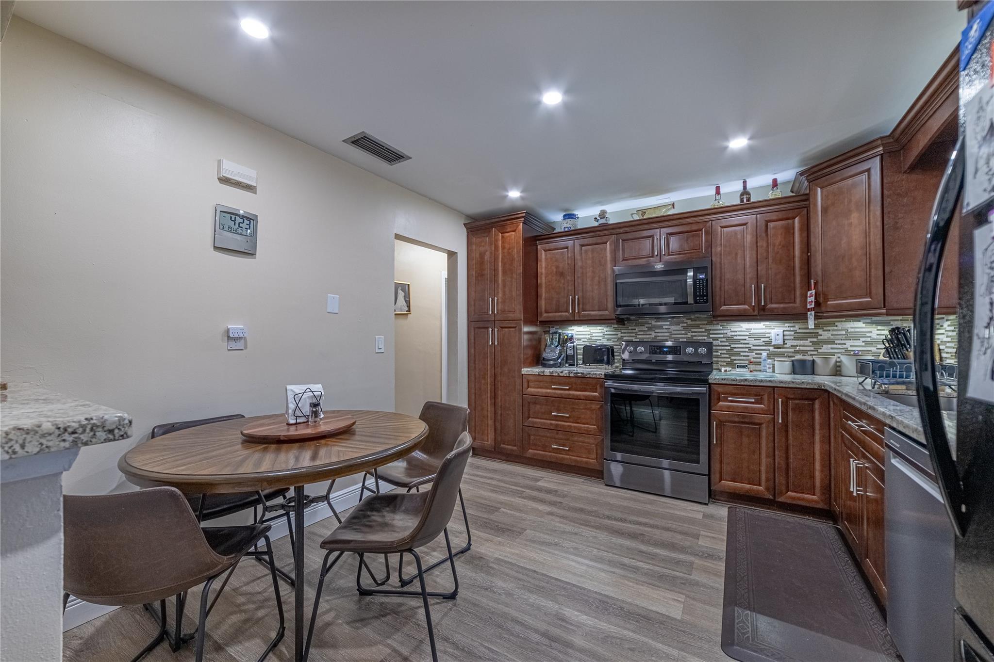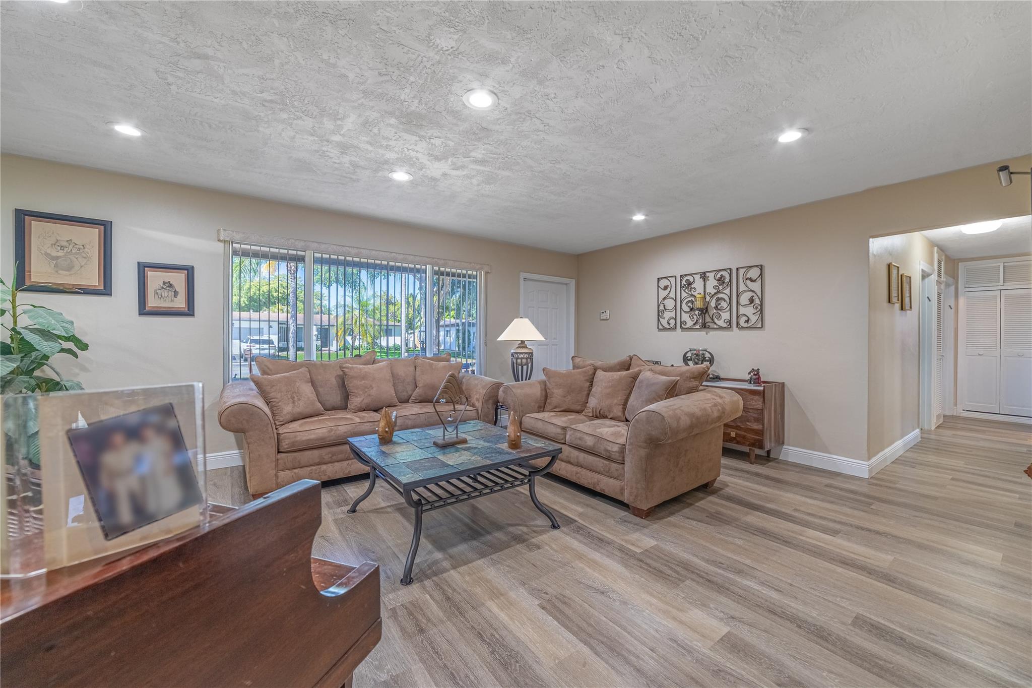 Beautiful Pembroke model home. This 4-bedroom 2-bath, 2200+ SF home has been nicely updated. Impact windows, garage and doors, newer kitchen, new remodeled bathrooms, vinyl flooring. carpet in bedrooms, A/C 2024, lg water heater, 2019 Electrical panel, Family room wired for 5:1 sound. EV outlet for electric car installed. Quiet neighborhood, close to shopping and schools. voluntary HOA. Concrete circular driveway. Huge yard. Room for a pool. Vacant! Contact me for a showing. PRICED REDUCED!!!!!