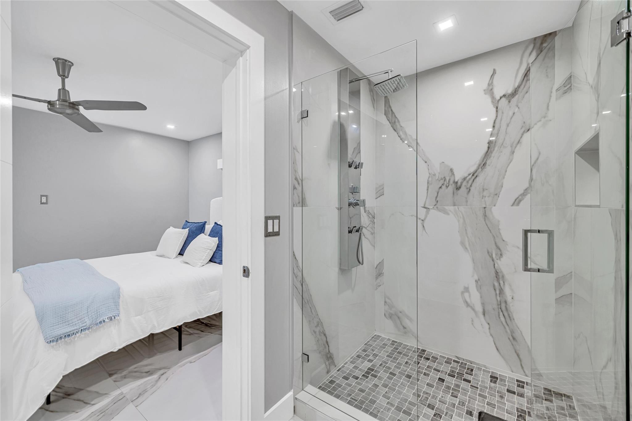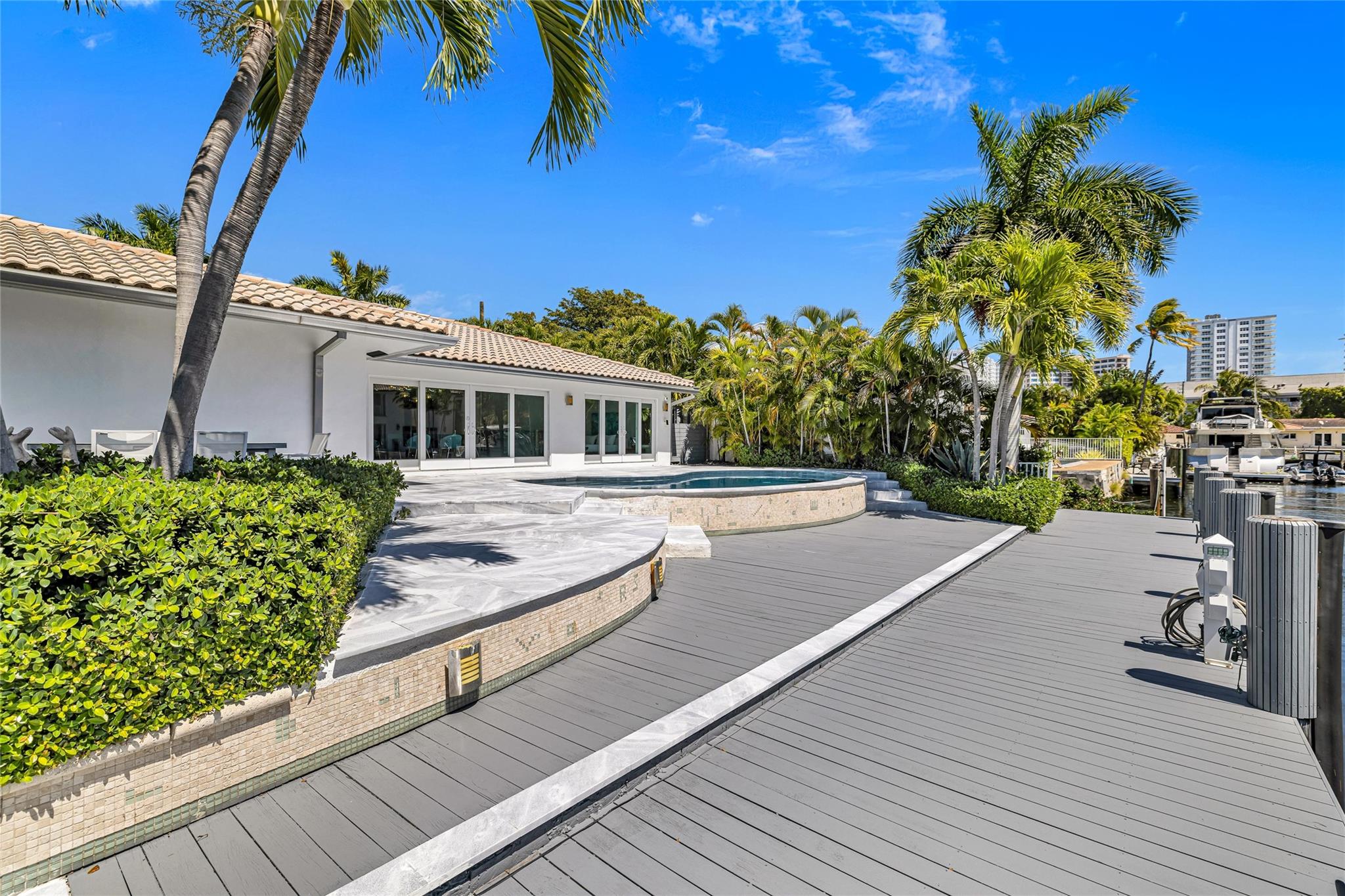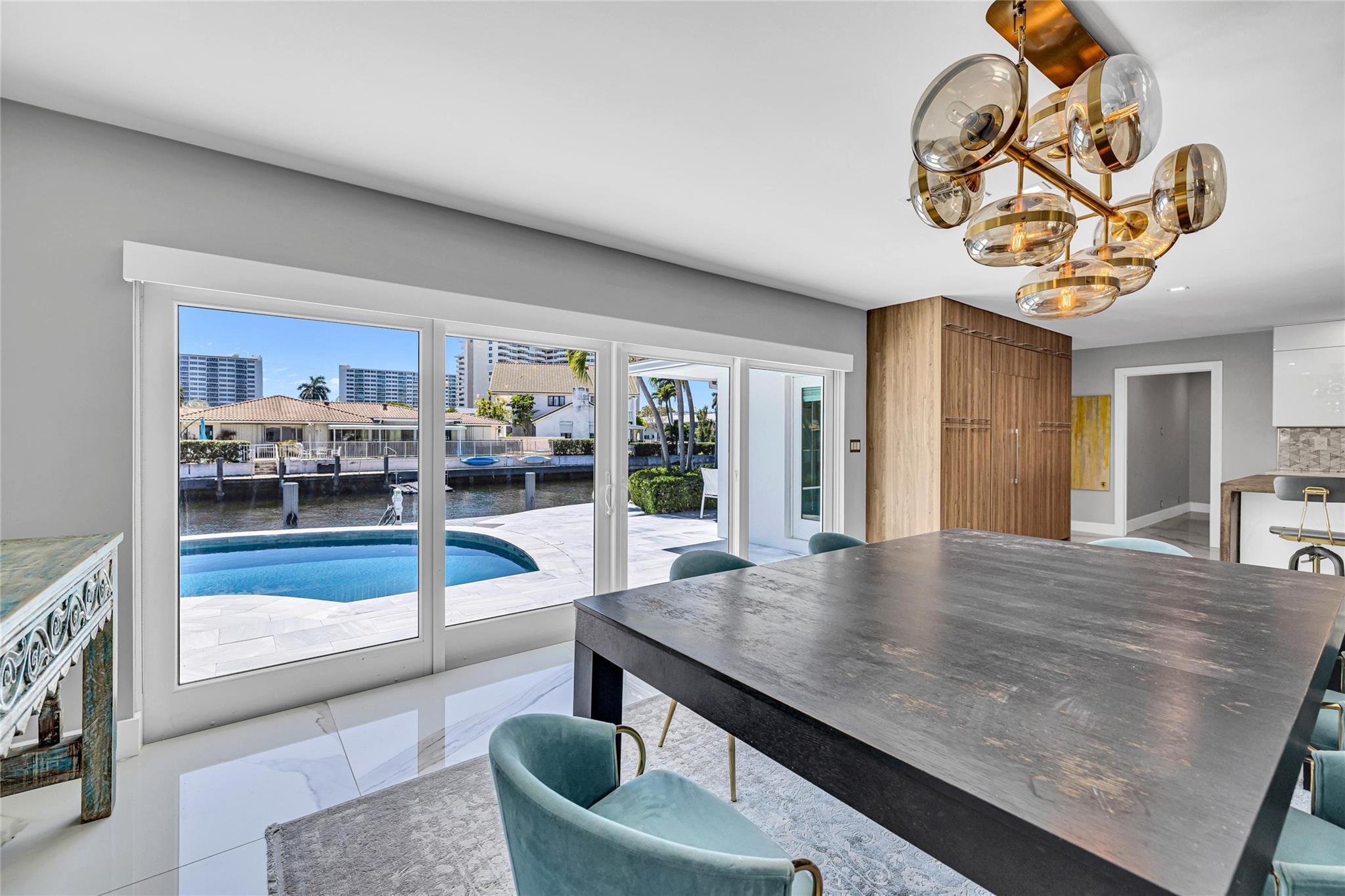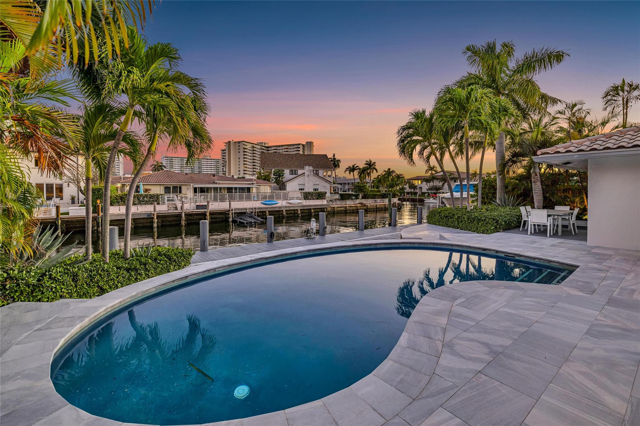 Outstanding waterfront home blocks to the beach in gated Bermuda Riviera. Modern interiors blend seamlessly with the outdoors through wide, sliding glass to a tiered patio and dock surrounding the pool. Designed for entertaining, the kitchen features a long center island, modern appliances and ample storage. The split plan allows each bedroom to enjoy privacy. The primary suite is a quiet retreat with sliders out to the pool, a massive walk-in closet and a 13 x 18 foot bathroom featuring a multi-spray shower. All three baths are updated in modern finishes. 16 foot squares of porcelain flooring is consistent throughout the house. The oversized garage has twin bays with extra wide doors. Multiple dining and shopping options are located within minutes of the property. Home Warranty Included