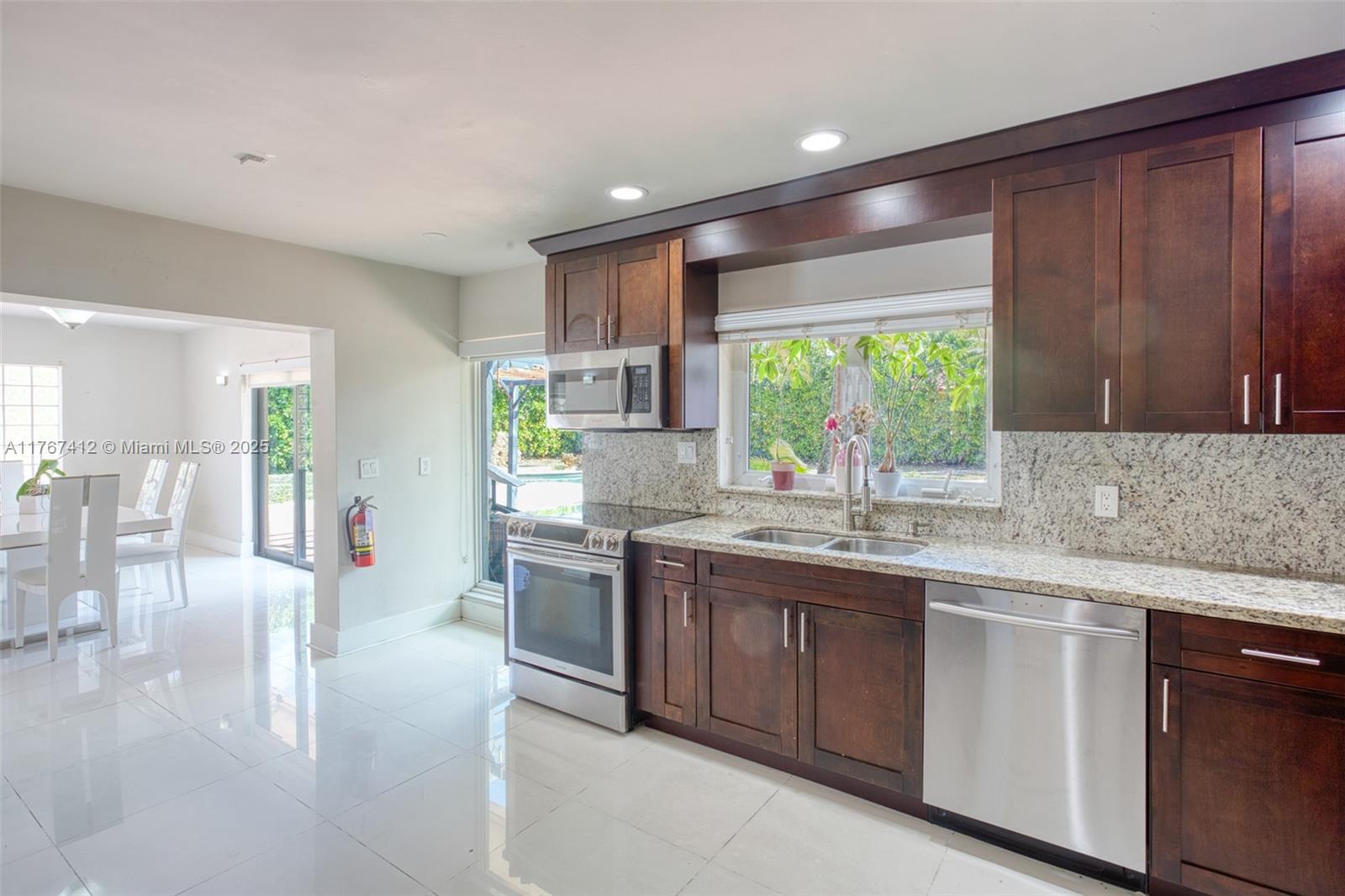 Rarely available 4 bedroom home that sits on nearly half an acre in the highly sought-after Country Club of Miami community. The property features a split floorplan with the kitchen and living areas connecting to the bedrooms via a light-filled walkway that leads to the massive backyard. Upgrades include modern flooring, a contemporary kitchen, updated bathrooms, and commercial-grade impact windows and doors. Plenty of room to roam in the huge backyard and patio with a custom pool & spa. A separate entrance accommodates your boat or RV. Nestled in a quiet neighborhood with NO HOA, walk to the golf course and enjoy great shopping, restaurants, and parks nearby. Zoned to A+ schools and great for commuters with quick access to I-75 and the Palmetto. Move quick on this one!