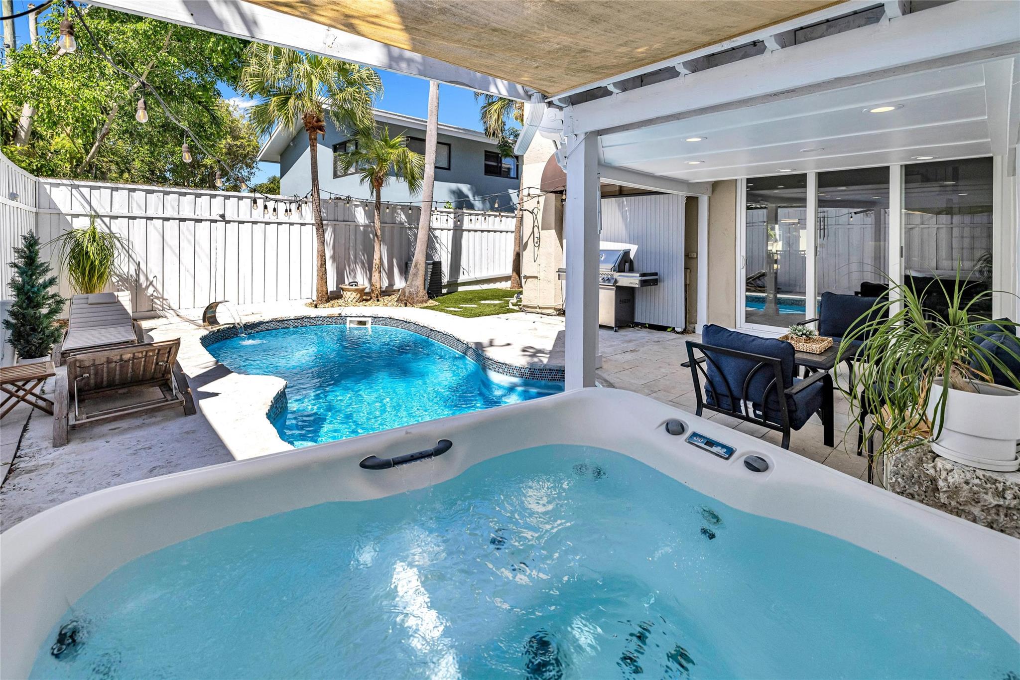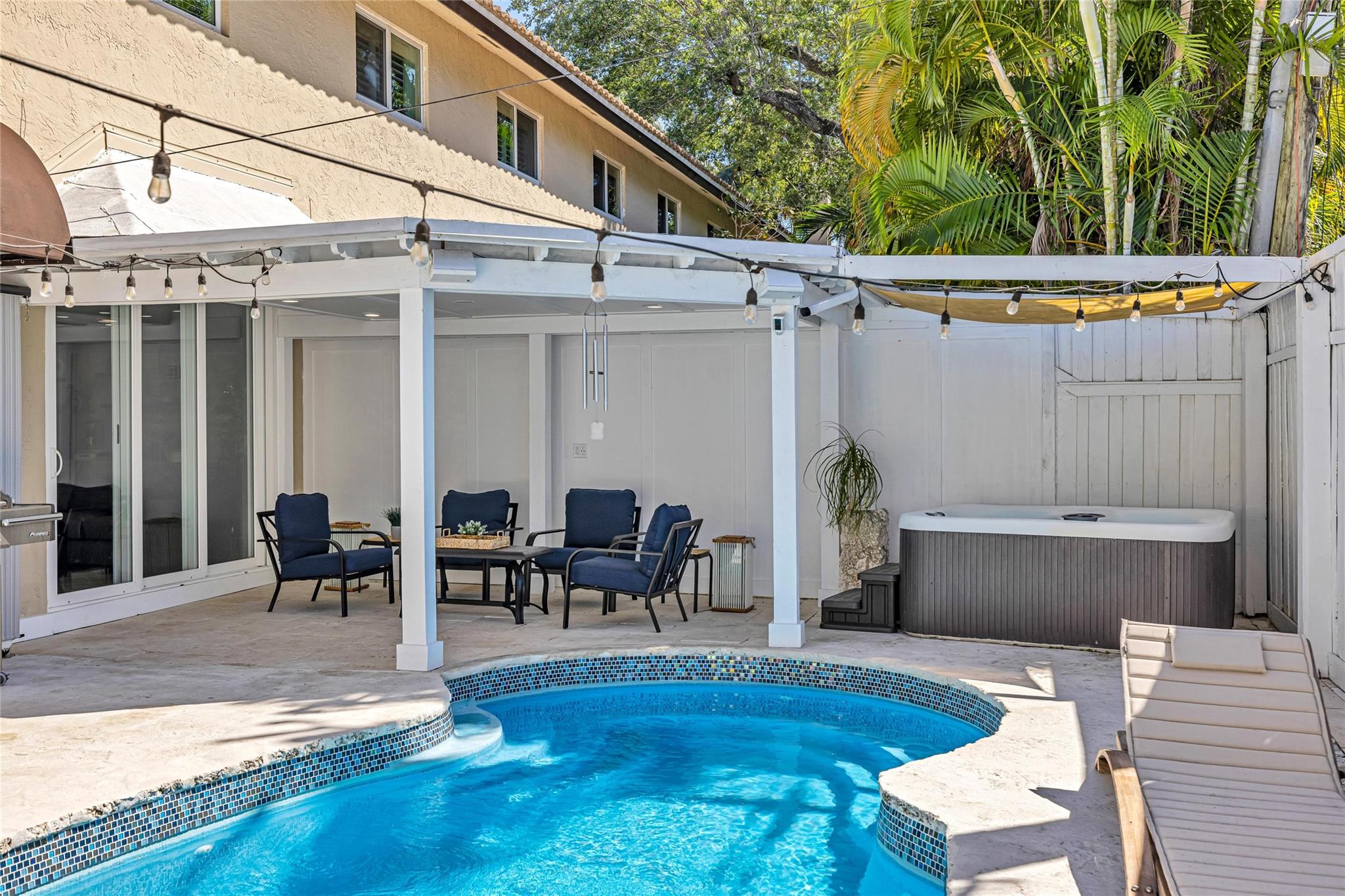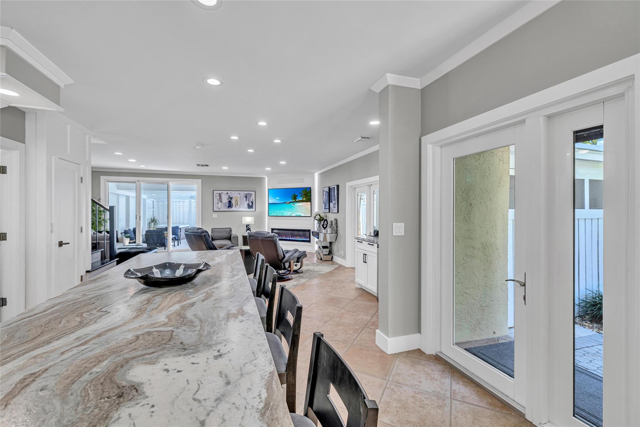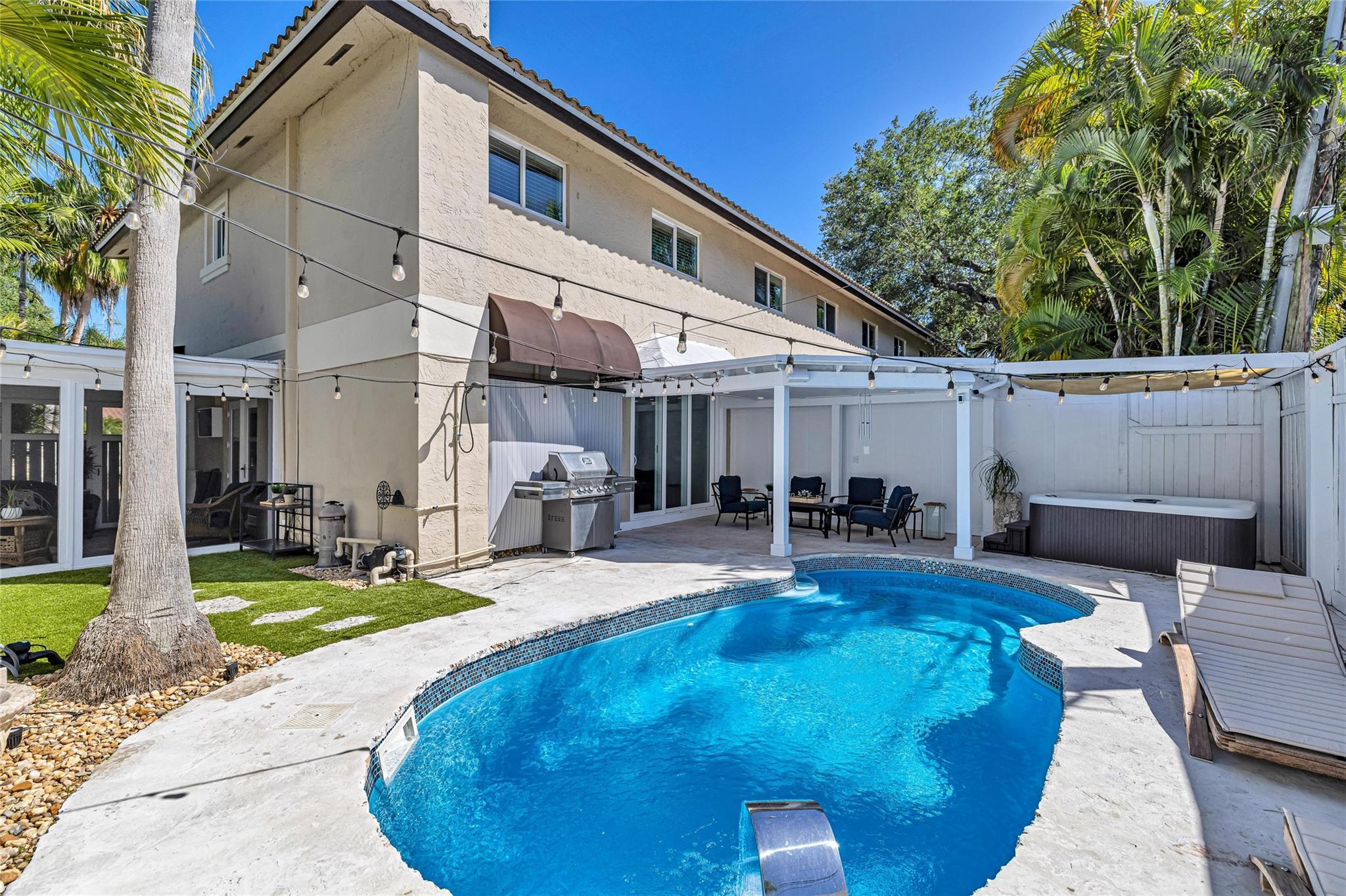 This beautiful, corner townhome with a private pool lives like a house blending style, privacy, and convenience in sought-after Victoria Park. Designed for comfort and entertaining, the two-story plan has an open family room, a remodeled kitchen with a breakfast bar, a dining room, butler's bar and a half bath. Adjacent is a screened porch, while sliding doors open to the patio, garden, pool. Upstairs are 3 spacious bedrooms, 2 full baths and a washer/dryer. The primary suite has a walk-in shower and ample closet space. Hurricane-impact windows and doors provide peace of mind. A deep garage and gated entry allow parking for multiple vehicles, including a golf cart. Enjoy the feel of a single-family home in a prime location, minutes from parks, Las Olas the beaches, shopping, and downtown.