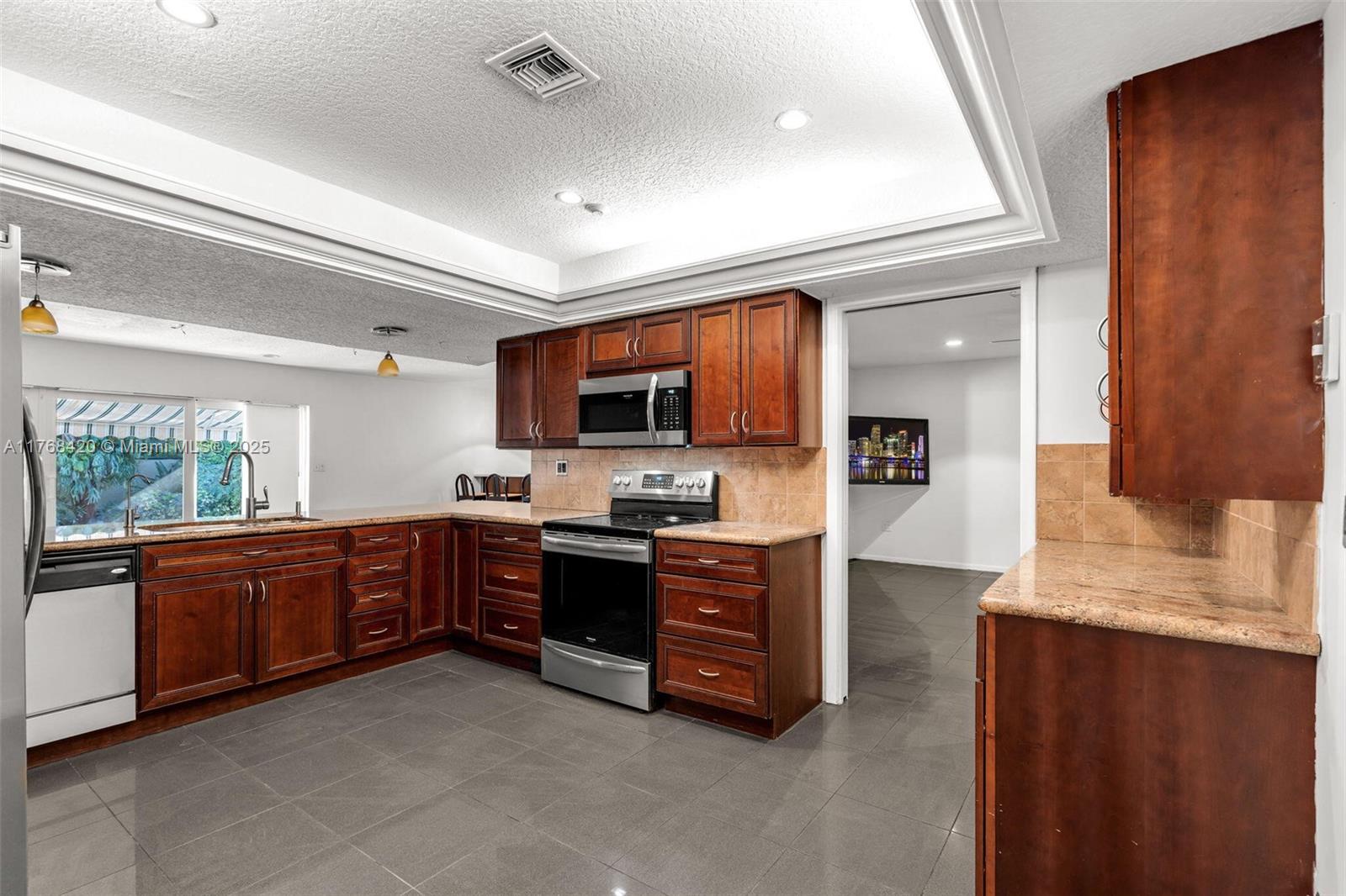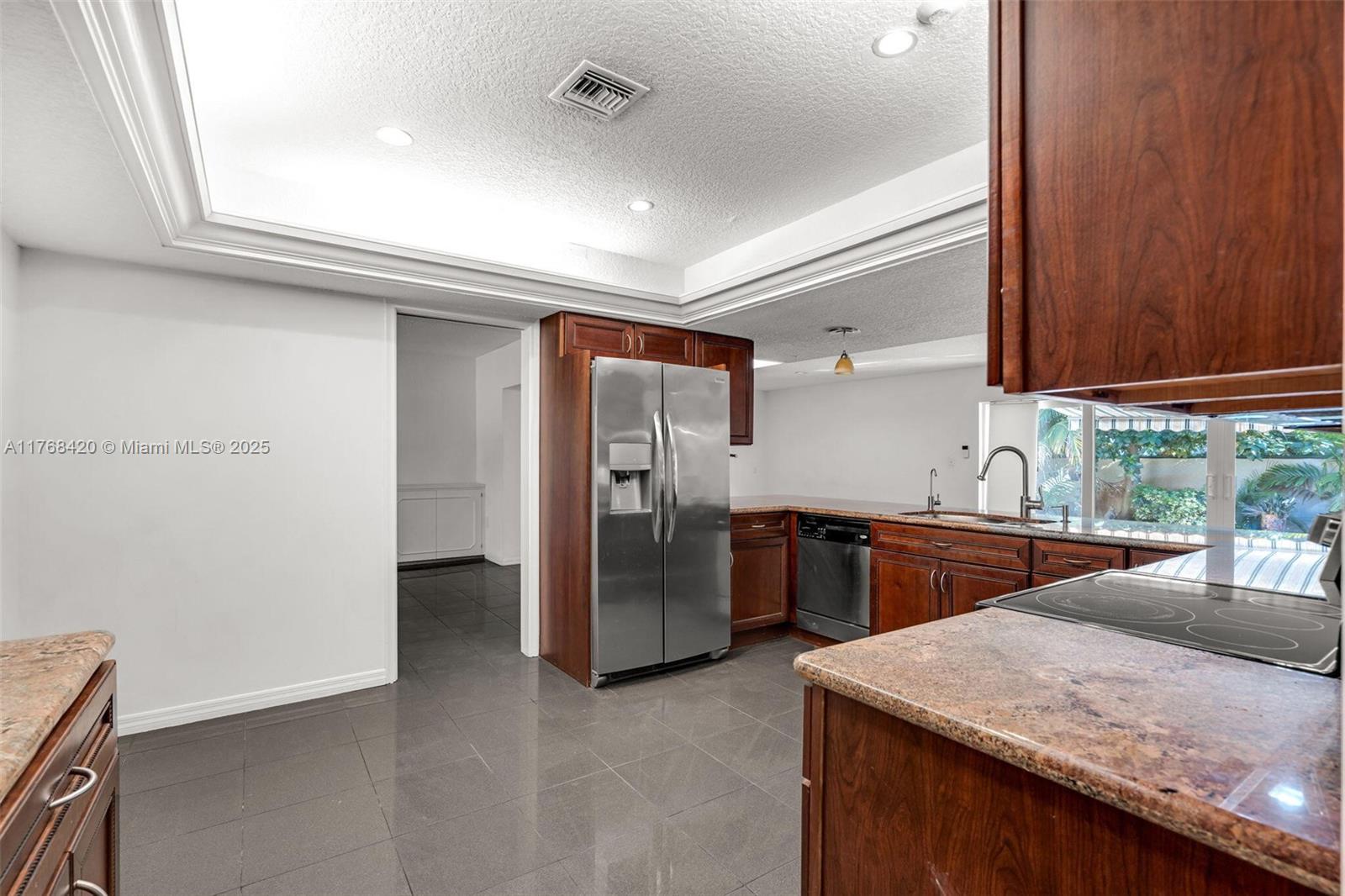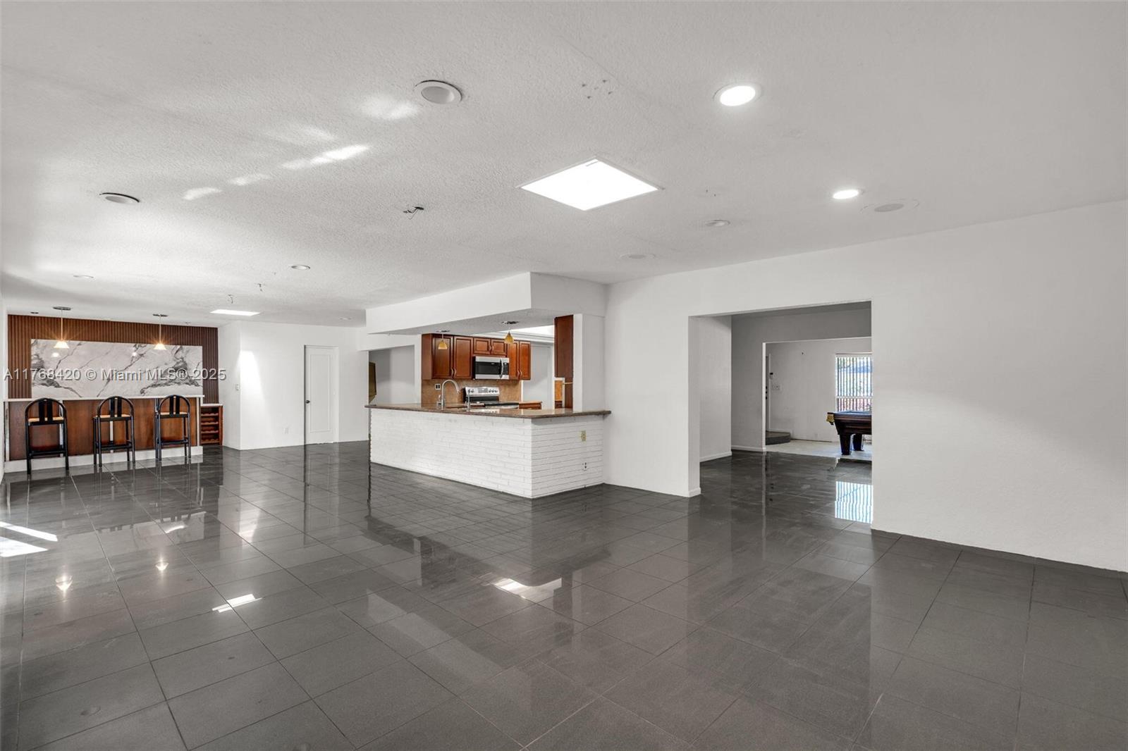 This is the ONE you have been waiting for! This home is situated on a corner lot in the Hollywood Hills neighborhood. It features a newer metal roof and manicured landscaping. The impeccable layout with nearly 3000 sq ft of living space in addition to a TWO car garage provides unlimited potential! This home features a ton of living space and a WETBAR, for comfortable living and hosting. A beautiful master suite with a unique en suite bathroom, powderoom, and walk-in closet. The yard features a SALTWATER POOL, water fountain, and fruit trees. Experience Florida living at its best!!