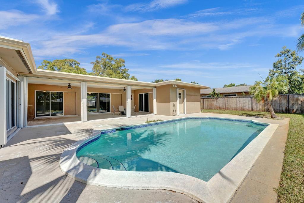 Welcome to your private oasis in the heart of Plantation Park! This charming 3/2 home offers a spacious open floor plan, perfect for entertaining or simply relaxing. Step inside and be greeted by an abundance of natural light that fills every corner of the home. The property boasts tile flooring throughout, an updated kitchen with ss appliances & granite tops & brand new water heater. Step outside to your tropical paradise! The large fenced yard is a true highlight, featuring a sparkling pool and an inviting covered outdoor area—ideal for lounging or hosting gatherings. Located in the desirable Plantation Park area close to everything, this home is ready to welcome you to a life of comfort and style. The property also features full hurricane protection, 2016 pitch roof & 2023 flat roof.