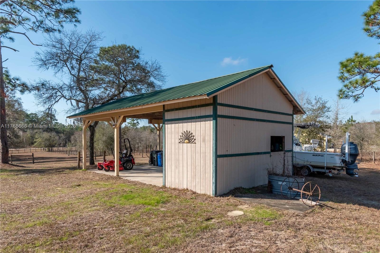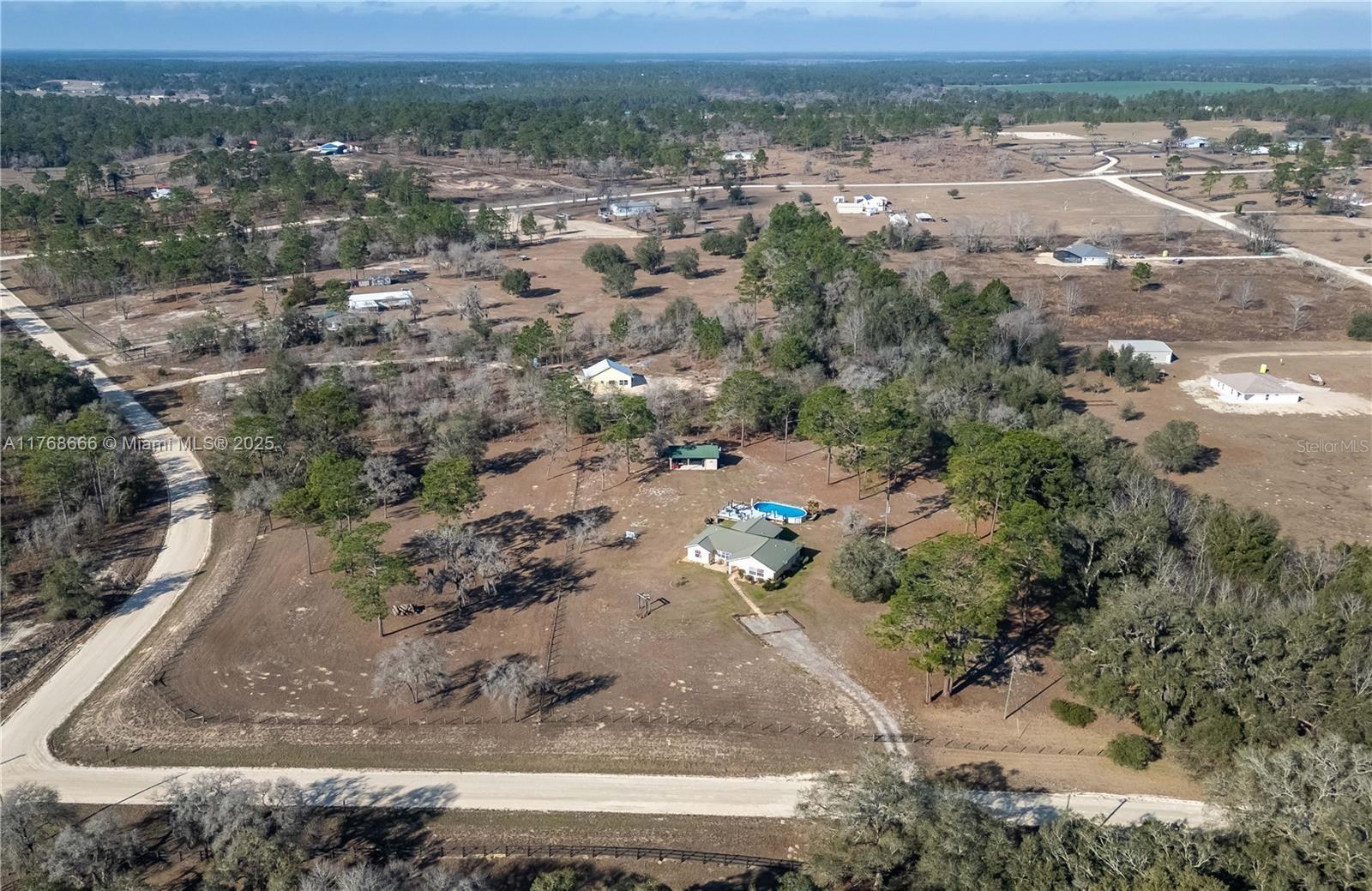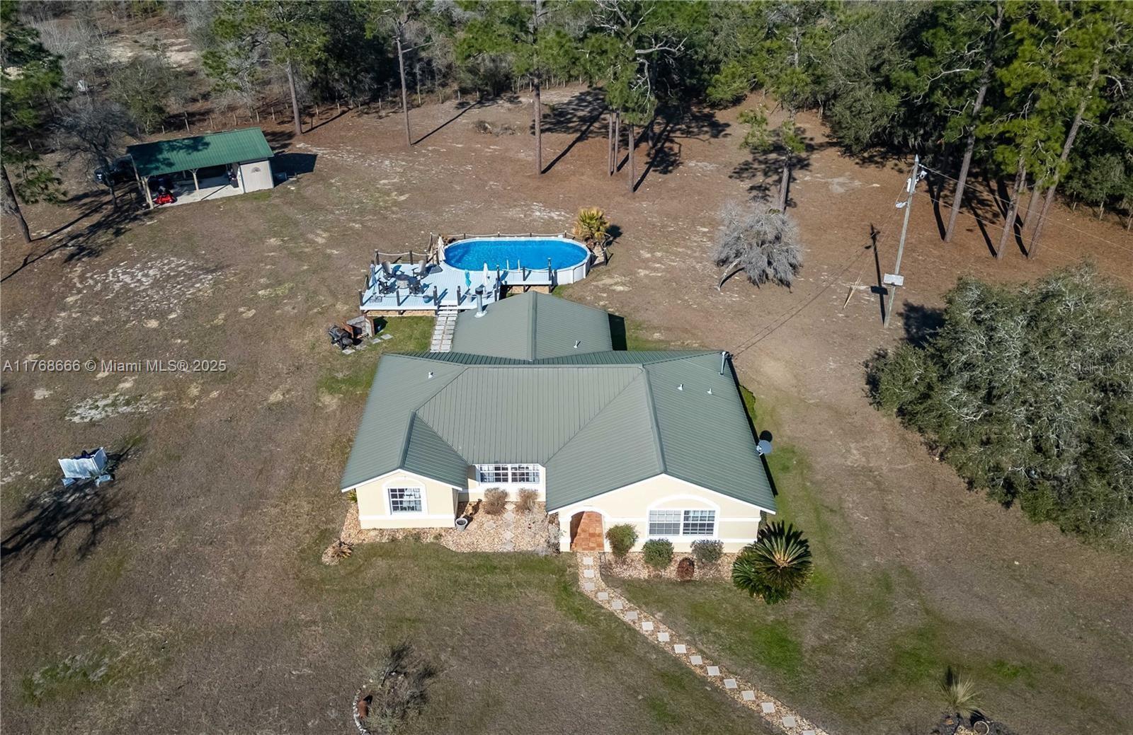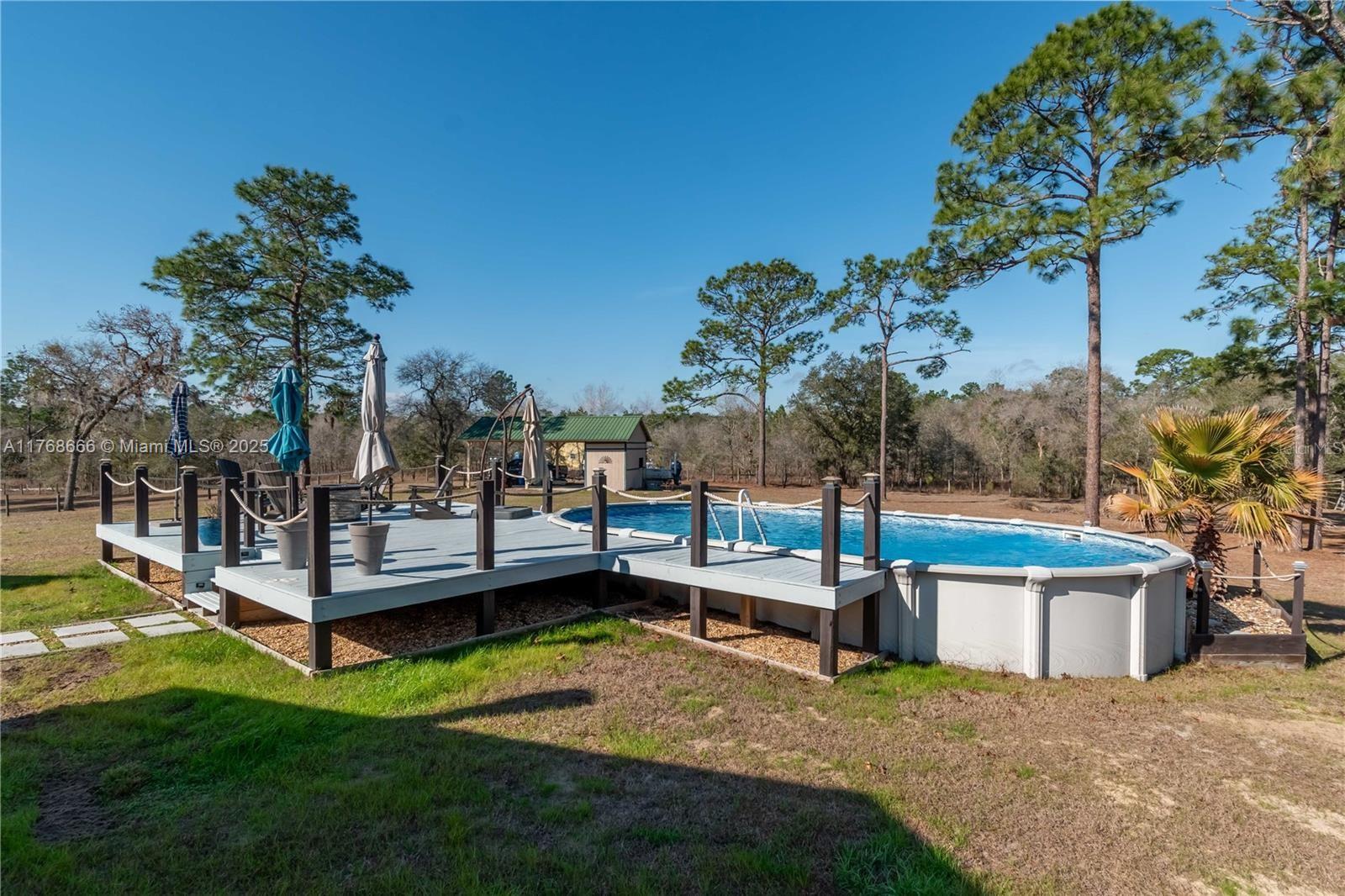 Fox Grove Farms neighborhood, this charming 3/2 home offers the perfect balance of privacy and rural charm—all while being just a short drive from Ocala, Gainesville, and Dunnellon! Set on a corner lot with 5.3 acres of fenced and gated land zoned Agricultural/Rural Residential, this property is well-suited for those seeking a peaceful retreat with the potential for a mini horse farm. Backyard provides a a cozy gas-burning fireplace, ground pool and a raised pool deck. Established on the property is a pole barn with a storage area/workshop– option to fully convert this estate into a functioning horse farm. Fox Grove Farms is a quiet equestrian-friendly neighborhood that is perfect for riding on or off property. Just minutes away for horseback riding, hiking and State Park.