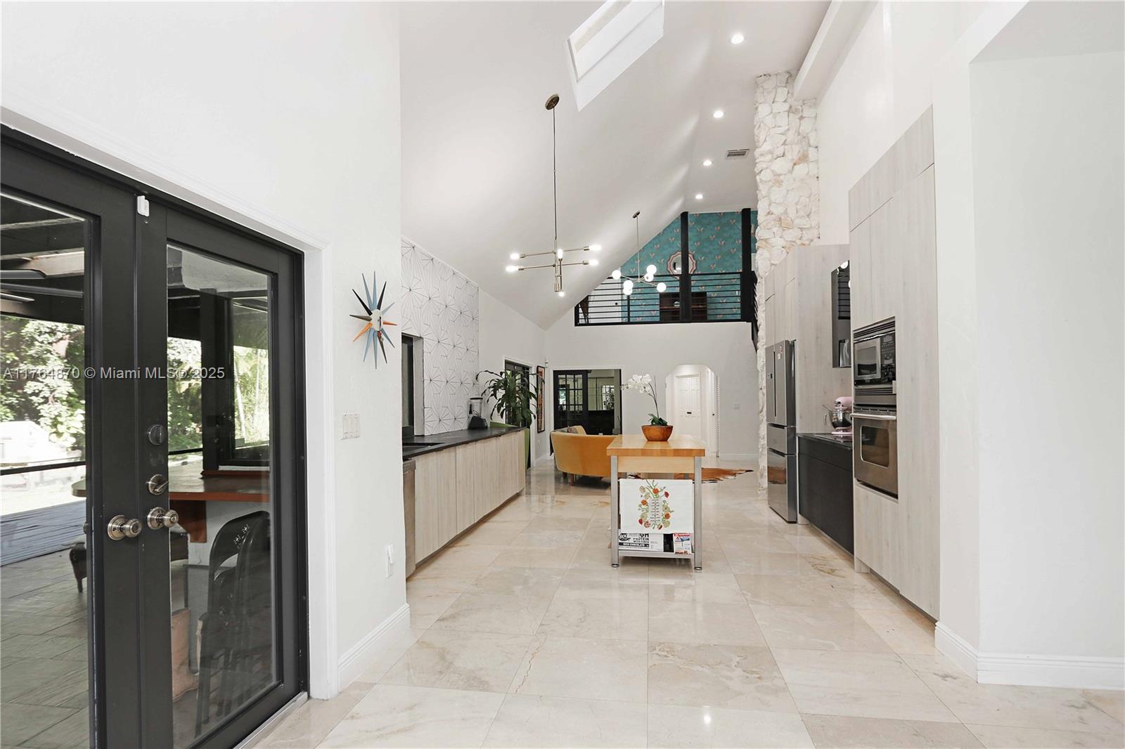 This stunning 5-bedroom, 4-bath home offers a perfect blend of modern upgrades and serene surroundings. Set on a beautifully landscaped lot with a pond and room for a pool, the property welcomes horses and offers plenty of space. The remodeled kitchen features granite countertops, gorgeous wood cabinetry, a center island, newer stainless steel appliances, tile backsplash, a double pantry, and a pass-through to the large screened-in patio overlooking the expansive backyard. The home boasts new floors throughout, remodeled bedrooms and baths, a double-sided wood-burning fireplace, and a newer roof. Enjoy the upstairs balcony, vaulted ceilings, a metal staircase, and skylights in the kitchen. Extra outdoor storage included. New drain field installed March 2020.