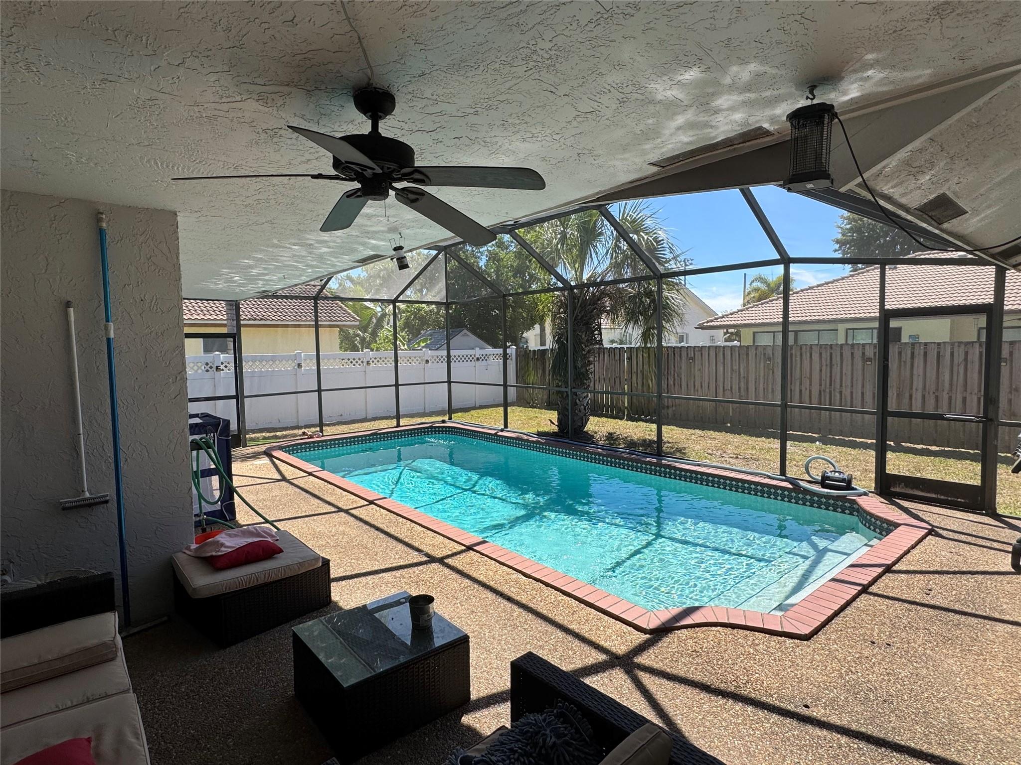 Highly desirable The Crossings in Coral Springs. one story home provides ample space for your family to grow and thrive. highly rated schools, this 4 bedroom, 2 bath, 2 Car Garage home features an expansive beautiful screened patio area with a large salt water pool & yard for your pets. Be greeted by an open concept layout, with vaulted ceilings, tile and laminate flooring through-out, a large ensuite owner’s bedroom with a shower and double vanity cabana bathroom. The kitchen opens up to the family room area with pool area views. Enjoy your completed fence backyard with full irrigation system gutters & screens. tile roof is from 2017 saltwater pool and newer pool pump, AC is only 5 years old. Don't miss this opportunity!