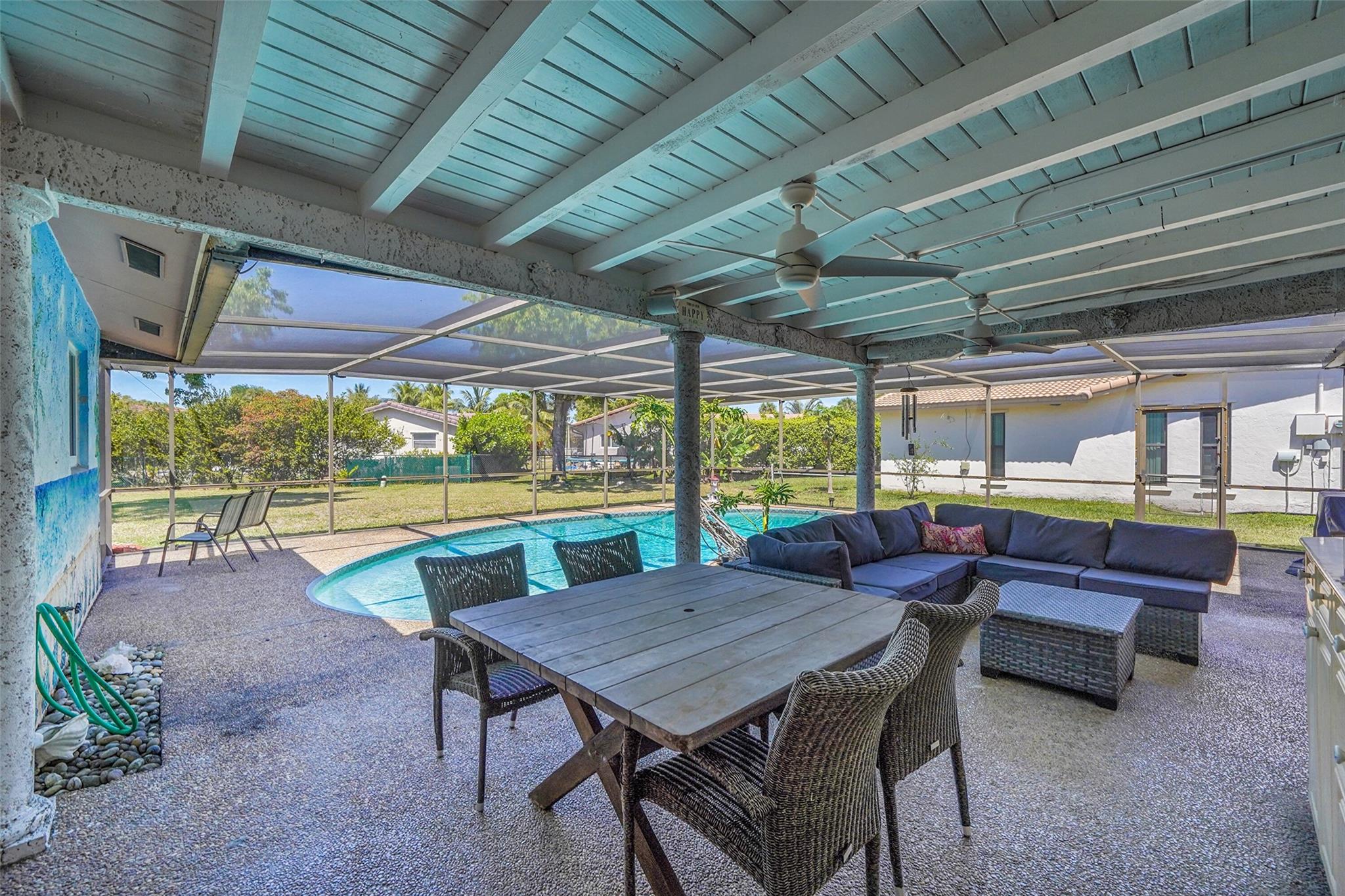 Beautiful 4-bedroom, 2-bath single-family home with a private pool, located on a spacious lot at the end of a canal—no HOA! Enjoy peace of mind with all impact windows and a 2021 flat roof. Waterproof laminate flooring in all bedrooms and newer blinds throughout add a modern touch. The pool pump was replaced in 2024, and the washer and dryer were updated in 2021. Laundry is conveniently located in the garage. This well-maintained home offers comfort, functionality, and outdoor space to relax or entertain. Don’t miss the opportunity to own this gem in a desirable, no-HOA community!
