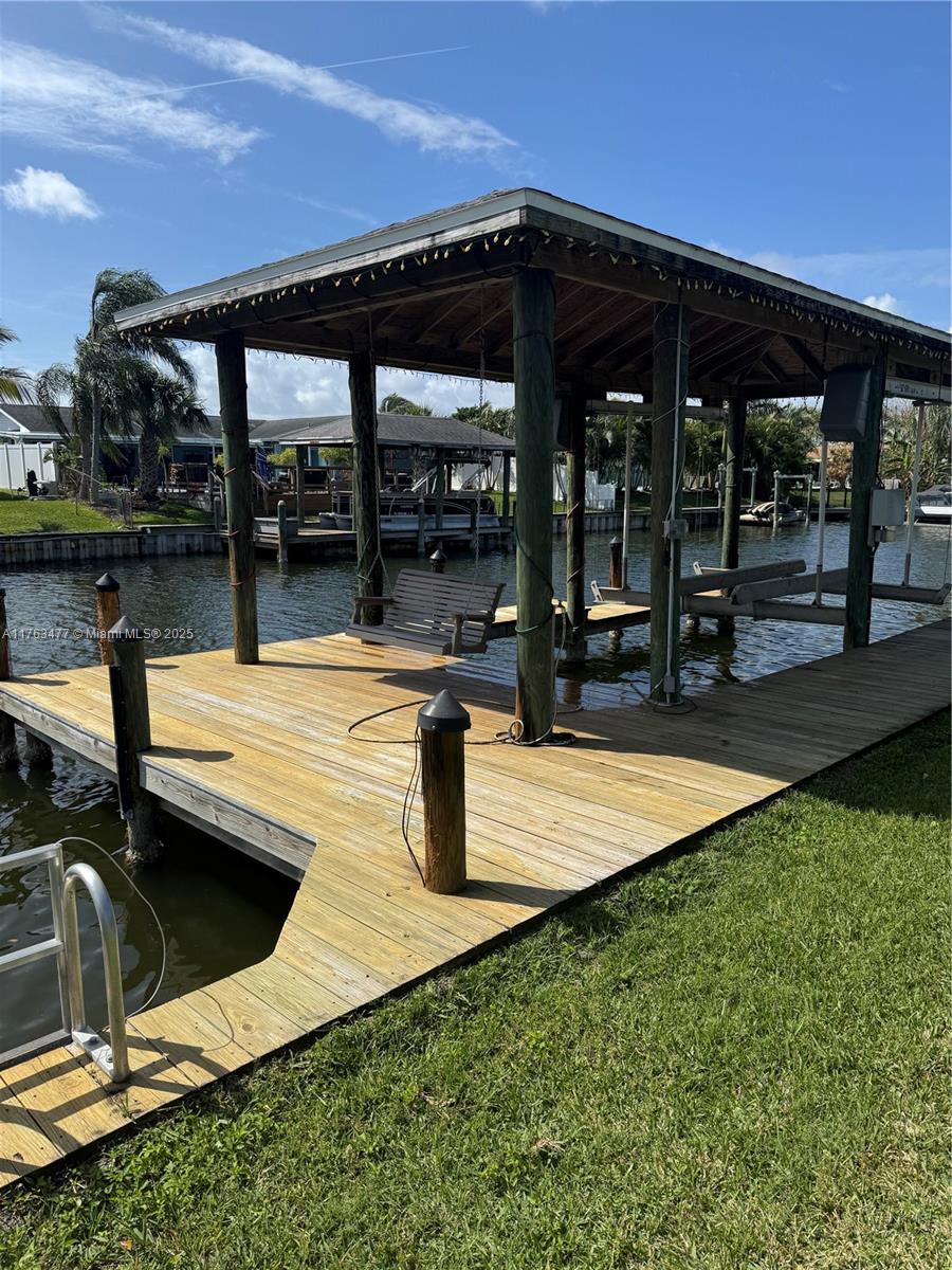 One of the most desirable communities on Merrit Island, this canal front home is a 3/2 plus office space. Vaulted ceilings in this 1987 built home with PVC piping thru out. New roof in 2018, New AC in 2019, New Covered Boat Lift and Decking in 2019. SS appliances, wood tile flooring in living area. 1848 sq feet plus an airconditioned enclosed porch provides an additional 700 sq feet. Owners suite has his and her W/I closets, dual vanities with Jacuzzi tub and sep glassed in shower. Large covered pergola with TV and Hot Tub overlooking the canal.