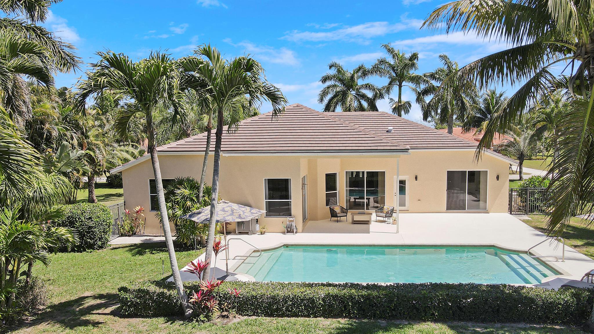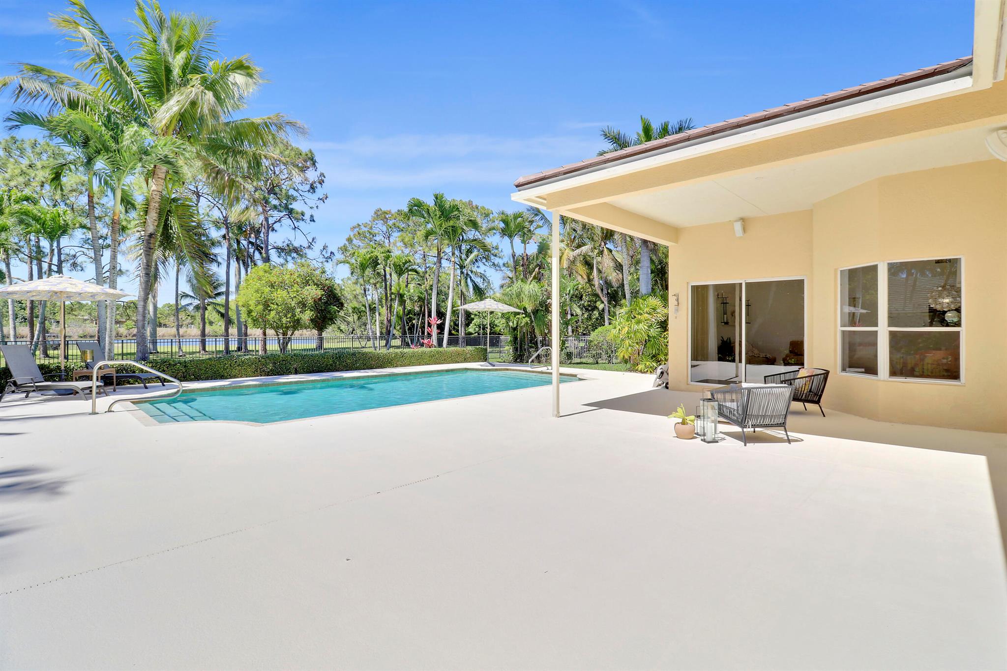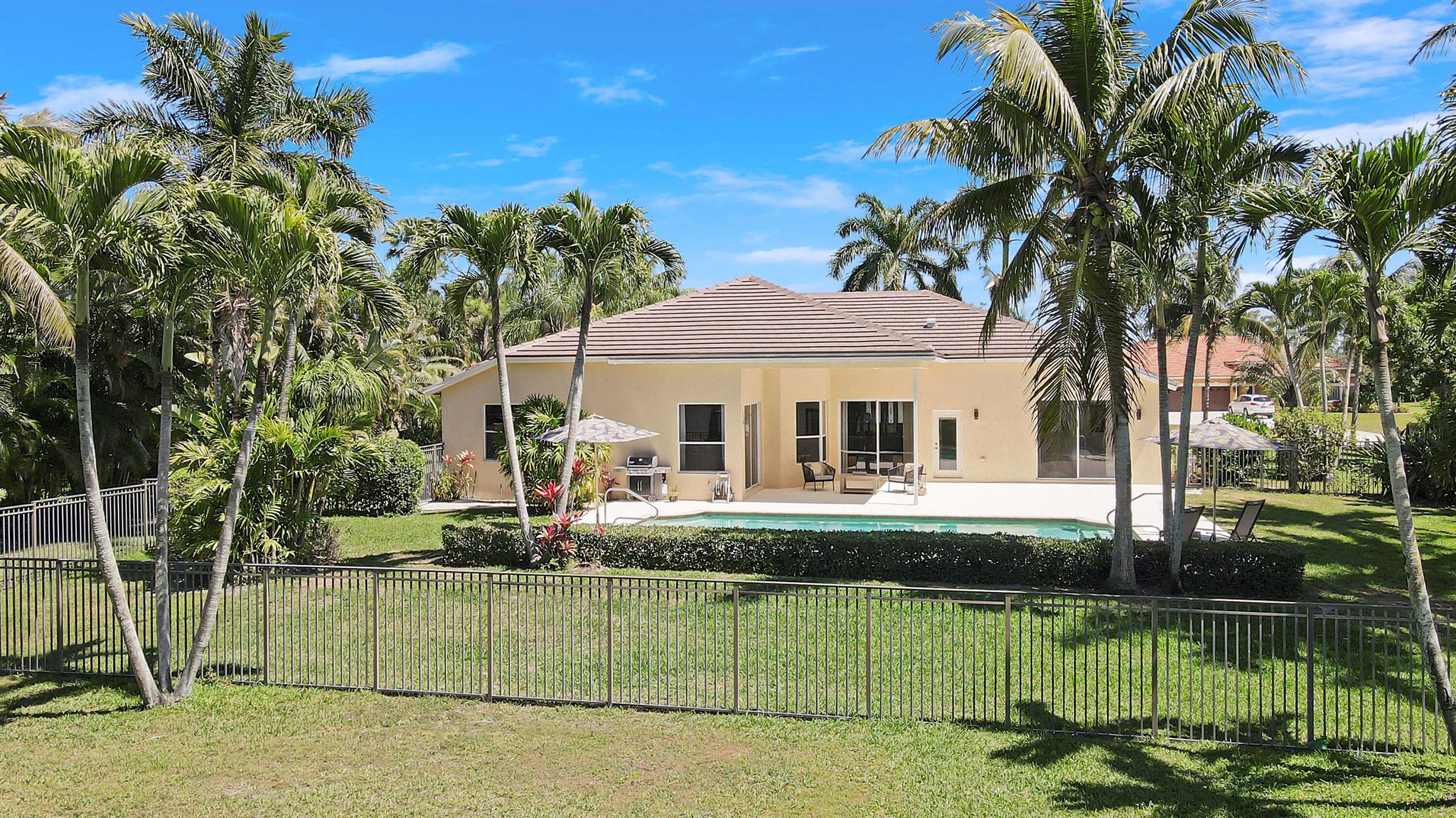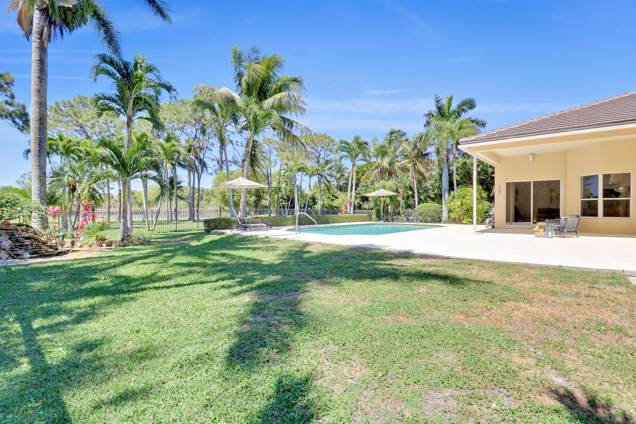 Welcome to Bay Hill Estates an unparalleled Golf Course community where convenience and luxury unite. You will not want to miss this spacious pool home with 4 bedrooms, 3 baths, and a 2-car garage w/ tesla charger in place. A 2024 flat tile roof and solid poured concrete block walls ensure this home is ready to weather any storm. The property itself is a landscape designed masterpiece with right at an acre of lush trees, vegetation, hardscapes, and a truly epic water feature, you will immediately feel like calling this home. The opportunity to cool off and relax in your private 18x36 saltwater pool, walk out back to cast a line and catch a sunset, as well as the close proximity to all that Palm Beach Gardens has to offer are just a few of the many reasons this is ''the one''