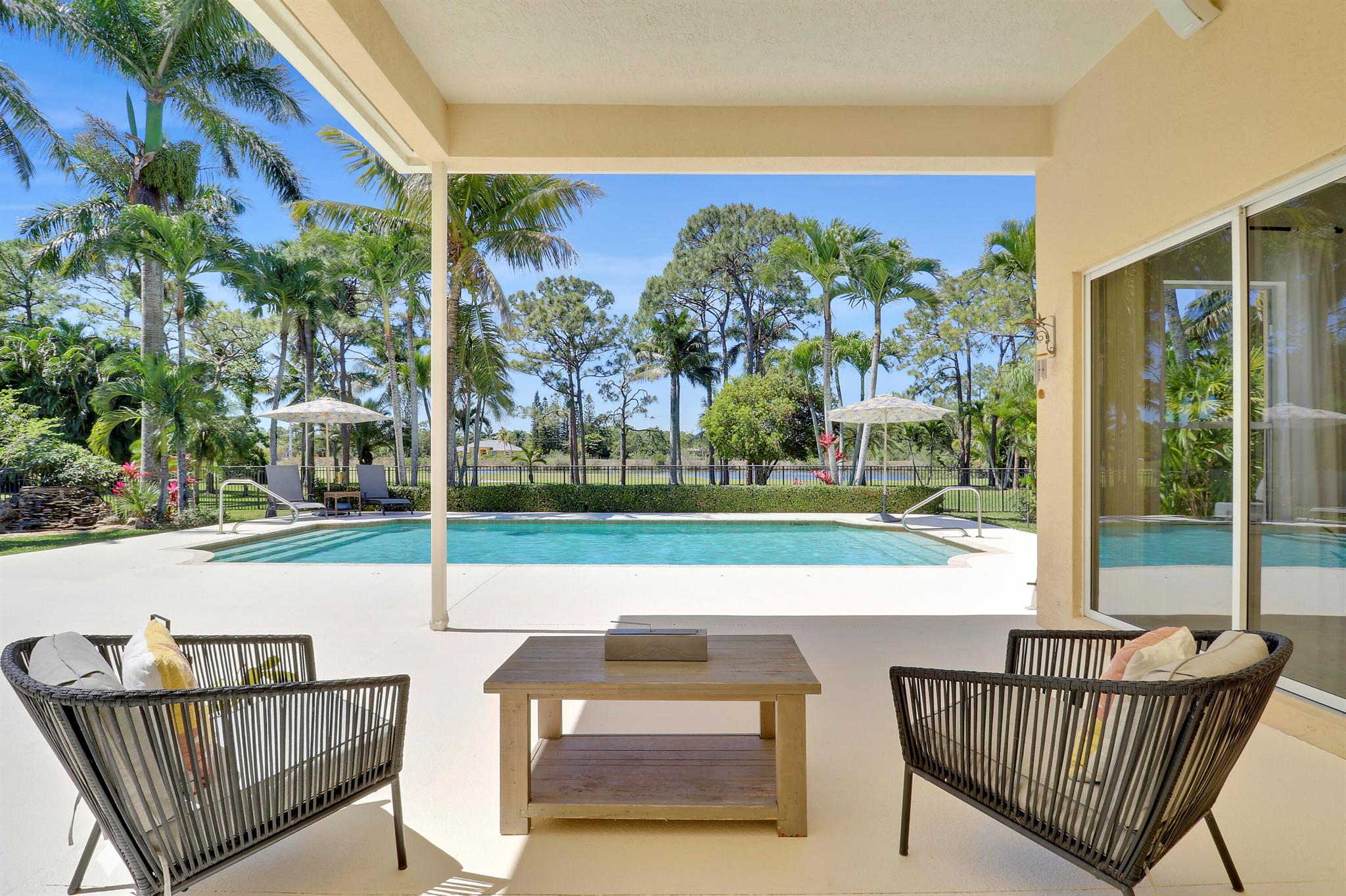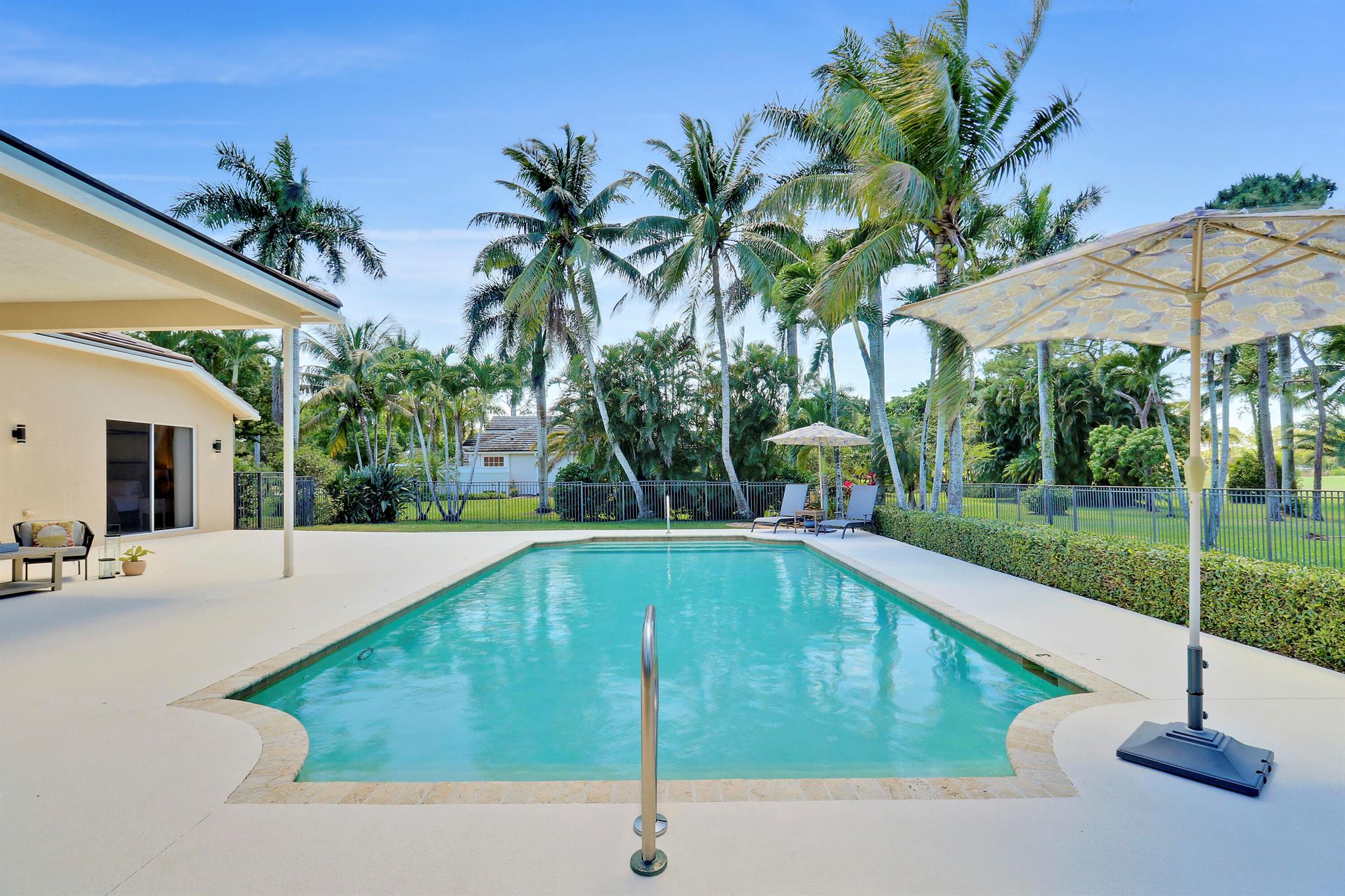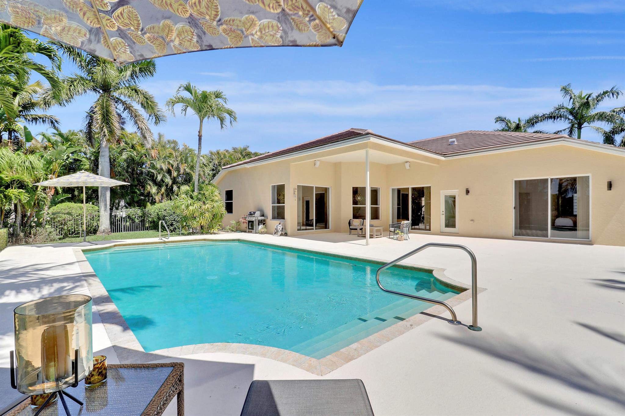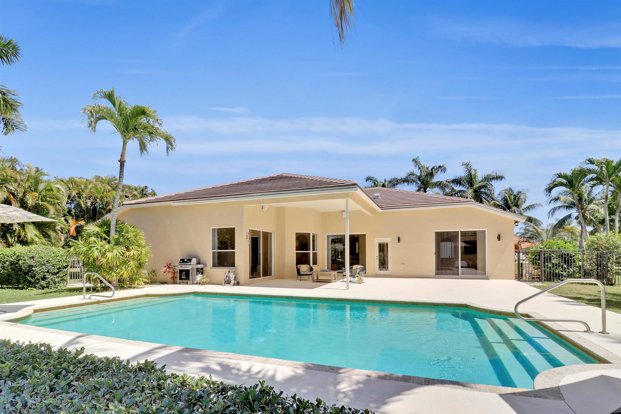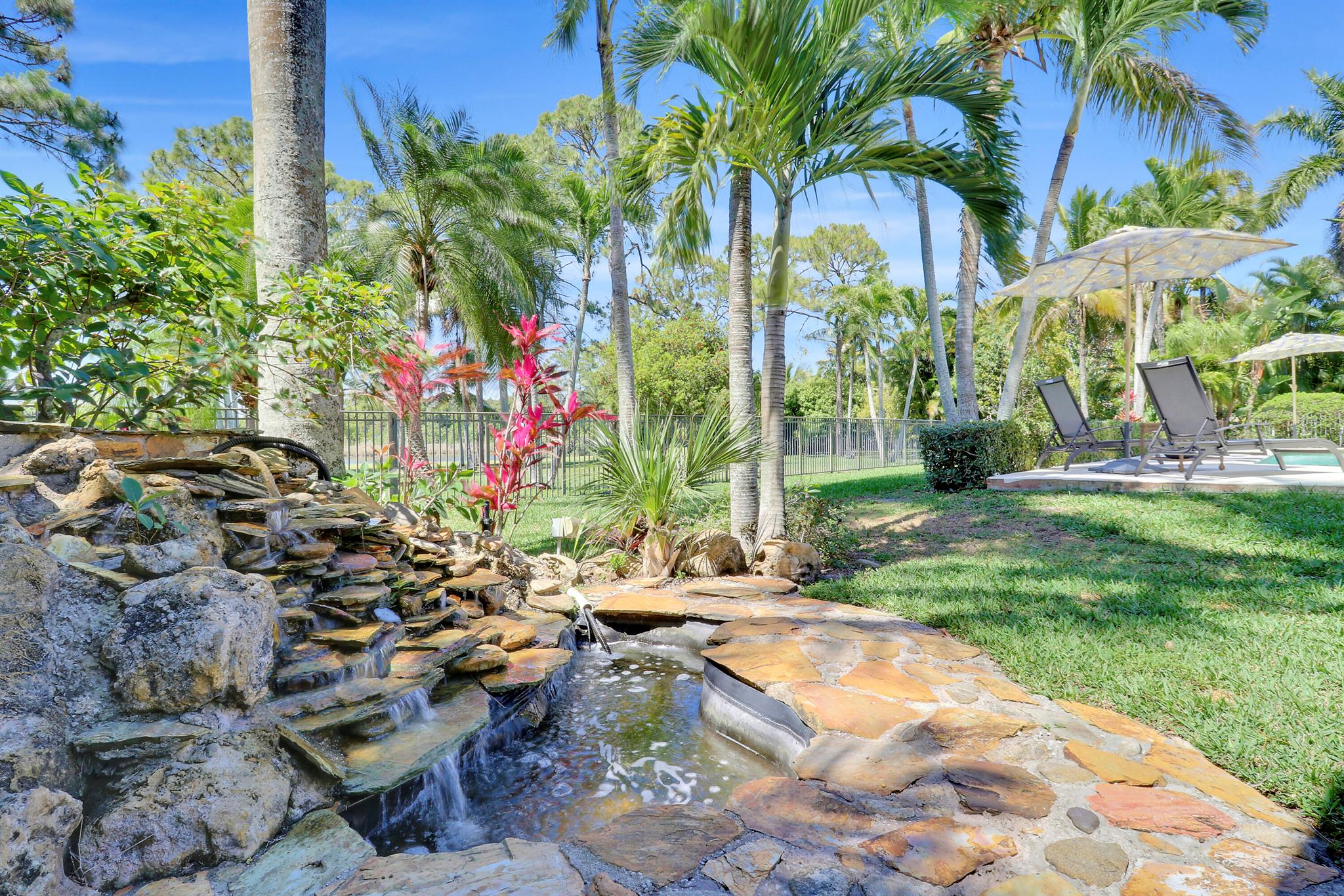 Welcome to Bay Hill Estates an unparalleled Golf Course community where convenience and luxury unite. You will not want to miss this spacious pool home with 4 bedrooms, 3 baths, and a 2-car garage w/ tesla charger in place. A 2024 flat tile roof and solid poured concrete block walls ensure this home is ready to weather any storm. The property itself is a landscape designed masterpiece with right at an acre of lush trees, vegetation, hardscapes, and a truly epic water feature, you will immediately feel like calling this home. The opportunity to cool off and relax in your private 18x36 saltwater pool, walk out back to cast a line and catch a sunset, as well as the close proximity to all that Palm Beach Gardens has to offer are just a few of the many reasons this is ''the one''
