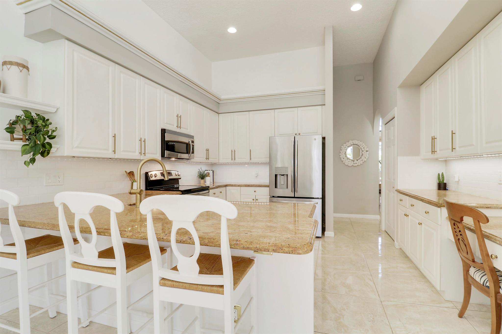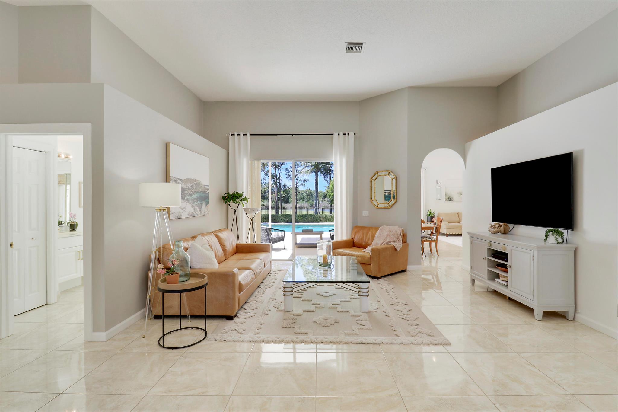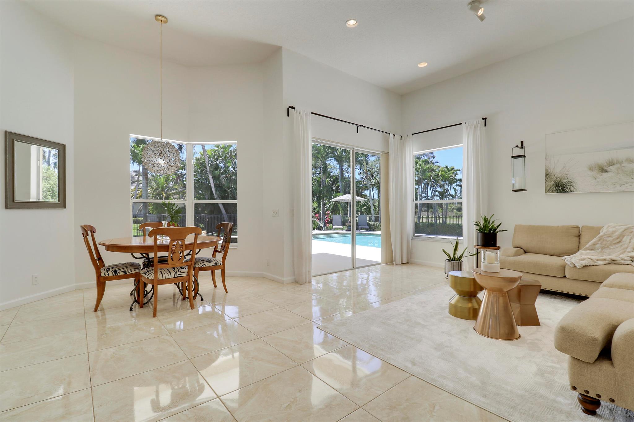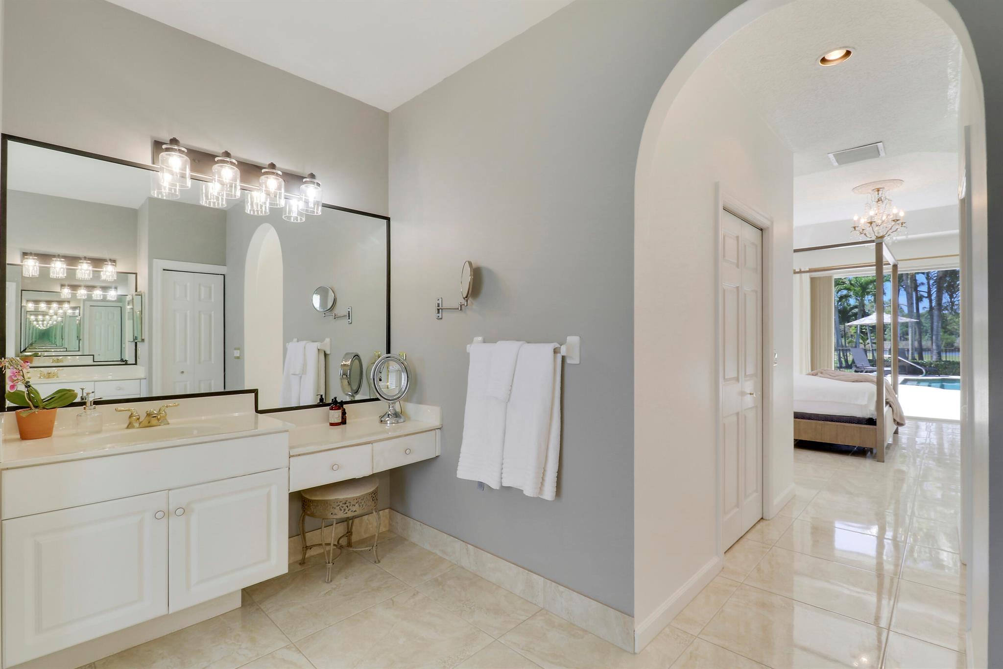 Welcome to Bay Hill Estates an unparalleled Golf Course community where convenience and luxury unite. You will not want to miss this spacious pool home with 4 bedrooms, 3 baths, and a 2-car garage w/ tesla charger in place. A 2024 flat tile roof and solid poured concrete block walls ensure this home is ready to weather any storm. The property itself is a landscape designed masterpiece with right at an acre of lush trees, vegetation, hardscapes, and a truly epic water feature, you will immediately feel like calling this home. The opportunity to cool off and relax in your private 18x36 saltwater pool, walk out back to cast a line and catch a sunset, as well as the close proximity to all that Palm Beach Gardens has to offer are just a few of the many reasons this is ''the one''