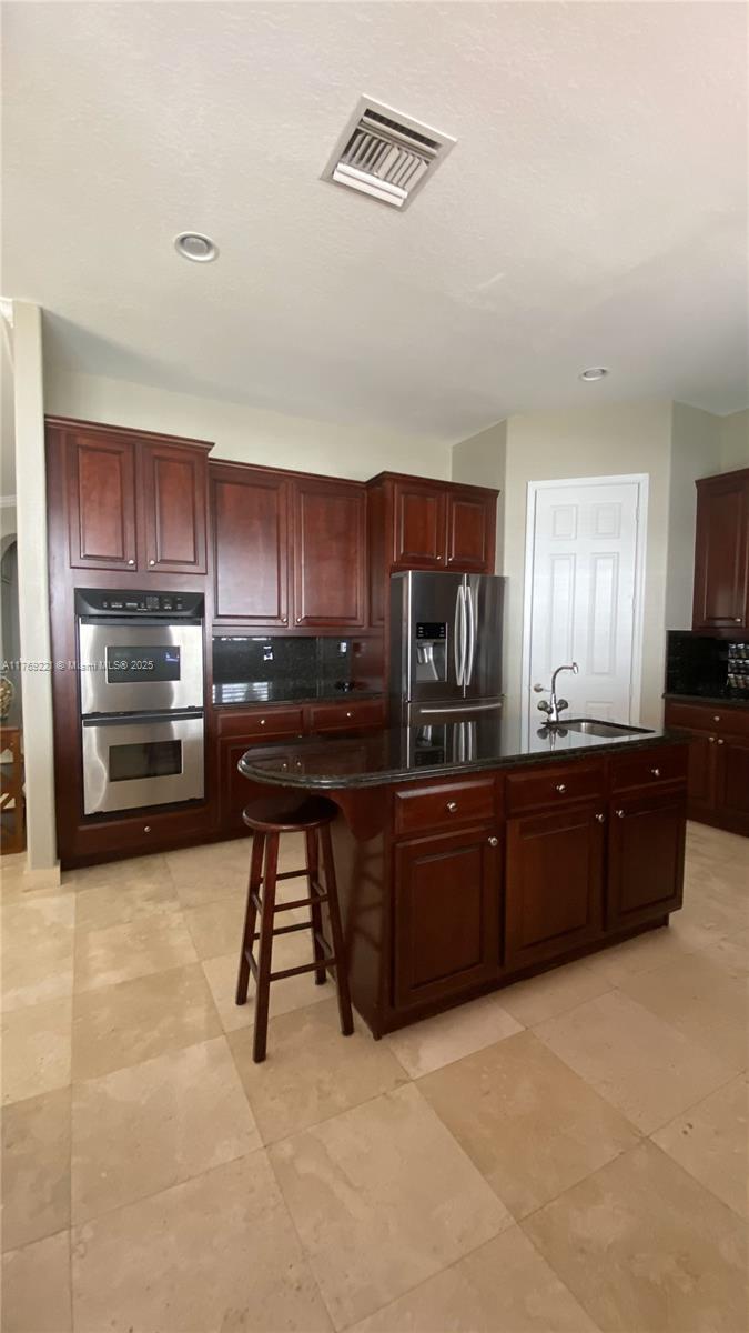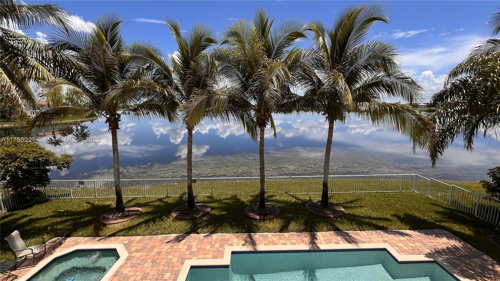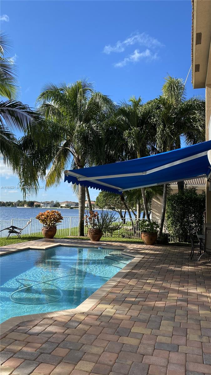 Have an amazing vacation feeling in this spectacular house located in Sunset Lakes community with a breathtaking lake view. The huge master suite has two walk-in closets, and it also has an impressive view of the lake. It also has a sitting area and a balcony overlooking the pool and the lake, perfect for having breakfast while enjoying the view of the sun rising on the lake in the morning. The bathroom in the master suite has “his” and “her” private toilets baths. French impact doors and accordion shutters. The roof was completed replaced in 2023 and the house exterior painted in 2024. Large remote-controlled electric powered Italian awning in pool area equipped with wind speed sensor for protection.3 car’s covered garage with automatic opening doors. Affordable HOA fee