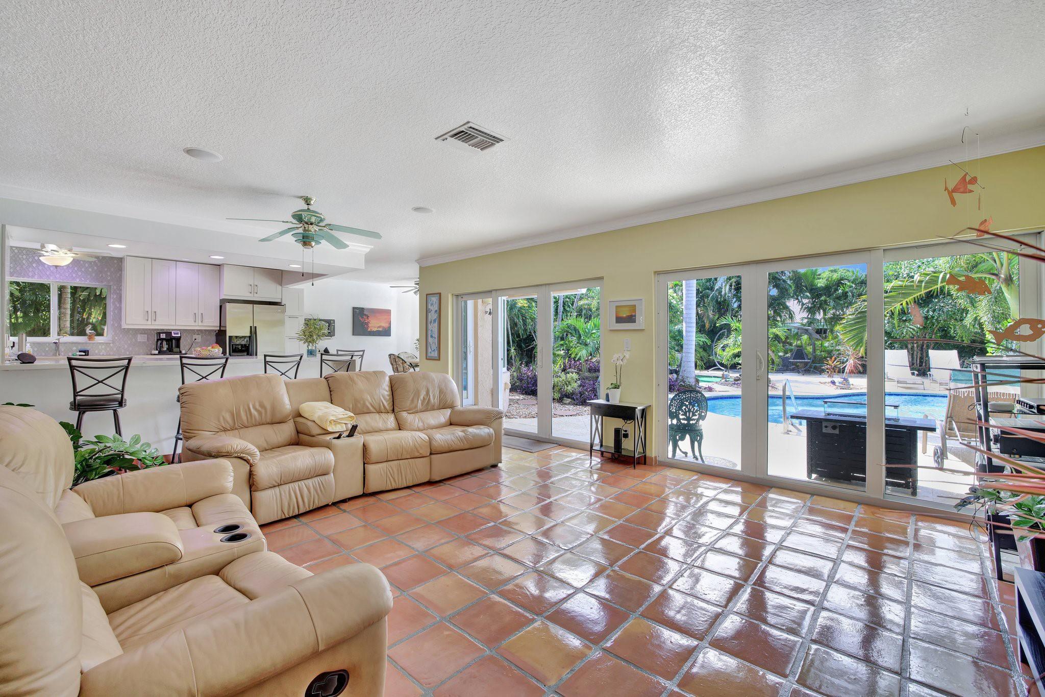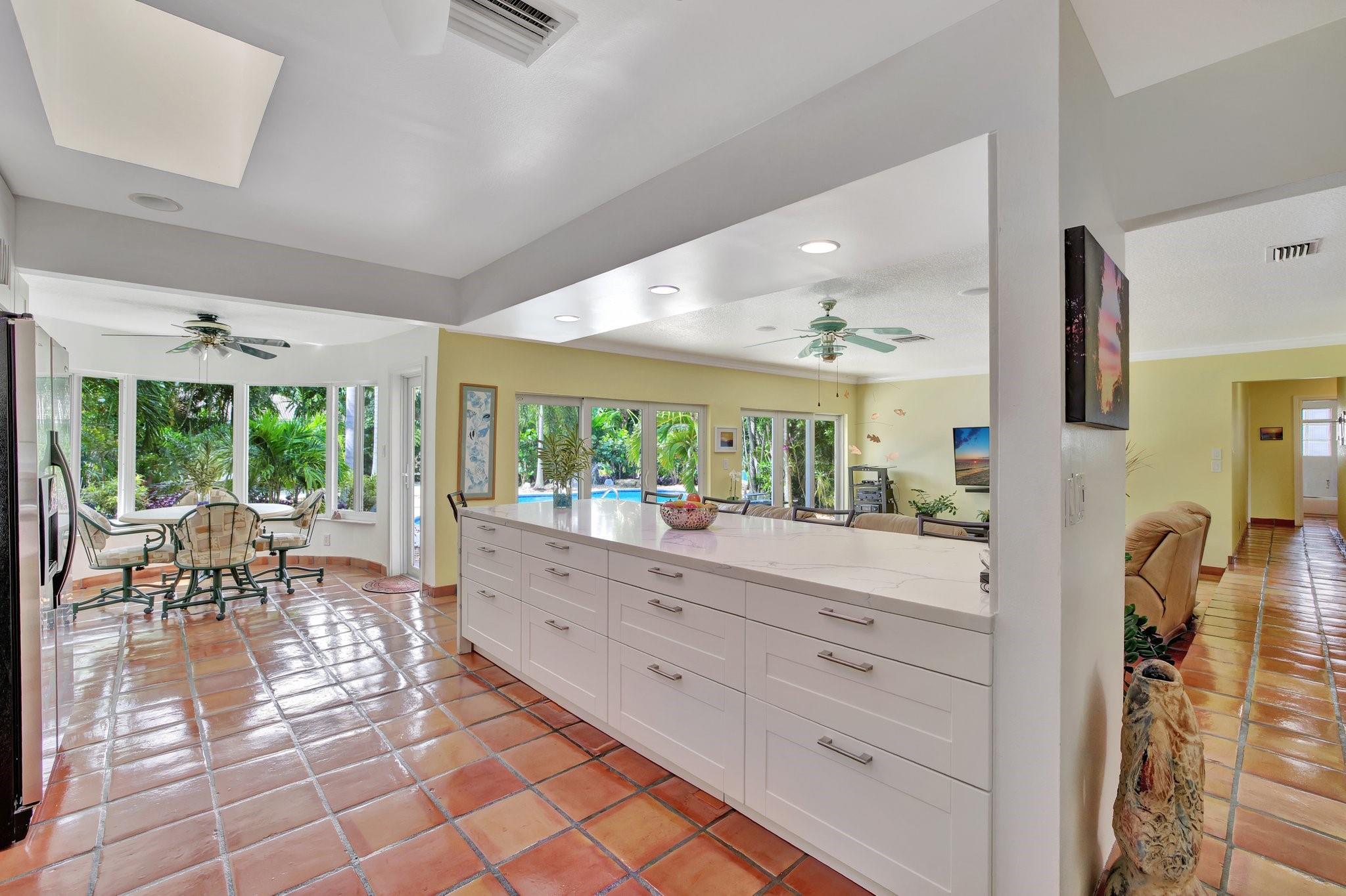 Welcome to Plantation Harbor, one of the most sought-after communities in Plantation! This stunning waterfront home sits on over 1/3 acre and boasts 4 beds, 2 baths, and a spacious open floor plan filled with natural light. The kitchen features waterfall Quartz counters, a double oven, and ample cabinetry, perfect for entertaining. Enjoy the oversized 18x38 pool with new diamond brite and fiber optic lighting, plus an outdoor kitchen for gatherings. With 151 feet of water frontage and two newer docks, it's a boater's paradise—just one fixed bridge to navigate (low tide max 14 ft, high tide max 11 ft). One of the largest water frontage in Plantation Harbor. No HOA! New Roof (2020), A/C, 2010, Water Heater 2014, & impact windows & doors. Don’t miss this must-see home!