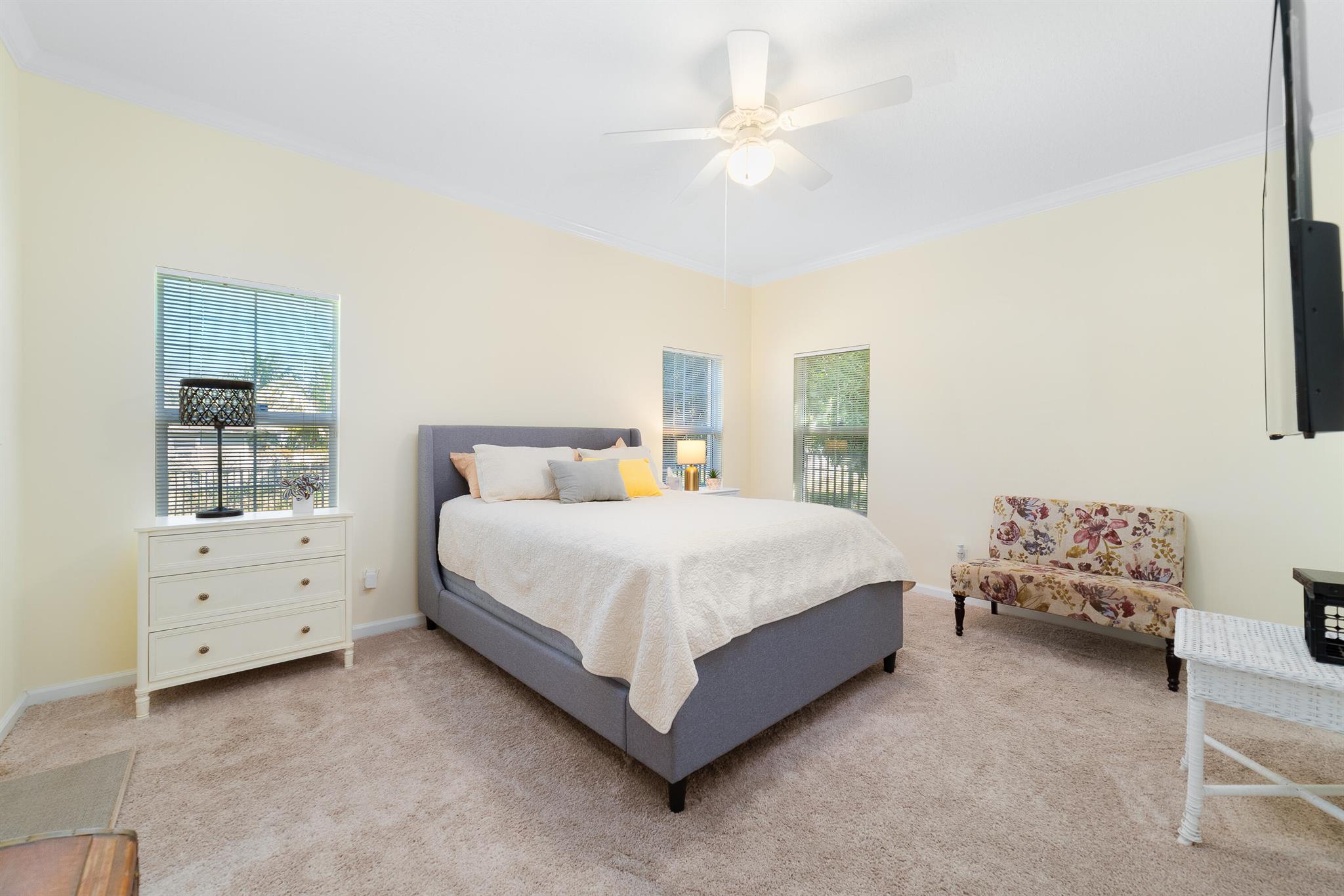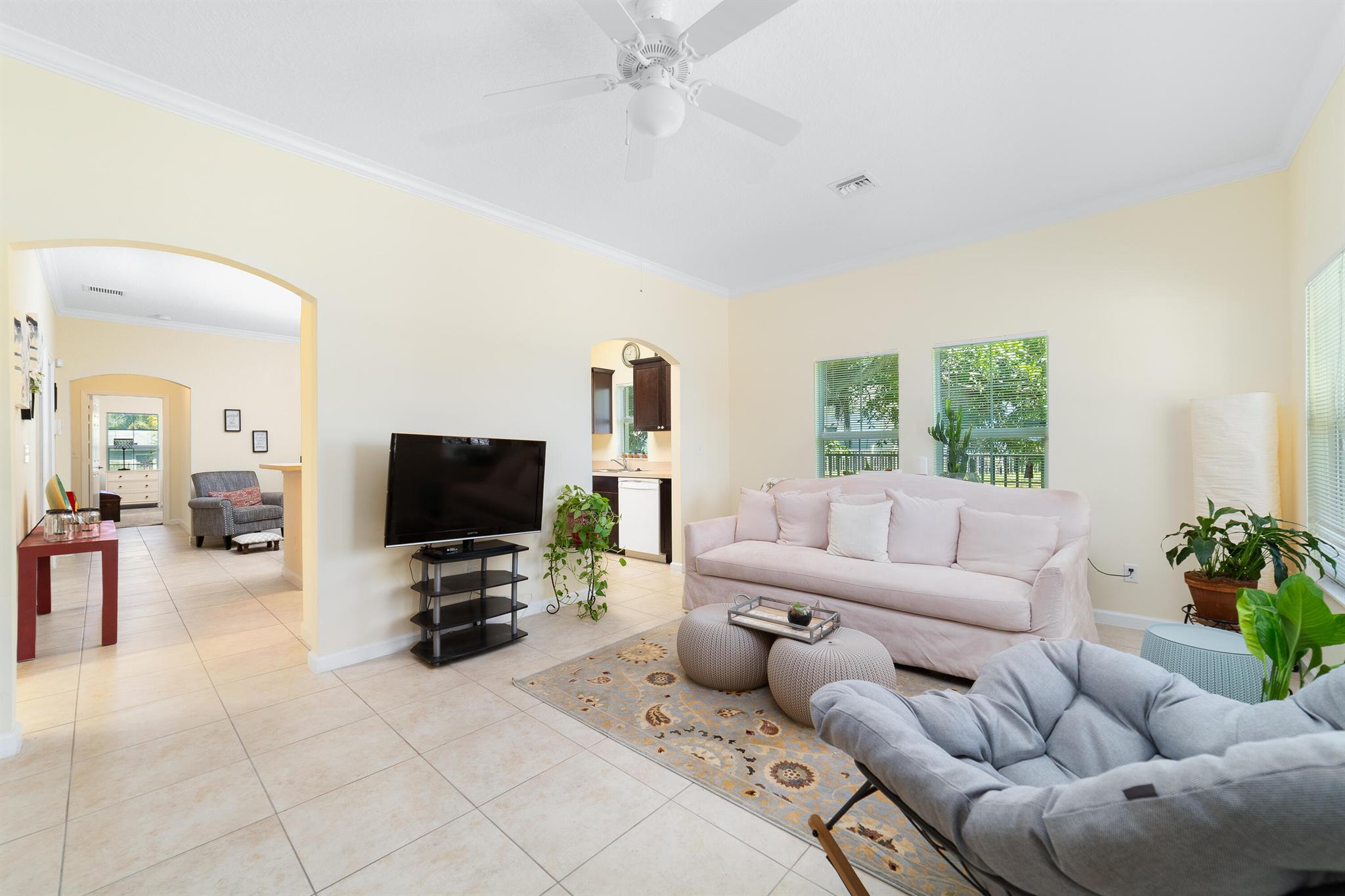 A beautifully maintained home built in 2014, this residence offers modern convenience and timeless appeal. Boasting three bedrooms and two full baths, the one-level layout is designed for effortless living. High ceilings enhance the sense of space, while tile flooring throughout the main areas ensures durability and easy maintenance, complemented by plush carpeting in the bedrooms for added comfort. The open-concept kitchen features a pantry and abundant counter space. The spacious primary bedroom provides ample room for a desk or cozy sitting area, offering versatility to suit your lifestyle. Just outside you'll find a fully fenced, expansive backyard with room for a pool, creating endless possibilities for outdoor enjoyment.