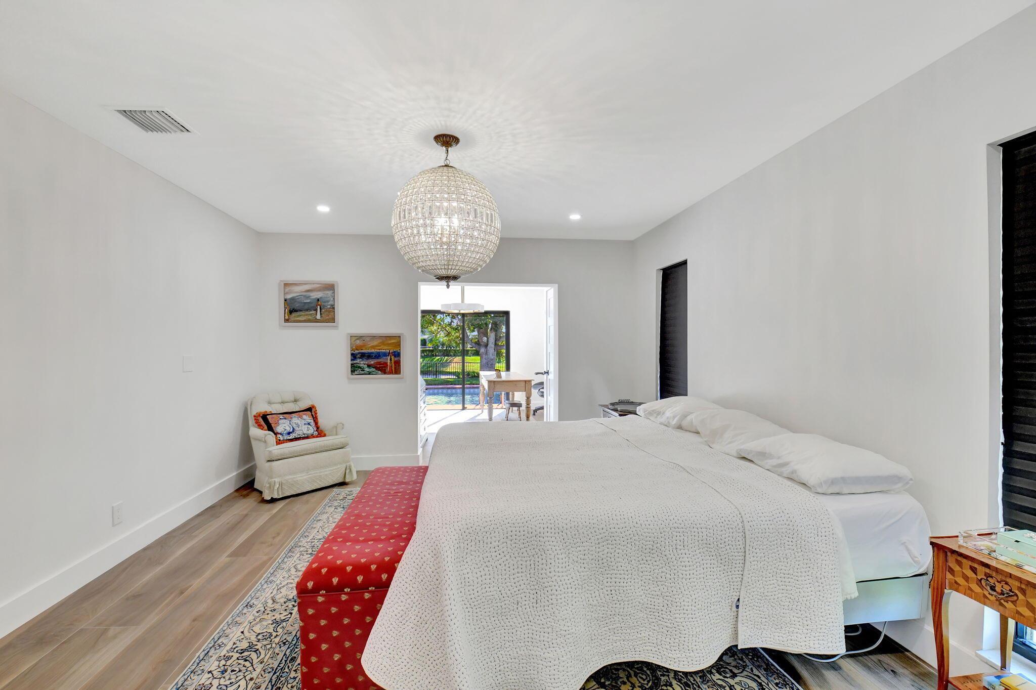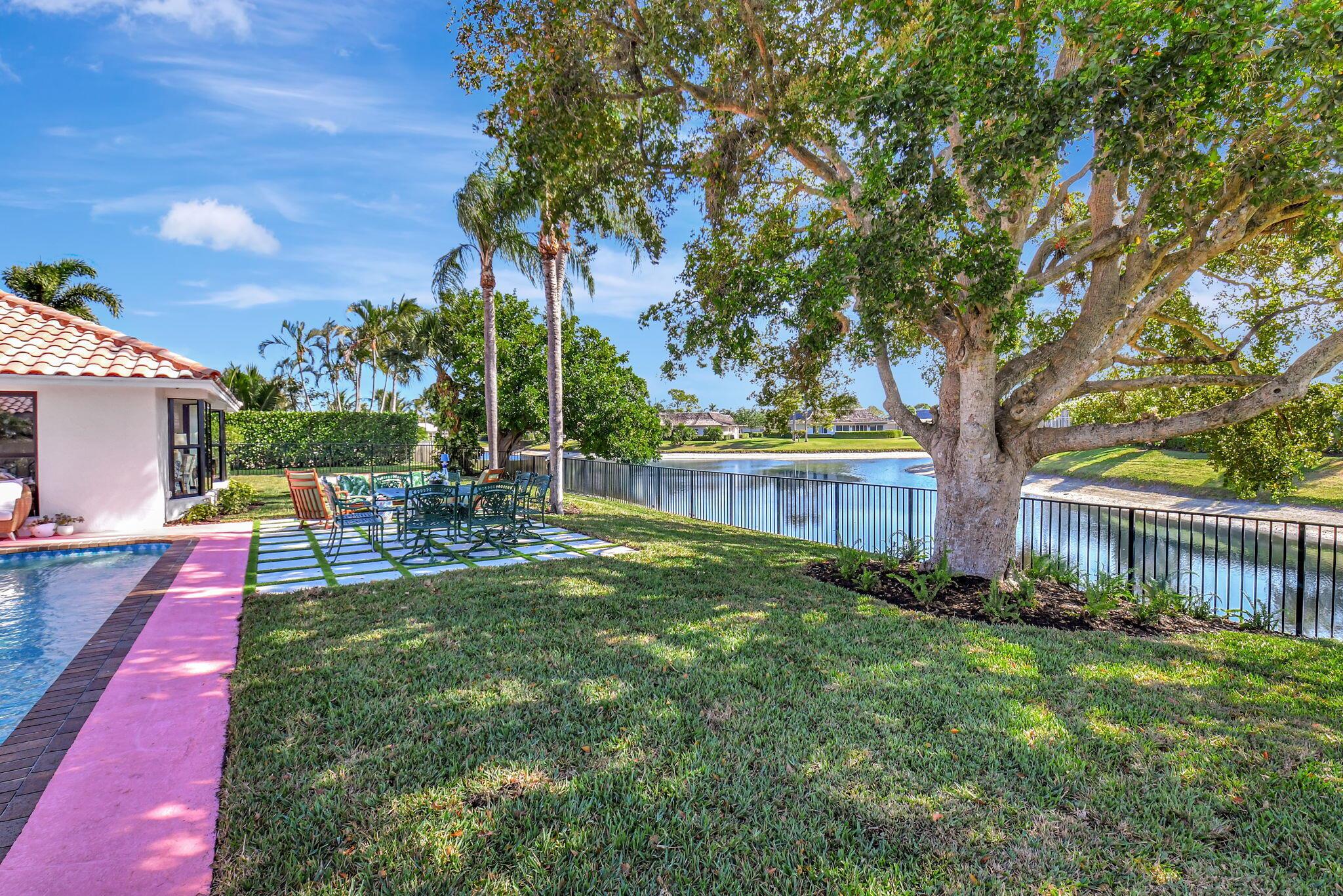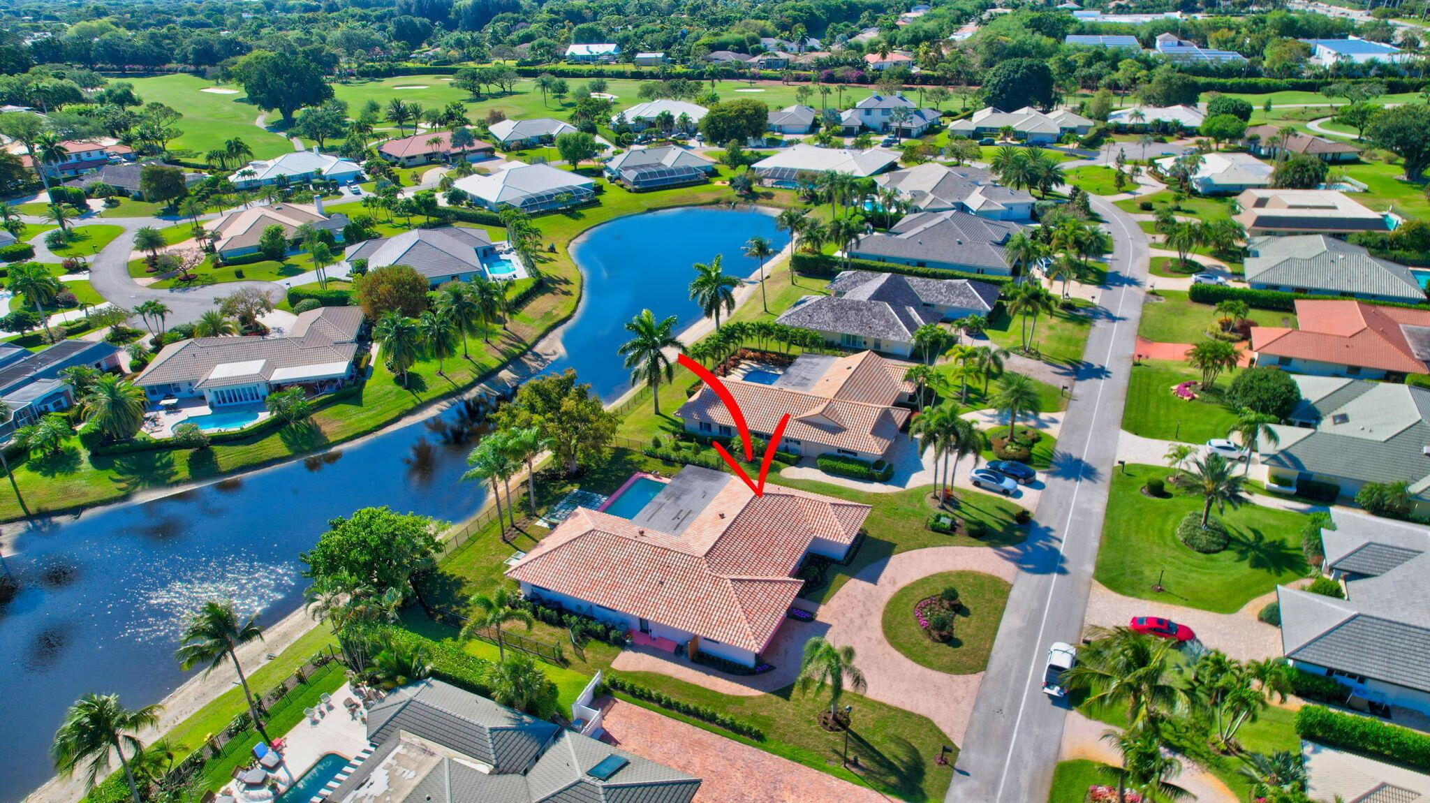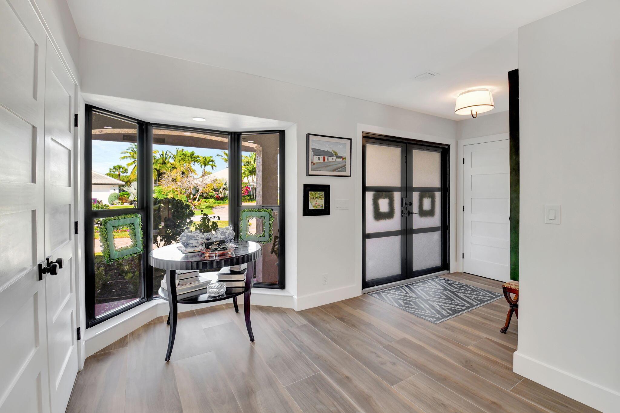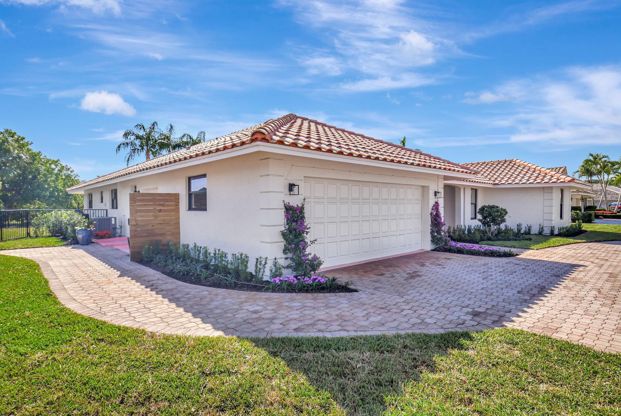 Nestled in the exclusive gated Delray Dunes Country Club, this stunning home perfectly balances natural light and the sparkle of the lake and pool, creating an ideal setting for indoor and outdoor living. This home is designed for those who appreciate both sophisticated style and everyday comfort with a Manhattan/Mediterranean vibe. From the large circular driveway step inside through an oversized entry door and be greeted by new wood look tile flooring, bay windows and large glass sliders all looking out to the backyard sanctuary. The split bedroom plan features an oversized master wing with a large ensuite bath and attached office/parlor. The open kitchen and family room all with great views of the water. The 3 other guest rooms, 2 more full baths plus a large interior laundry make for