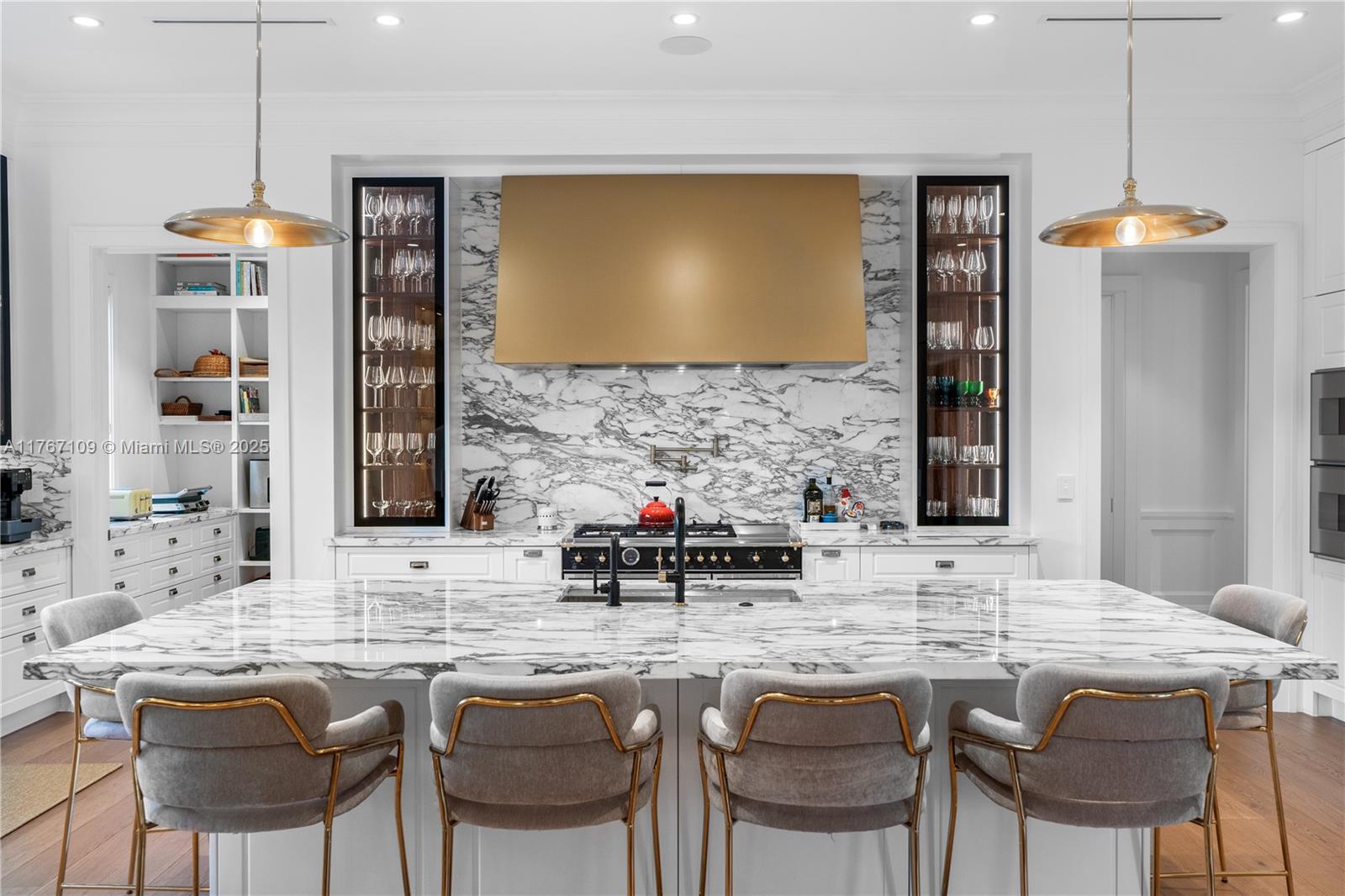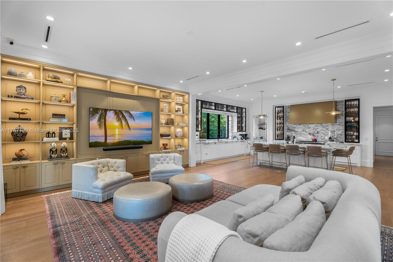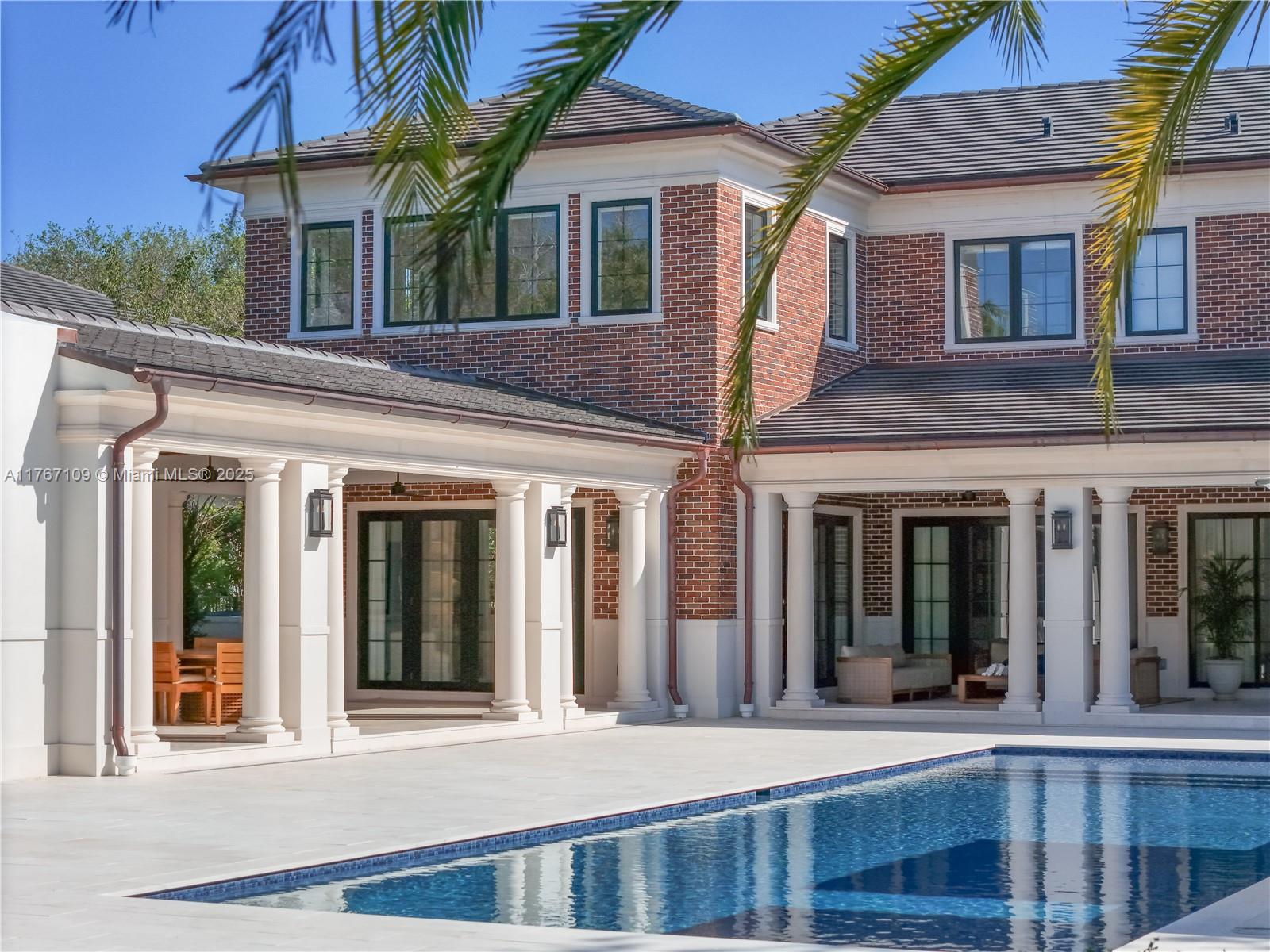 Literally the best custom home EVER built in Pinecrest! A sprawling estates of Connecticut inspired transitional Georgian Architecture. Spanning over 9,878 total square feet, this 2023 masterpiece offers 7 bedrooms, 8.5 baths, and a level of craftsmanship very rarely seen. Designed for one who will not compromise on anything but exceptional quality. Architectural features include precast columns, crowns, trims, moldings & a unique red brick facade. Nestled on nearly an acre, this home boasts high ceilings, custom millwork, rare marble walls, designer wallpapers & hardwood floors. A gourmet chef’s kitchen features a Bertazzoni range, Gaggenau fridge/freezer, and steam oven. Outdoor entertainment includes a summer kitchen, sauna, and a heated saltwater pool with a jacuzzi.