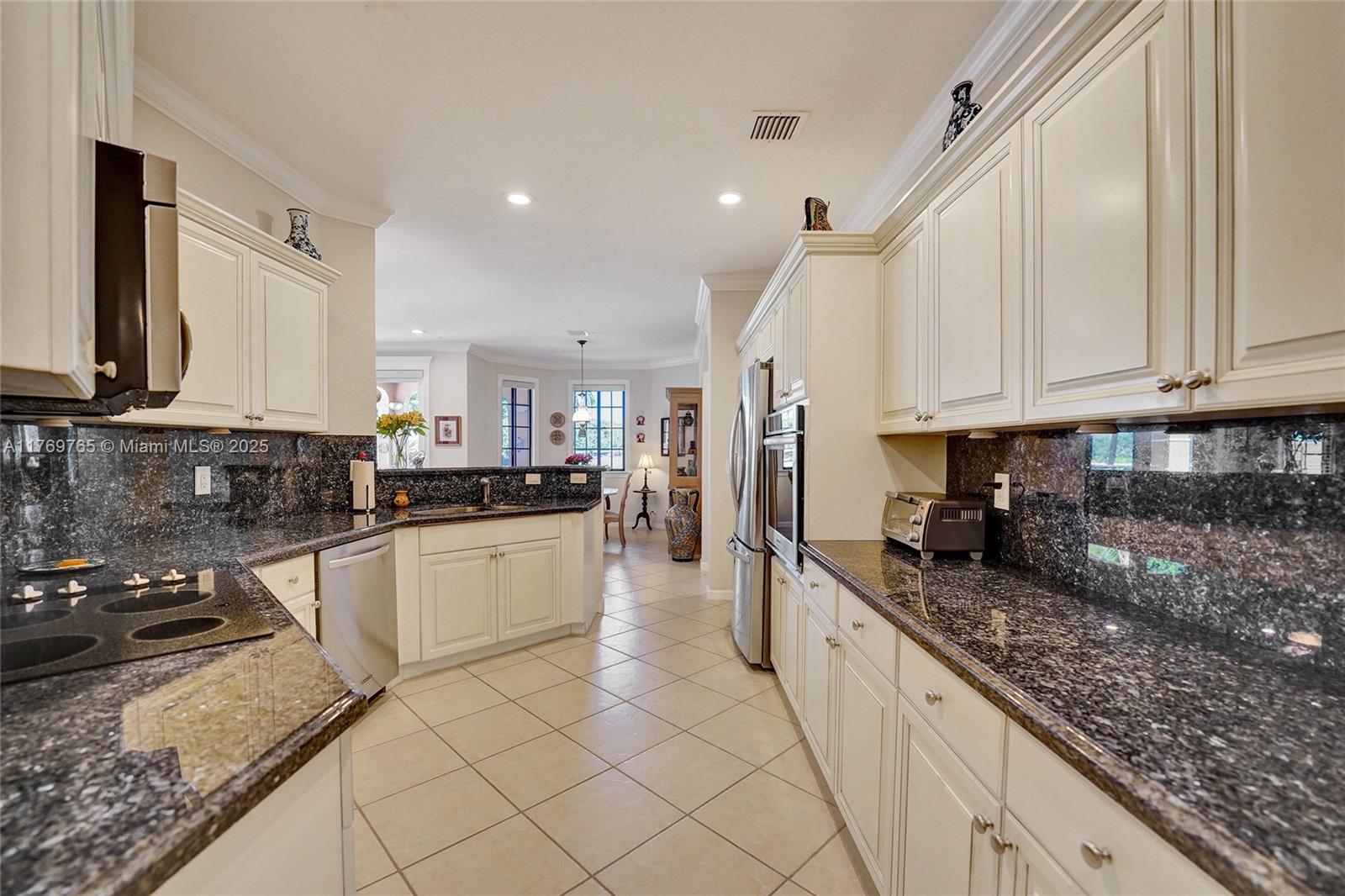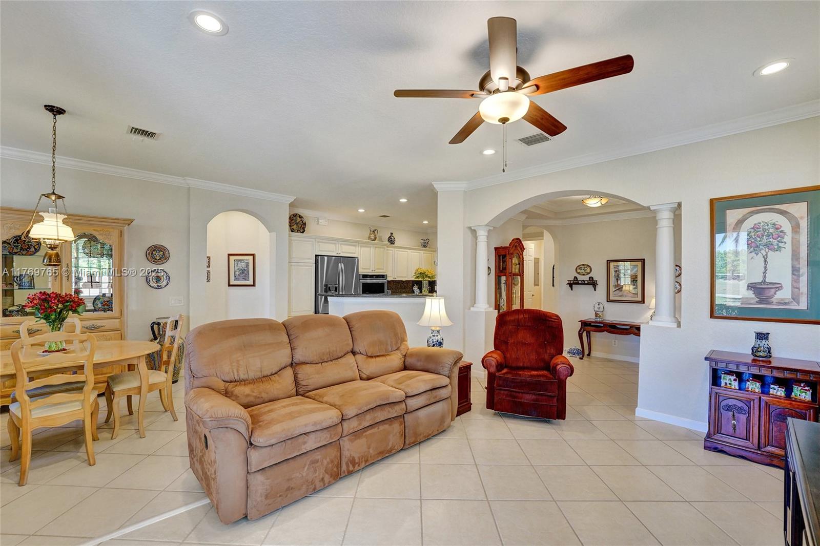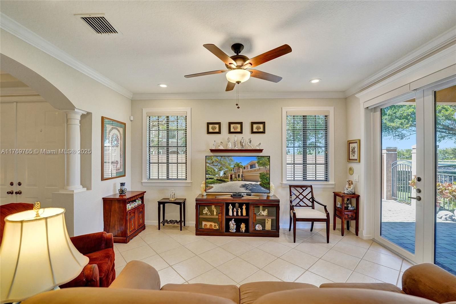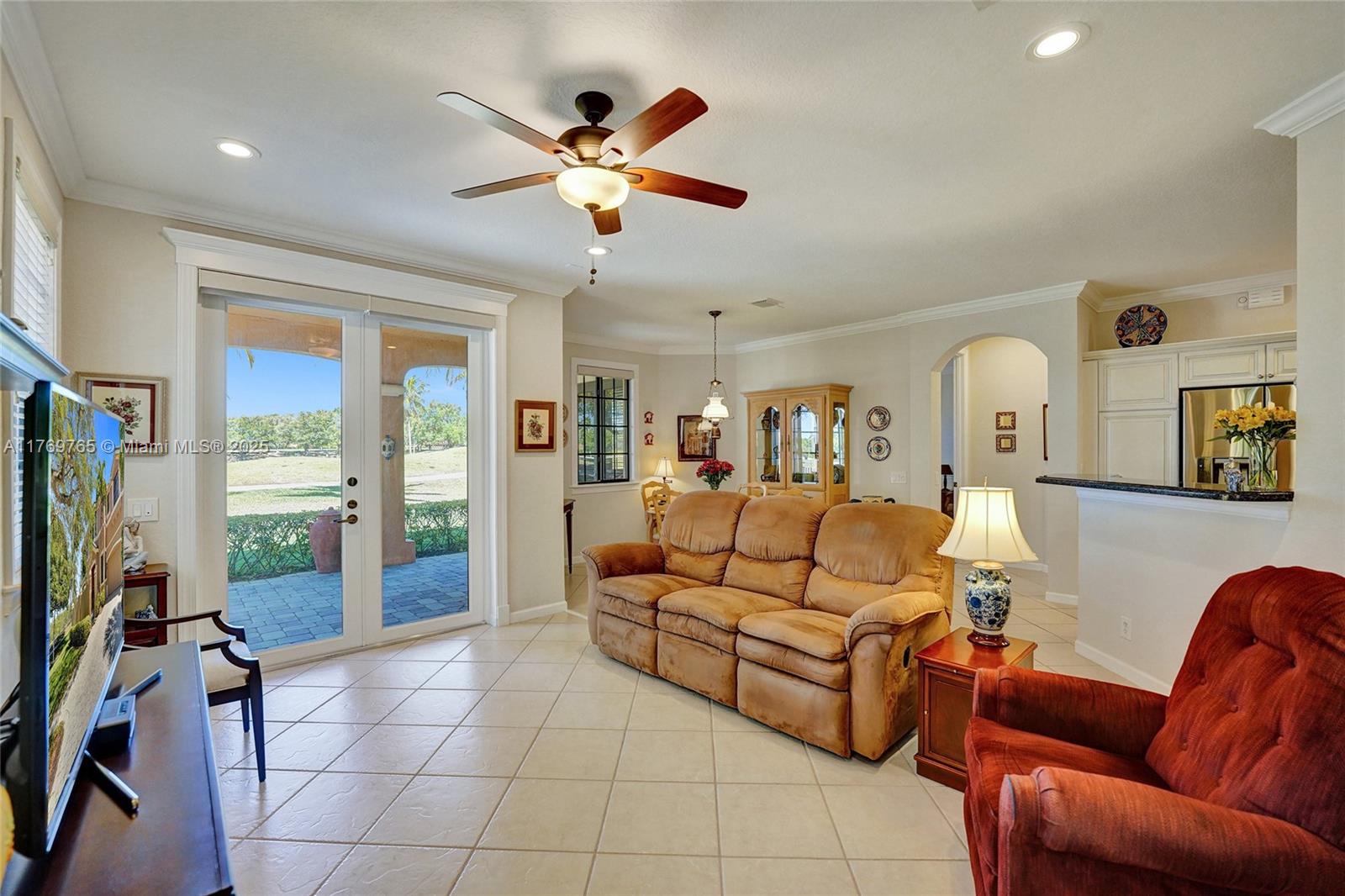 Stunning, unobstructed panoramic golf and water views of The Club at Weston Hills Players Course, this pristine 3-bedroom, 2-bath fisrt-floor home is a rare find! Situated in a cul-de-sac, it offers enormous space between neighbors and a significantly larger driveway. Inside, enjoy crown molding, stainless steel appliances, an instant water heater for the entire home, impact windows with upgraded French doors, a side-entry 2-car garage, newer A/C, and a chef-inspired kitchen. Plus, it's walking distance to the pool, driving range, and clubhouse in this maintenance-free community. Don’t miss this golden opportunity!
