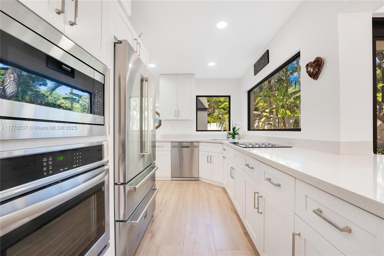 Welcome to this stunning turnkey property in the heart of Coconut Grove. This beautiful home features a spacious layout with ample natural light & plenty of areas for family gatherings including a private Pool, a spacious lush yard, as well as separate family & living room areas. Enjoy the privacy of the large primary bedroom with its large ensuite bath, & walk in closet. Updated in 2021: New roof, kitchen & baths, 3 A/C’s & duct work, all copper & PVC plumbing (no cast iron/ galvanized), impact windows, artificial grass, and new septic tank & drain field in 2024. Bike, run, or walk the Commodore trail which takes you through Downtown Coconut Grove- A hot spot of restaurants, Shops and hotels. Property has two Driveways: Drive straight through to a quiet side street. Not a flood zone (X).