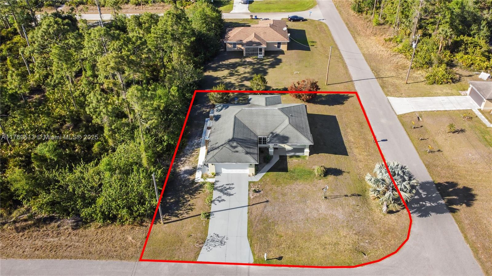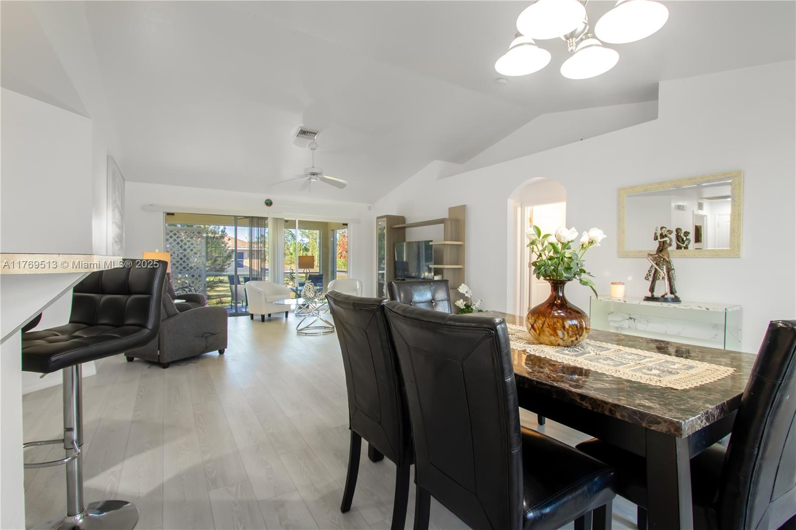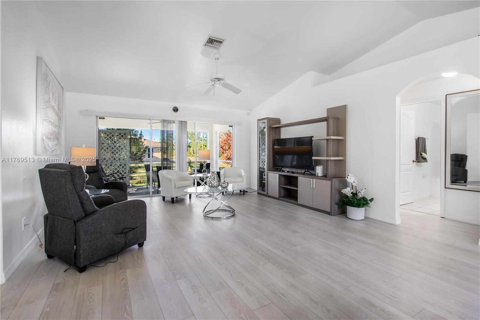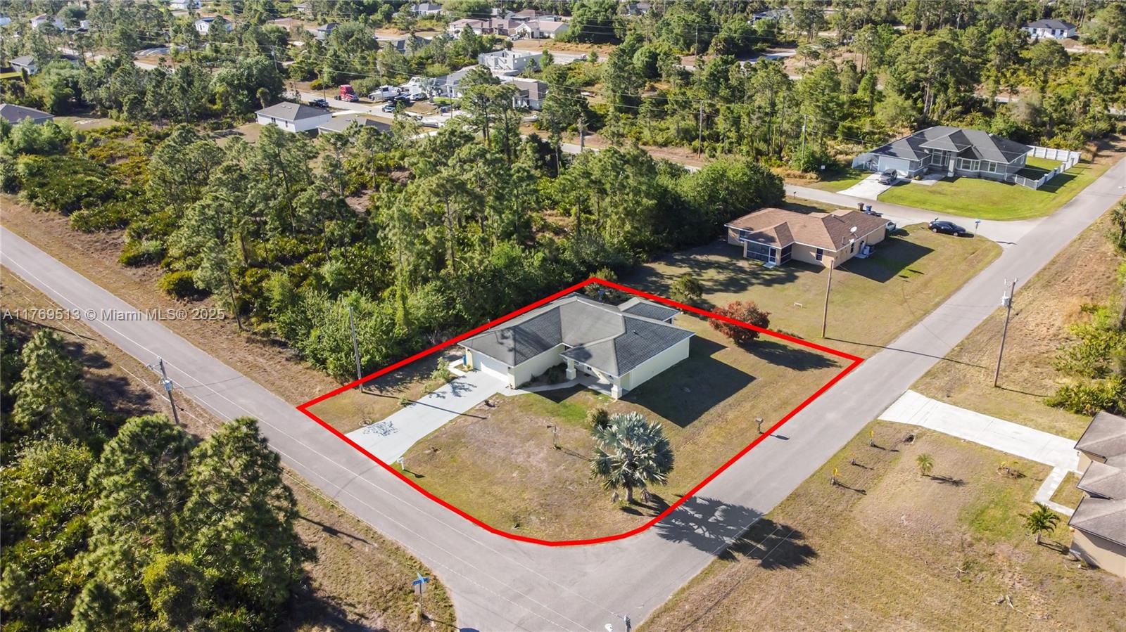 Well-maintained 3BR/2BA single-family home on an oversized corner lot in Lehigh Acres with NO HOA. This property features a split-bedroom floor plan, high vaulted ceilings, open-concept kitchen with breakfast bar, and dedicated laundry room. The main living area offers great flow into the dining space and family room. Enjoy a screened-in covered lanai overlooking a spacious backyard with mature landscaping — ideal for outdoor living or a future pool. Lot provides excellent privacy with no rear neighbors. 2-car garage and extended driveway allow for extra parking. Information is believed to be accurate, but should be independently verified by the buyer's agent. Seller Motivated
