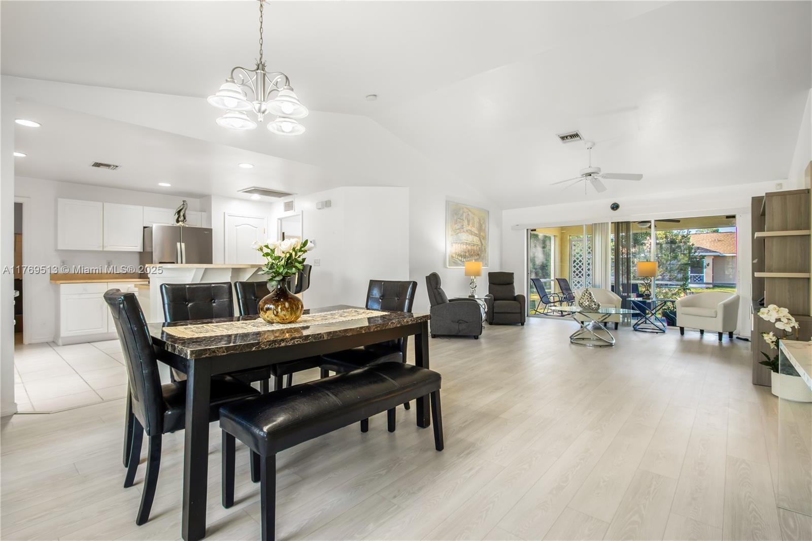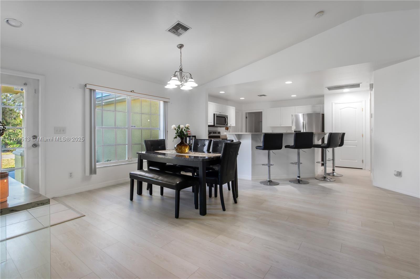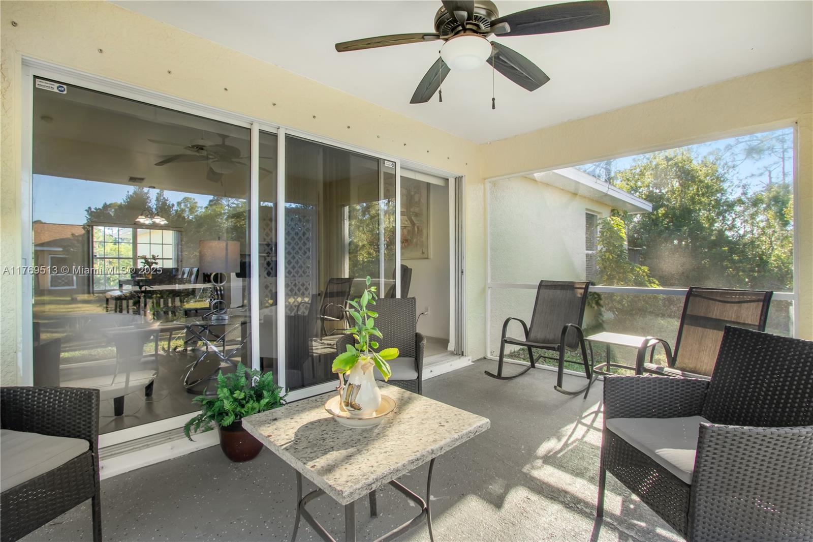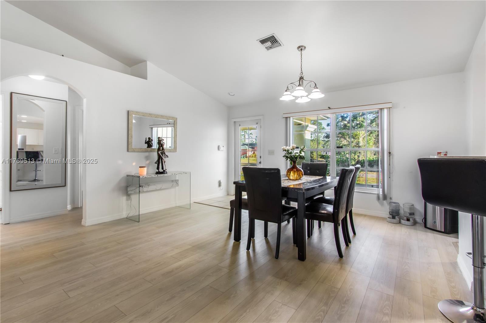 Well-maintained 3BR/2BA single-family home on an oversized corner lot in Lehigh Acres with NO HOA. This property features a split-bedroom floor plan, high vaulted ceilings, open-concept kitchen with breakfast bar, and dedicated laundry room. The main living area offers great flow into the dining space and family room. Enjoy a screened-in covered lanai overlooking a spacious backyard with mature landscaping — ideal for outdoor living or a future pool. Lot provides excellent privacy with no rear neighbors. 2-car garage and extended driveway allow for extra parking. Information is believed to be accurate, but should be independently verified by the buyer's agent. Seller Motivated