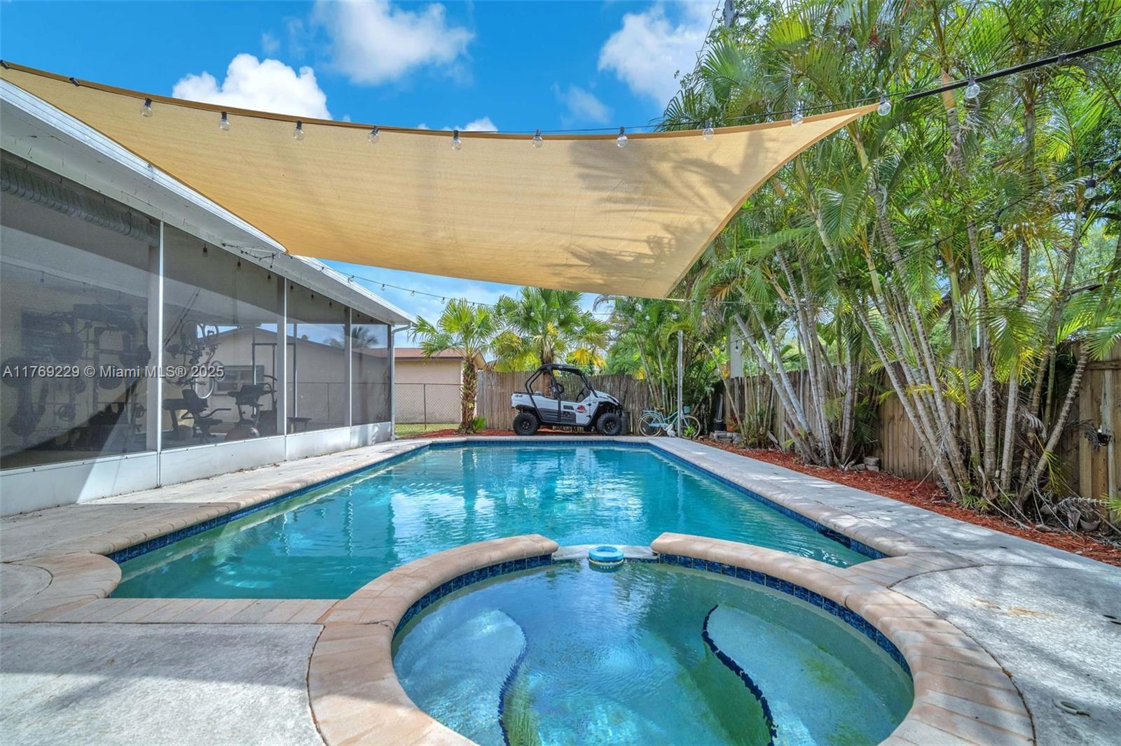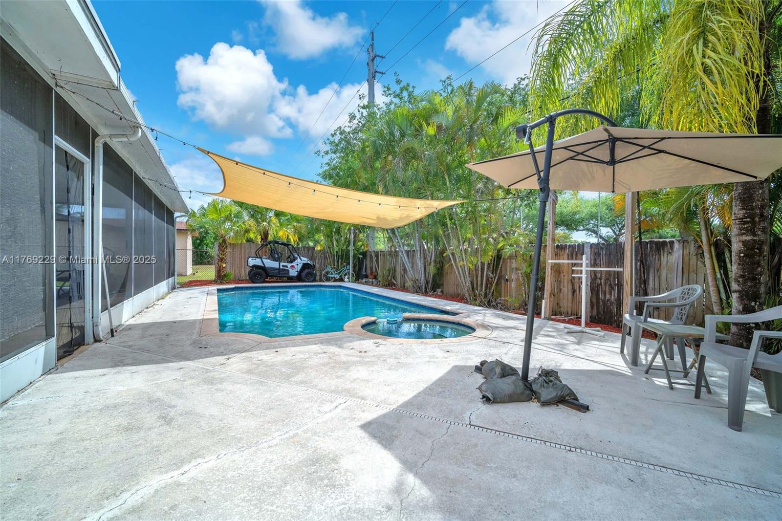 Charming 3-Bedroom Home with Pool & Jacuzzi This property features a spacious family room & a one-car garage. Enjoy Florida living from your large screened-in enclosure, perfect for outdoor relaxation, complete with a pool & jacuzzi. The fenced yard ensures privacy & includes a storage shed. There’s ample space on the side yard to park a boat or RV. There is no association. Great pool views from dining, kitchen & family. Some windows are impact-rated, others have hurricane shutters. The garage door & front door are impact for added protection. Conveniently located within walking distance to schools, & just minutes from Publix, restaurants, Broward College and the new City Center. Situated in a great family-friendly neighborhood, this home offers both comfort and convenience.