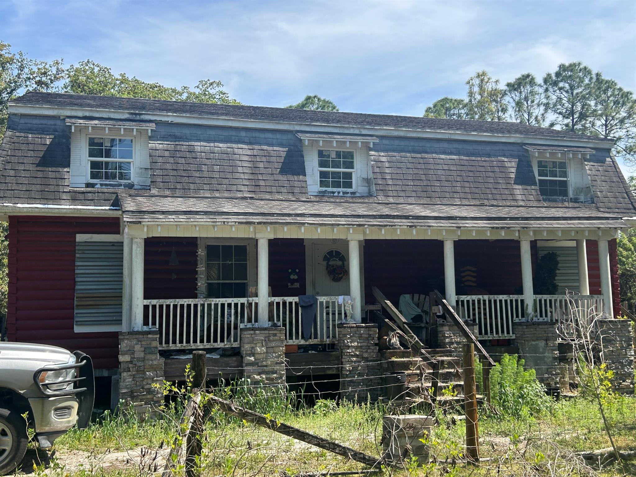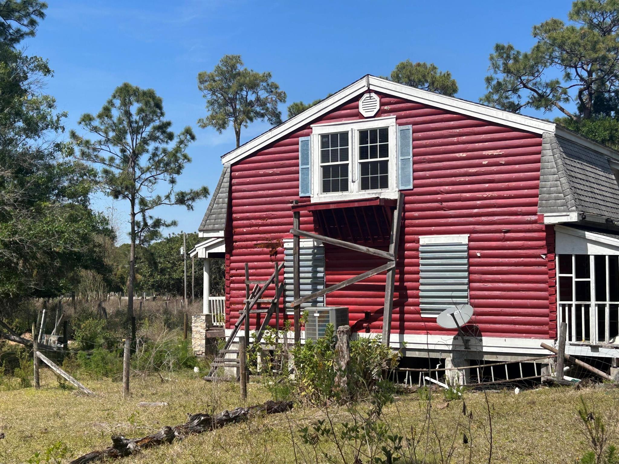 INVESTOR ALERT!!! Enjoy rustic charm with this fenced in 6.1 acre parcel in beautiful Loxahatchee. 2 story, 2,144 square foot log cabin home has great potential, but needs renovation. Property is being sold AS IS. 2nd story master suite includes a large walk-in closet. Master bathroom features dual vanities and separate tub and walk-in shower. 2 main level rooms could easily be converted into secondary bedrooms, and additional main could be turned into 4th and 5th bedrooms. Parcel is fully fenced in and includes interior cattle gates and a large free standing storage unit.