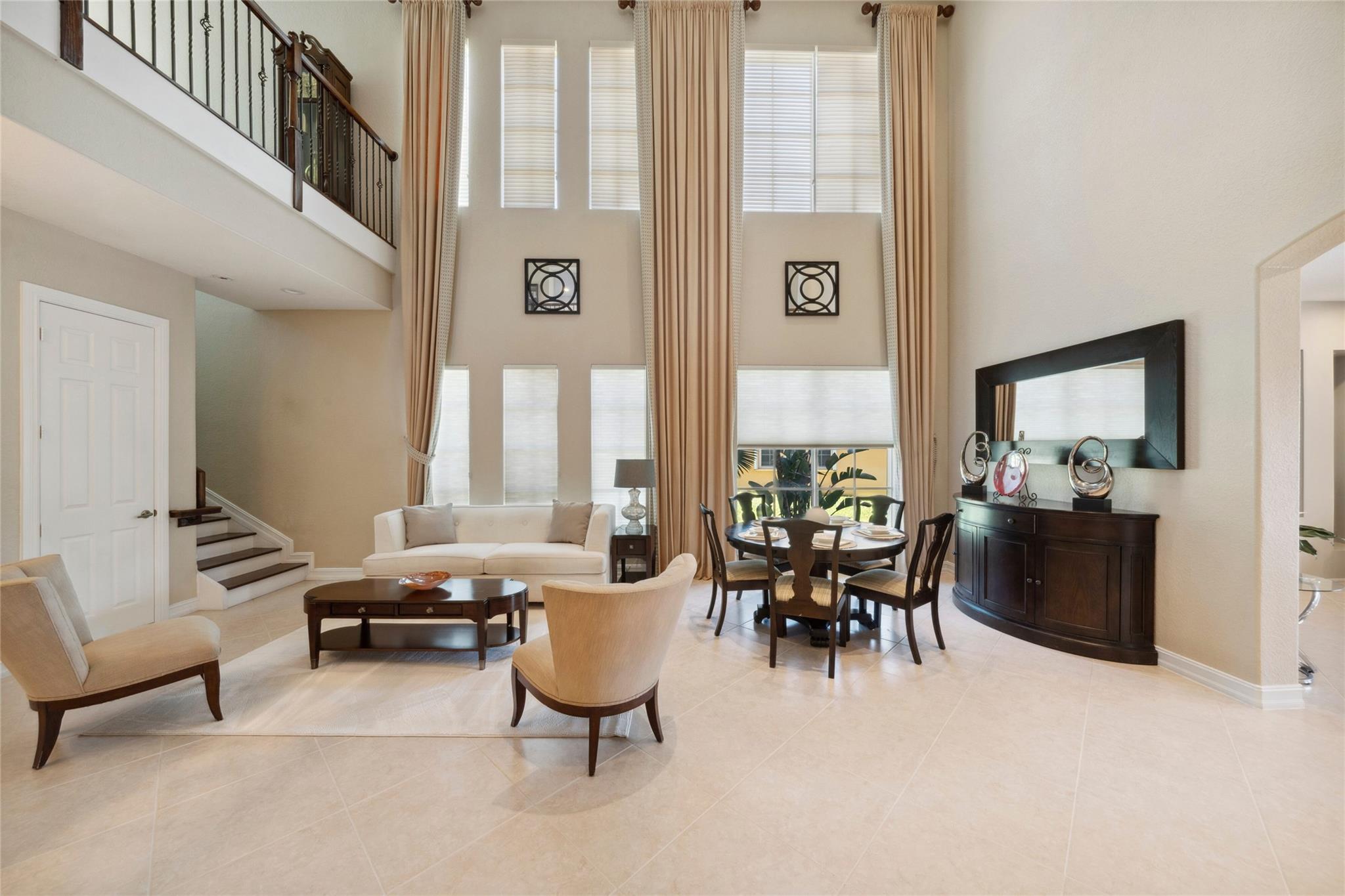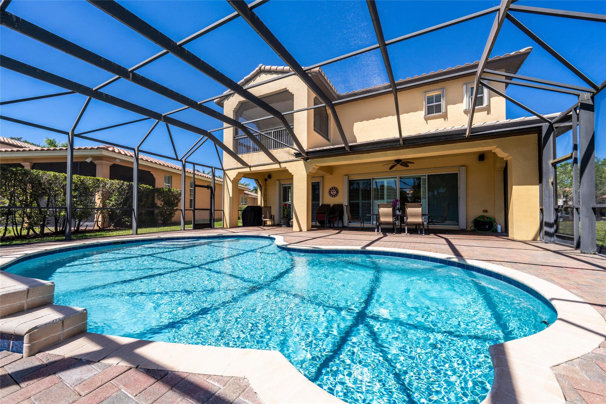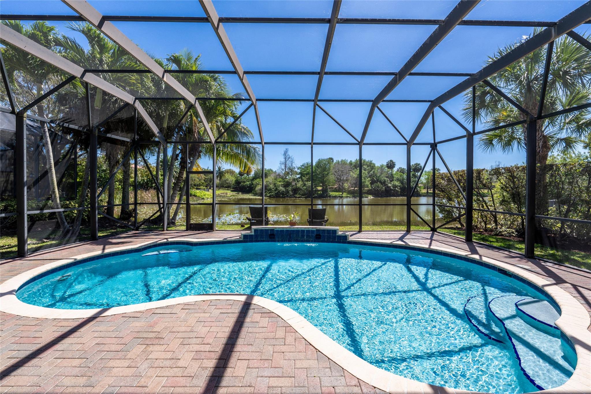 Meticulously maintained by the original owners, this stunning 4BR, 3BA lakefront home (1BR/1BA downstairs) features a screen-enclosed pool & an array of upgrades. Step inside to soaring 21-ft ceilings in the living & dining areas, an open kitchen w/wood cabinets, granite counters, stainless steel appliances. The main floor boasts neutral tile, while engineered wood flooring adds warmth upstairs. The primary suite offers tray ceilings, his-and-hers walk-in closets, a private screened balcony, and renovated ensuite. Additional highlights include newer a/c & hot water heater, plantation shutters, accordion hurricane shutters, and a spacious 32’ x 10’ covered lanai. Enjoy breathtaking lake views from your screened pool & patio—your own private oasis! Resort-style amenities & A-rated schools!
