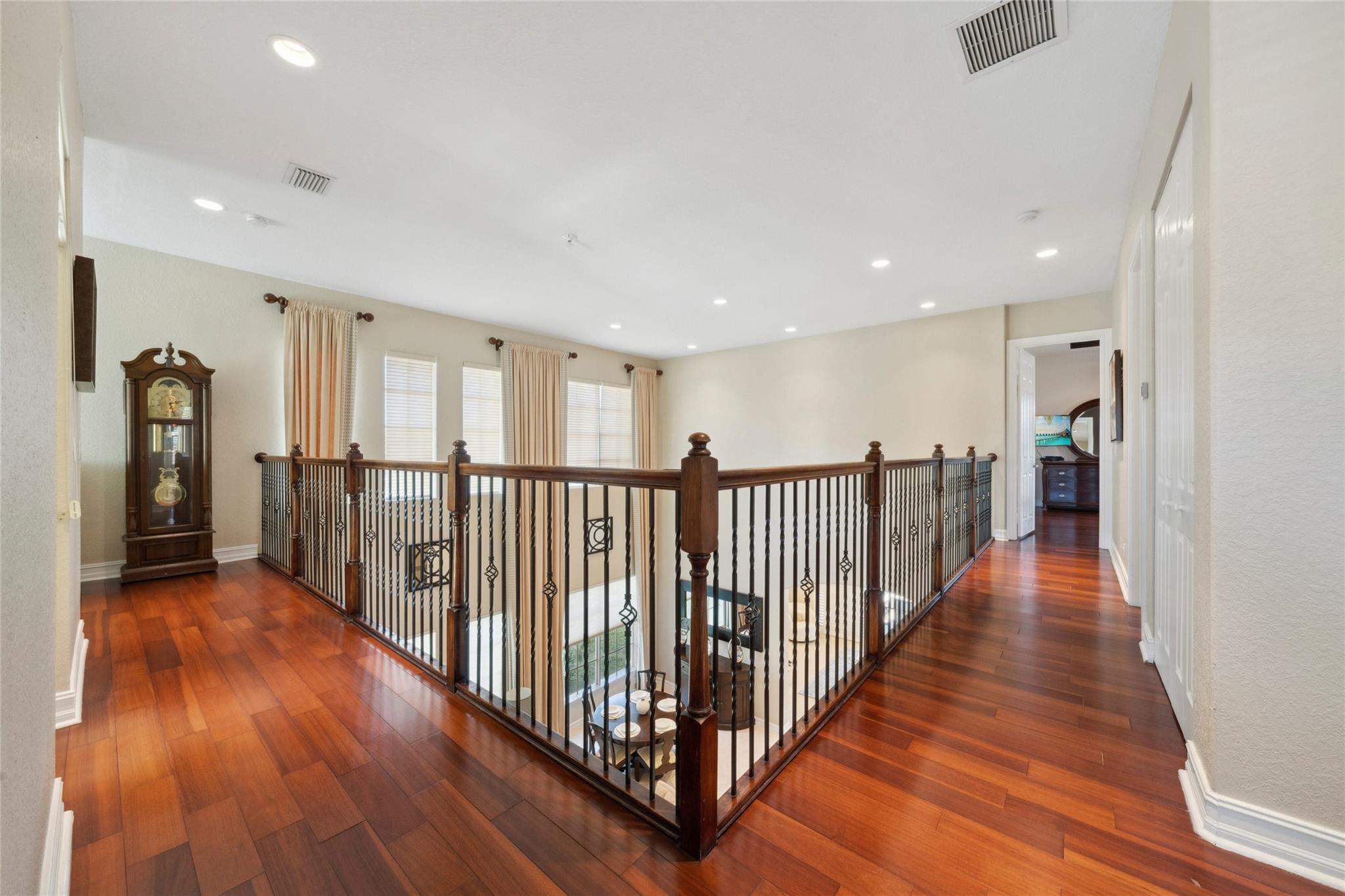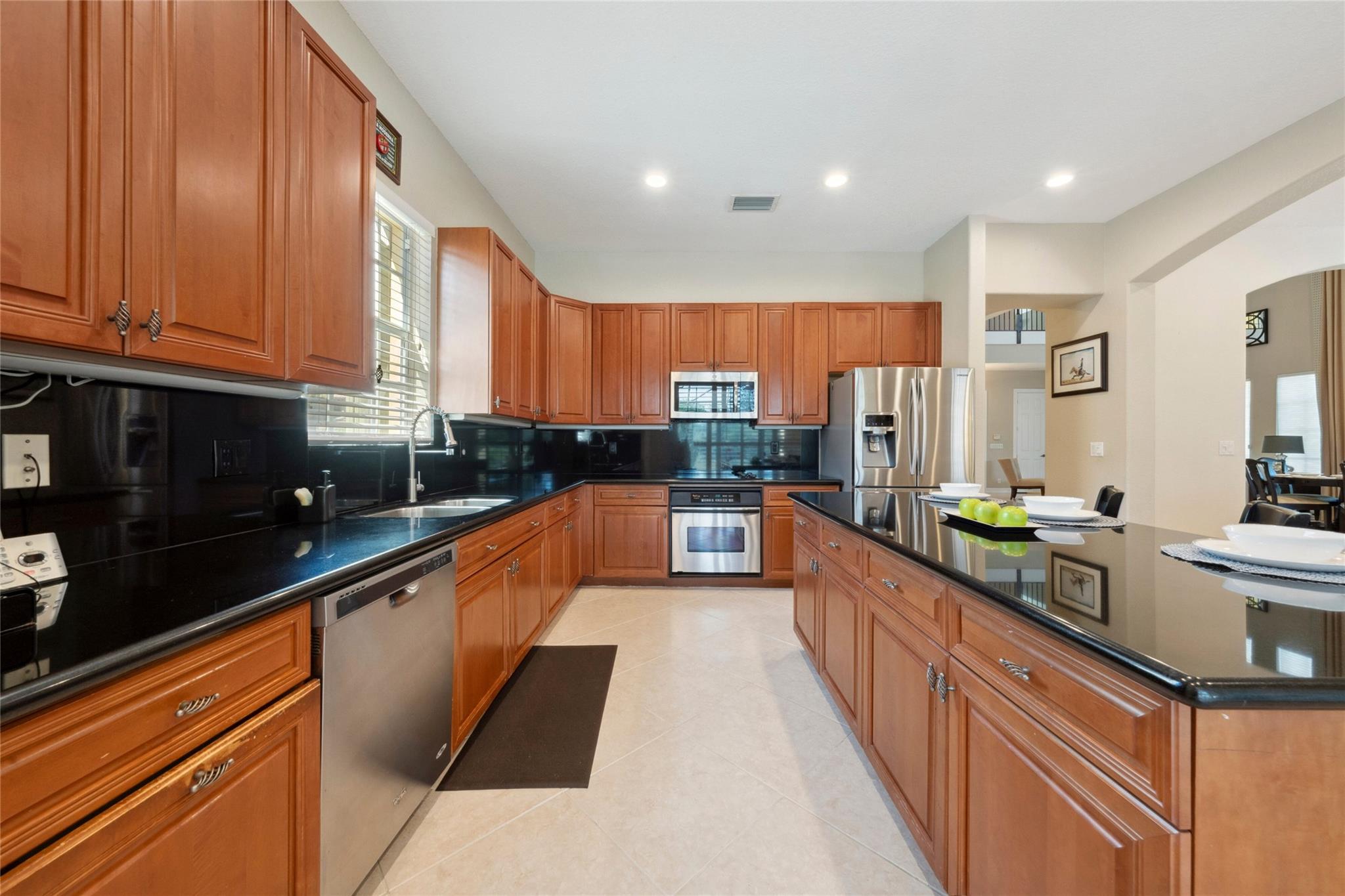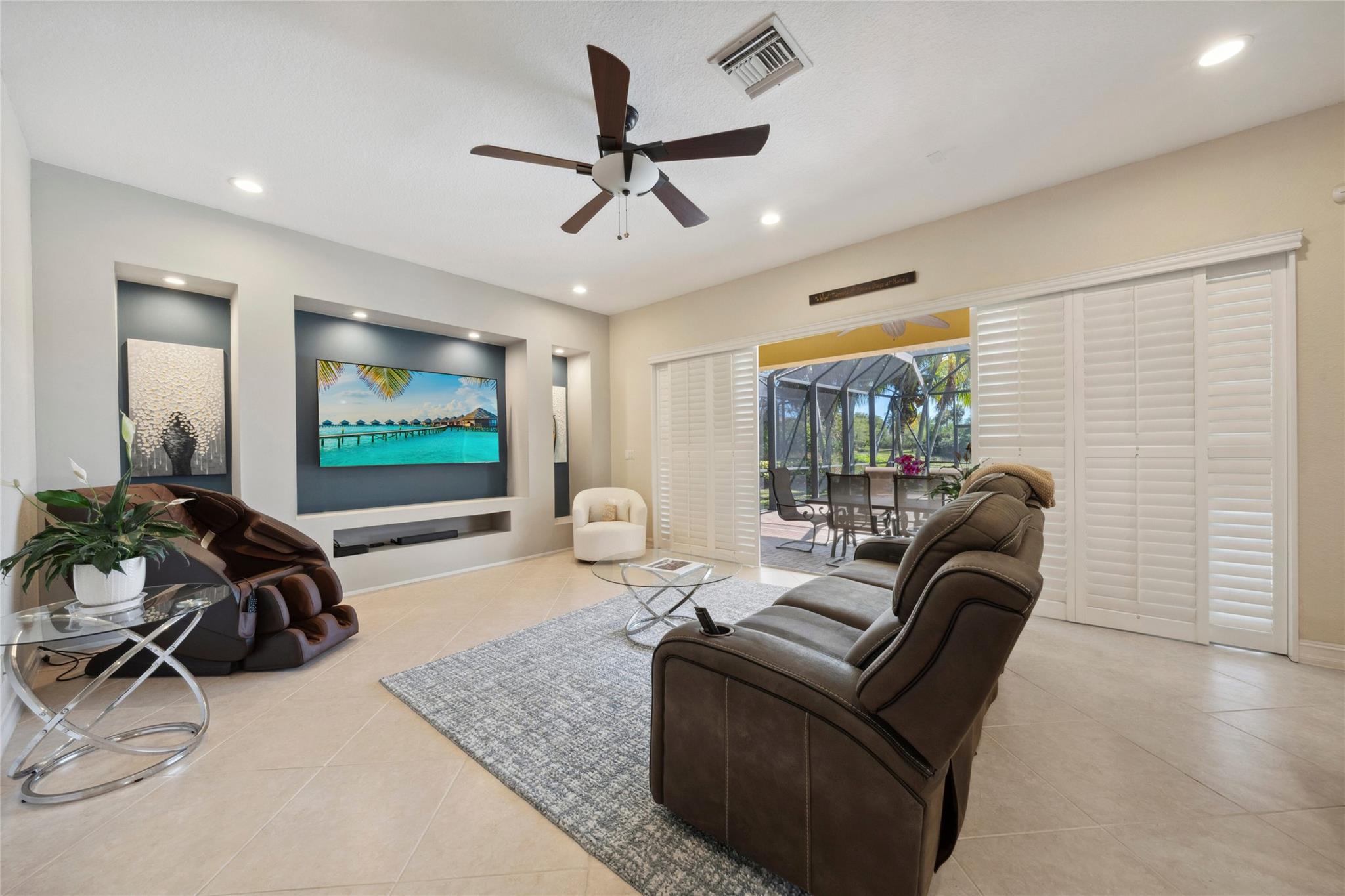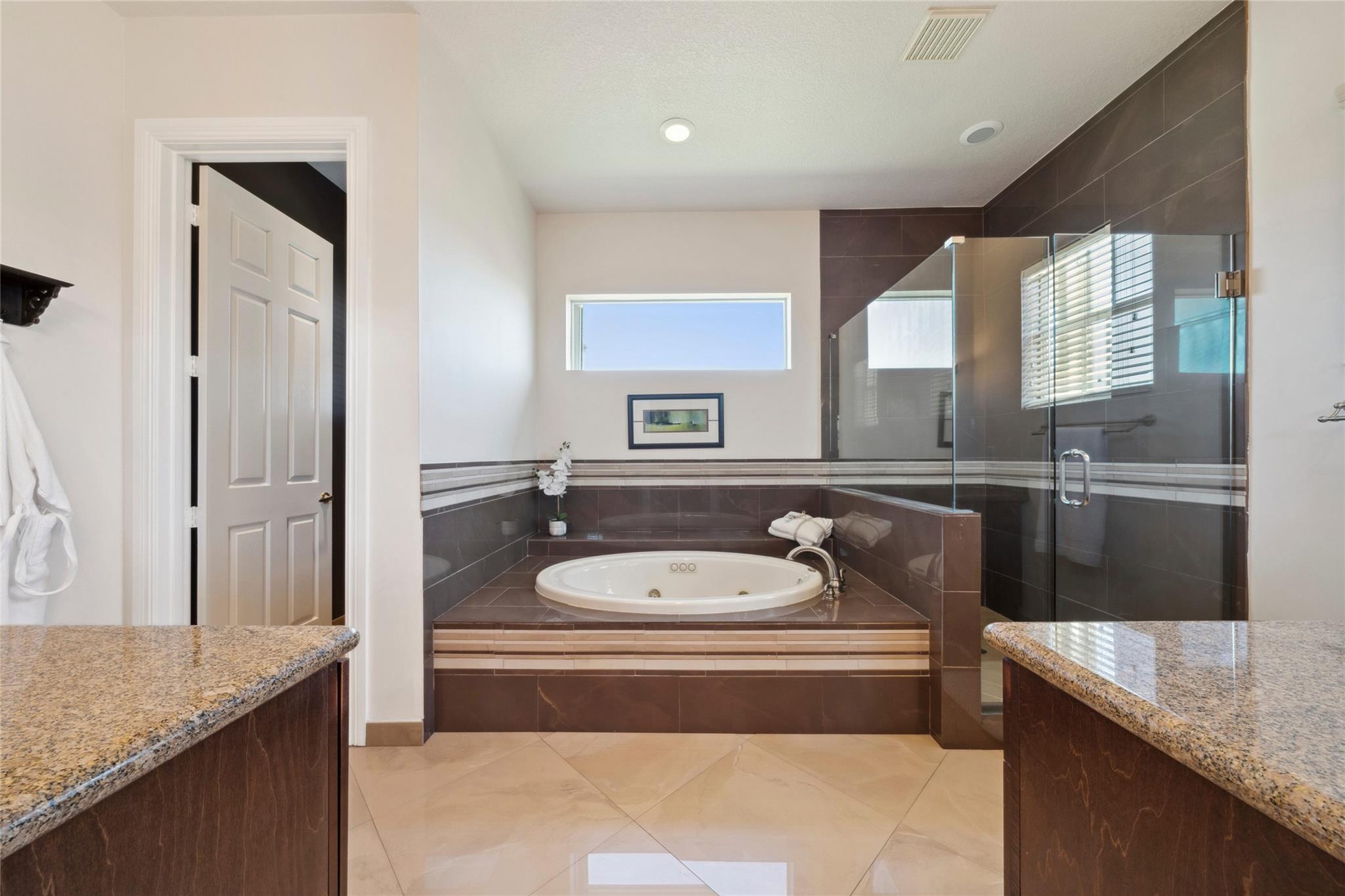Meticulously maintained by the original owners, this stunning 4BR, 3BA lakefront home (1BR/1BA downstairs) features a screen-enclosed pool & an array of upgrades. Step inside to soaring 21-ft ceilings in the living & dining areas, an open kitchen w/wood cabinets, granite counters, stainless steel appliances. The main floor boasts neutral tile, while engineered wood flooring adds warmth upstairs. The primary suite offers tray ceilings, his-and-hers walk-in closets, a private screened balcony, and renovated ensuite. Additional highlights include newer a/c & hot water heater, plantation shutters, accordion hurricane shutters, and a spacious 32’ x 10’ covered lanai. Enjoy breathtaking lake views from your screened pool & patio—your own private oasis! Resort-style amenities & A-rated schools!