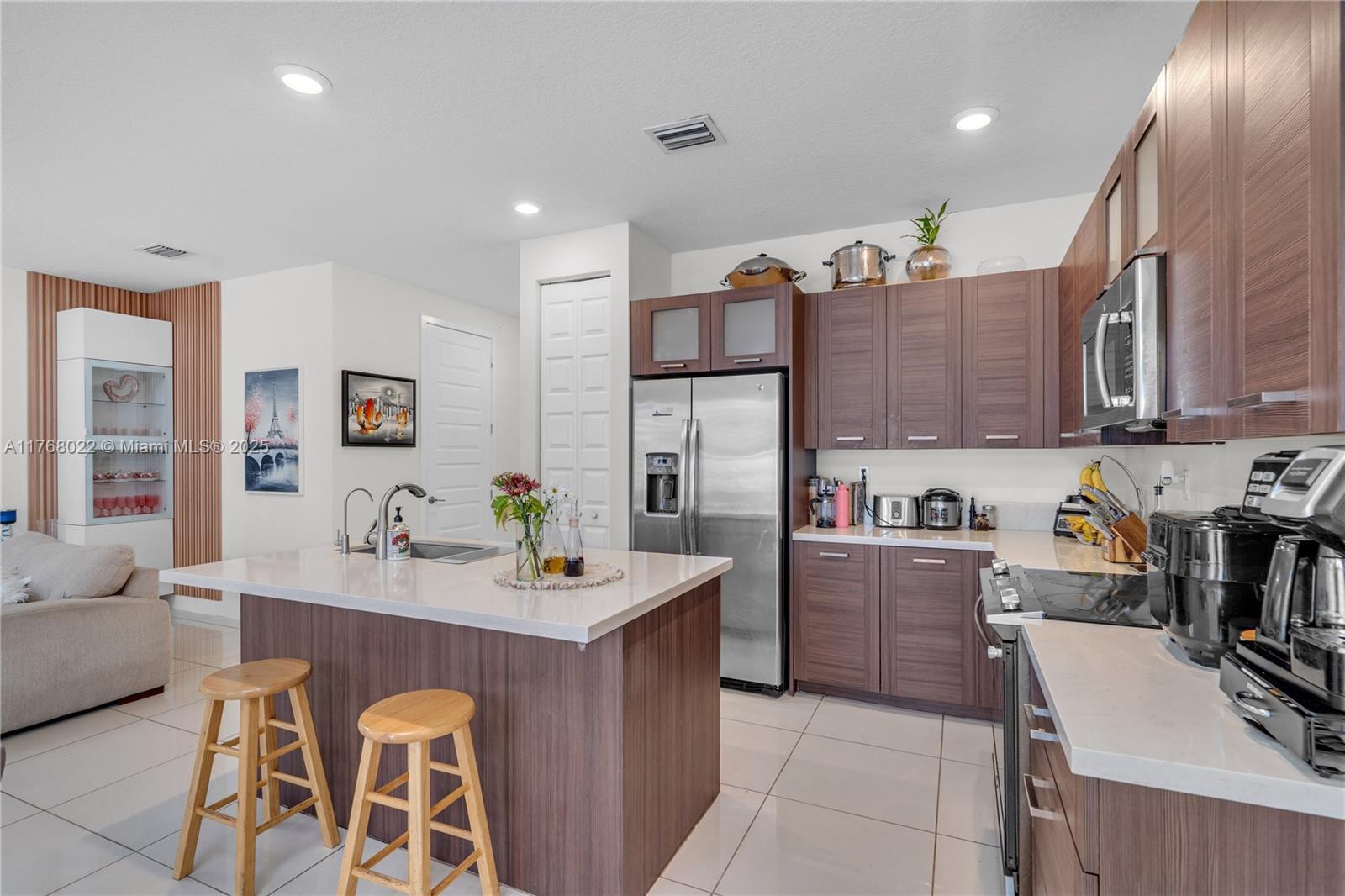 This beautiful townhouse is located in the prestigious Satori community in Miami Lakes. It features 4 spacious bedrooms and 3.5 bathrooms. Blinds on all windows. Smart system and programmable lock, wooden staircase and carpet free, patio with many improvements. The Community has Clubhouse 2 pool and a GYM for your enjoyment and convenience. Situated near top-rated schools, shopping centers, and a variety of restaurants, this home offers easy access to major expressways, making it a perfect location for families and professionals alike.