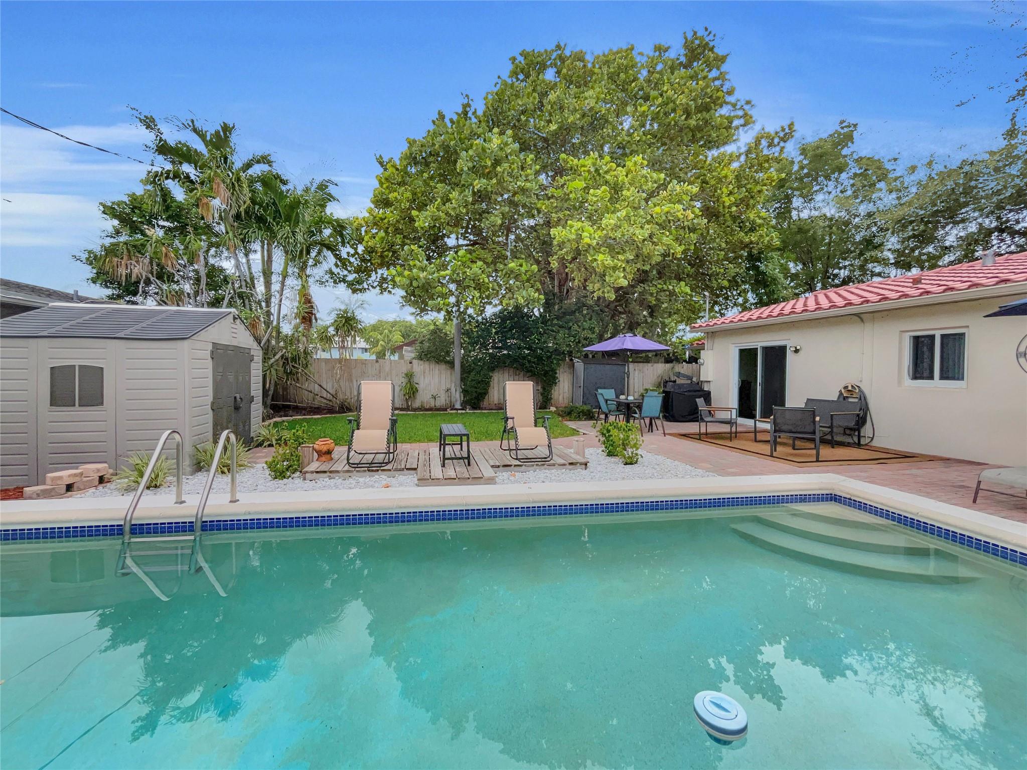 PRICED TO SELL! Move-in ready pool home in Poinsettia Heights! Minutes from the beach, Wilton Dr, Las Olas & more. NO HOA. Bonus room overlooks the PRIVATE POOL, perfect as an office/den or THIRD BEDROOM. Split-floor plan with IMPACT WINDOWS/DOORS, new tankless water heater, newer AC & appliances, updated landscaping, two sheds, tile roof, wood deck & fenced yard with extended paver driveway. Inside: porcelain tile over terrazzo, cedar closets, PLANTATION SHUTTERS/SLIDERS, vaulted ceiling in bedroom, remote fans, crown molding, wood-beam accent, and so much more. Crafted for modern living, merging refined aesthetics with inviting, well-rounded comfort. FURNITURE NEGOTIABLE. Sold as-is. Perfect for homeowners or investors. Amazing value in a prime location!