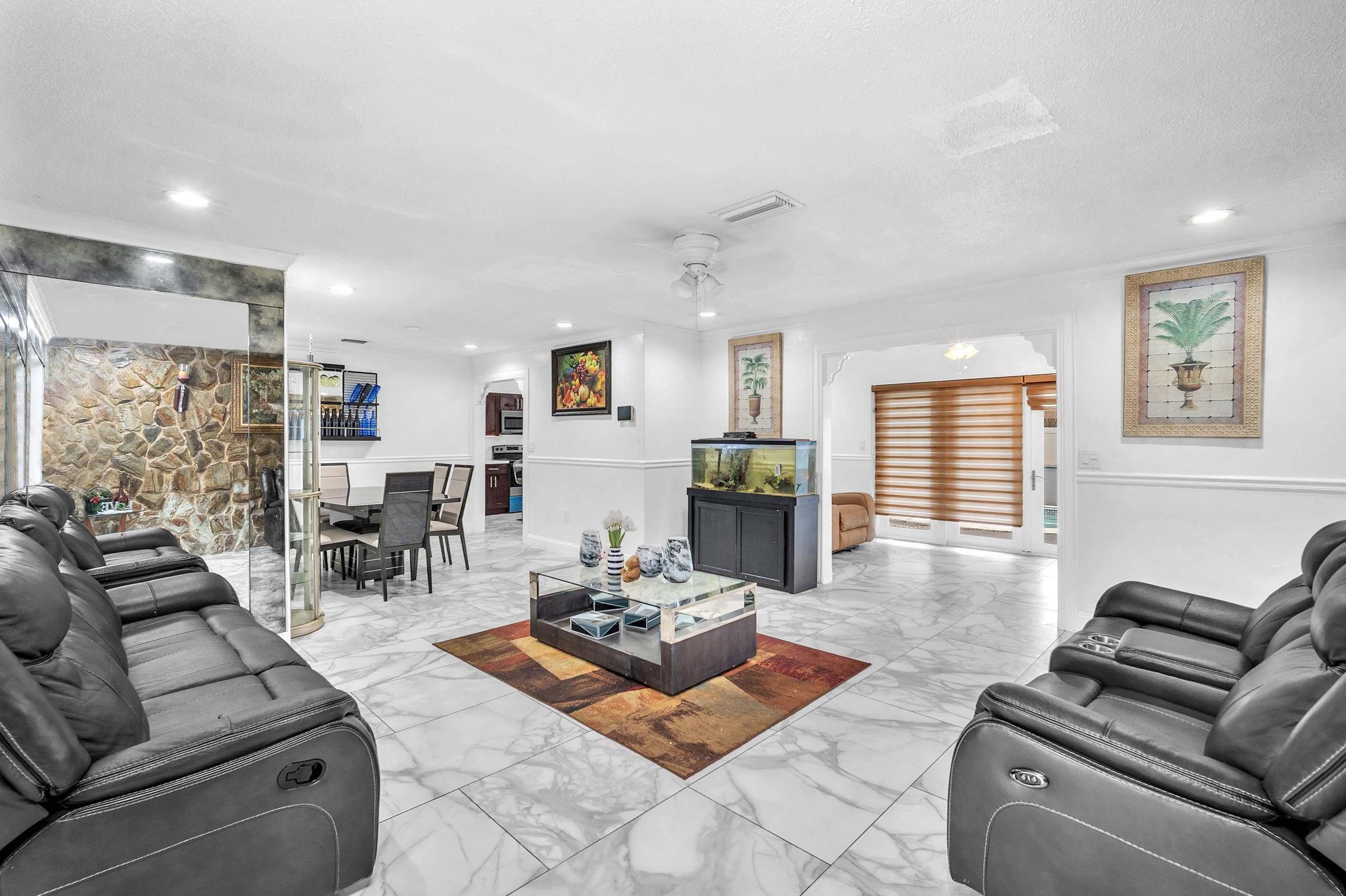 Spacious 4-bedroom, 2-bath home in Miramar Isles, offering 2,023 sq. ft. of comfortable living. Enjoy a private backyard with a pool and screened-in porch, perfect for relaxing or entertaining. The home is recently remodeled with a beautiful kitchen, New bathrooms, and oversized modern tiles throughout, Additional features include a huge circular driveway and 2017 AC. Roof 10 years old, Complete Impact protection. Ready for a new owner!
